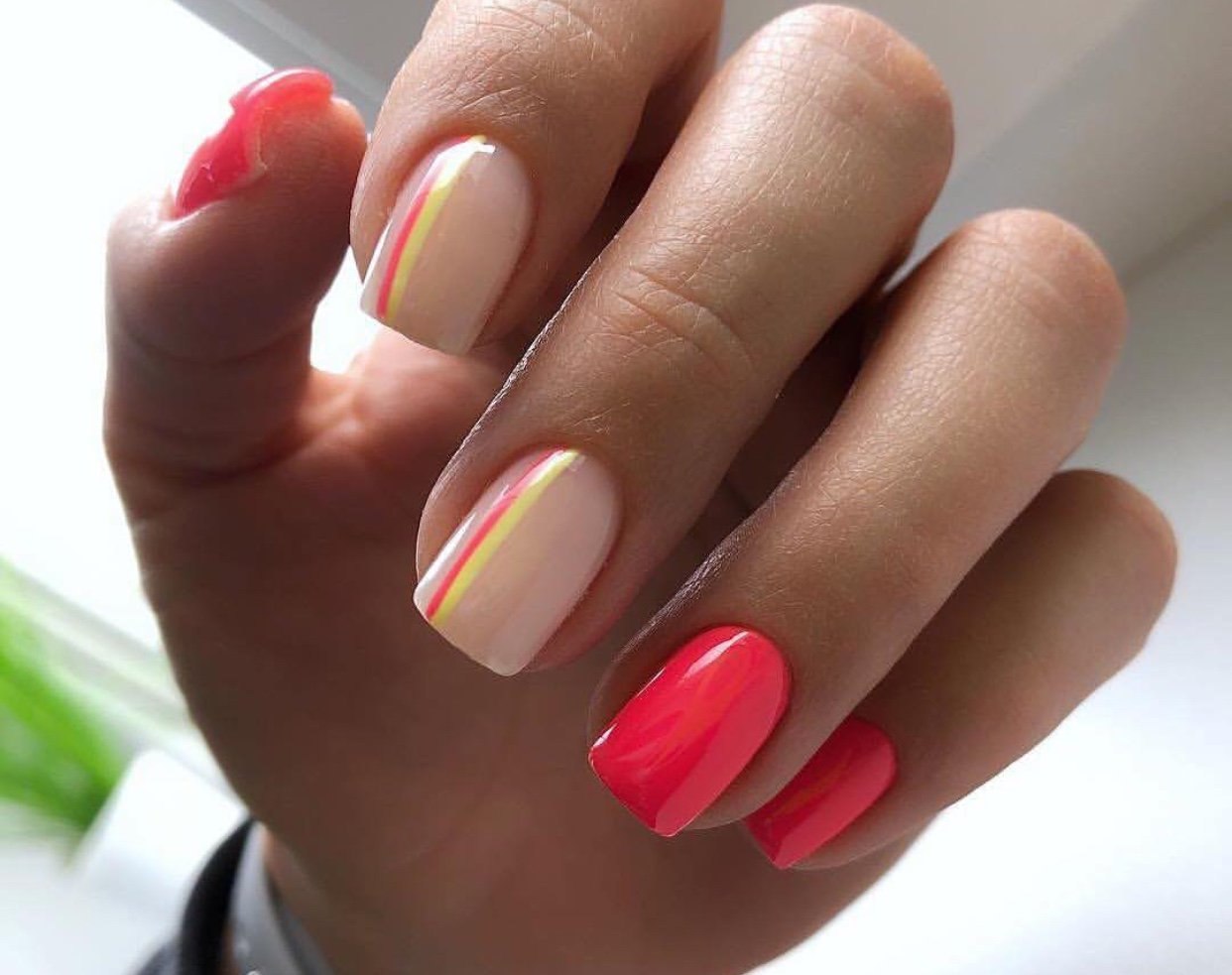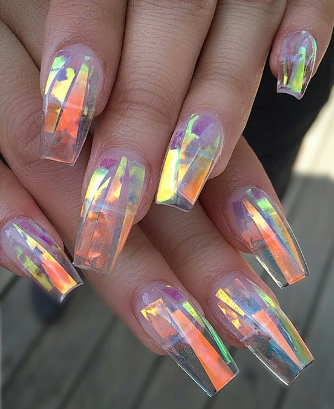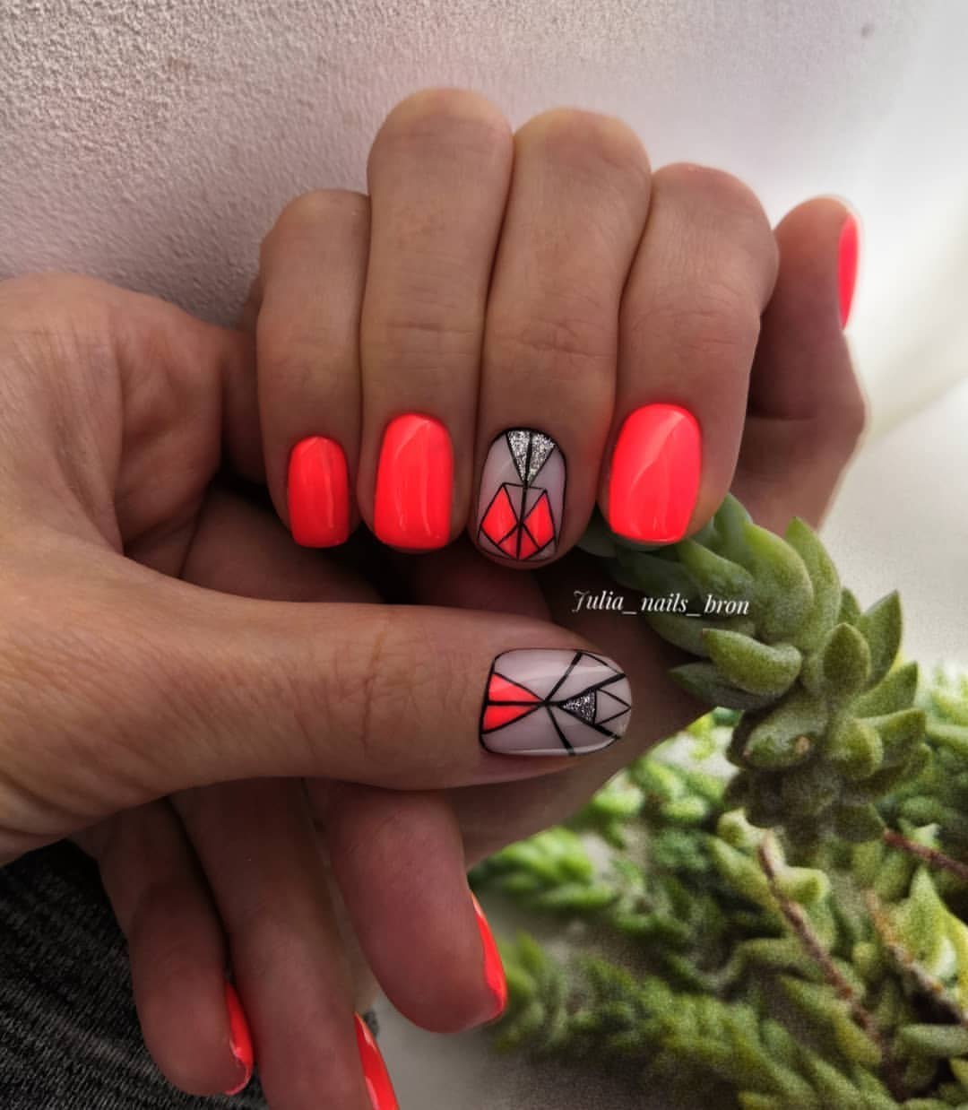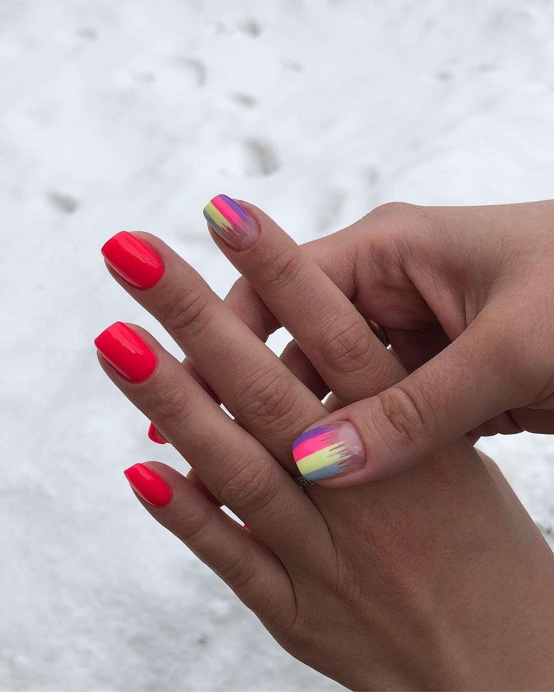 Прозрачный маникюр с ярким акцентом (41 фото)