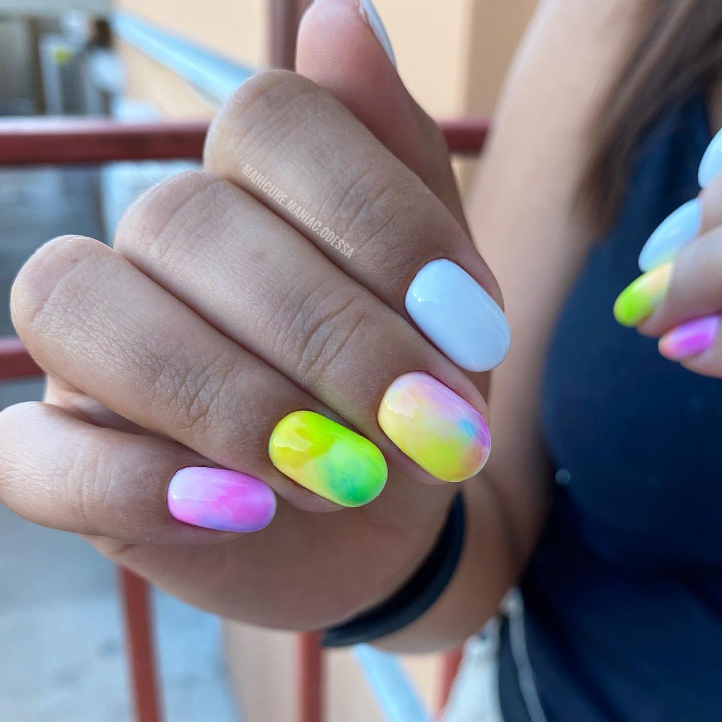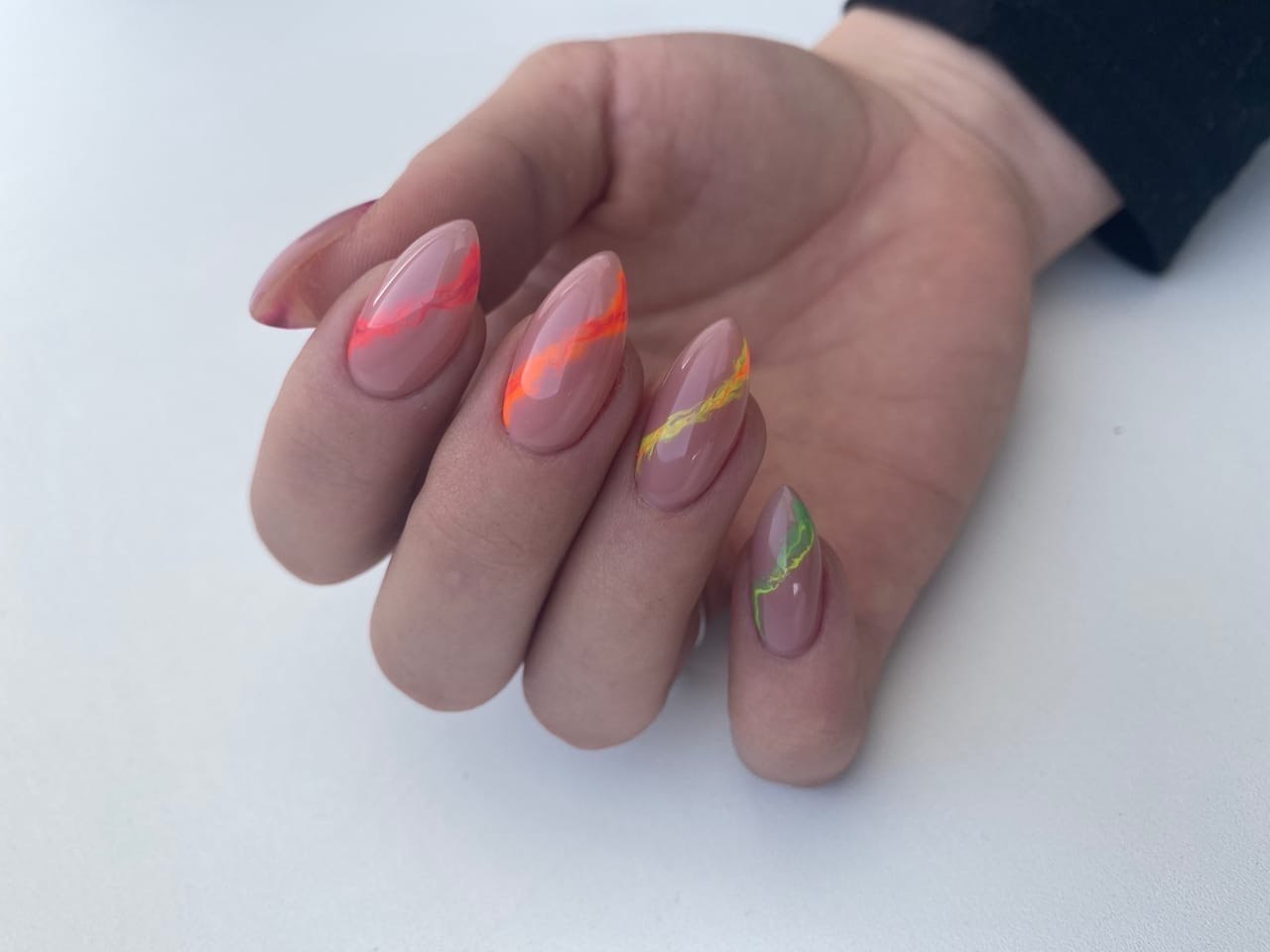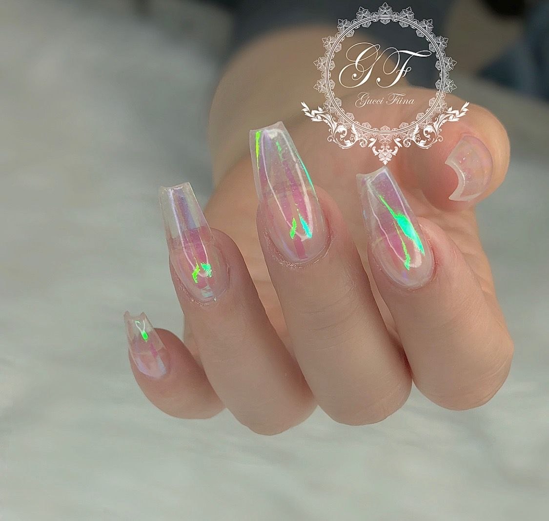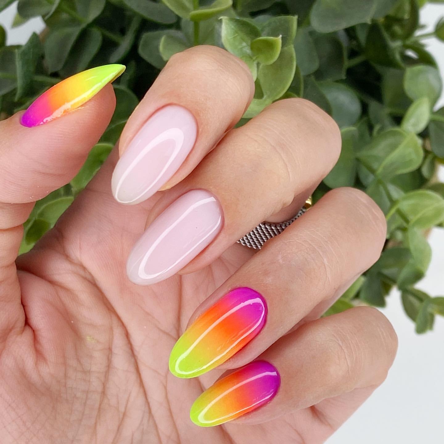 Прозрачный маникюр с ярким акцентом (41 фото)