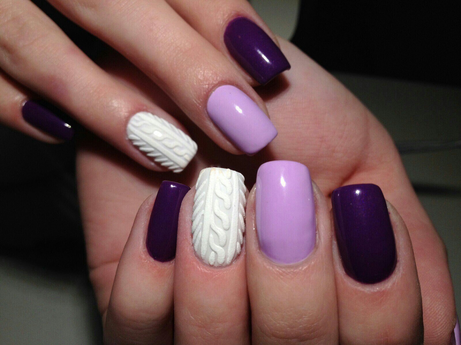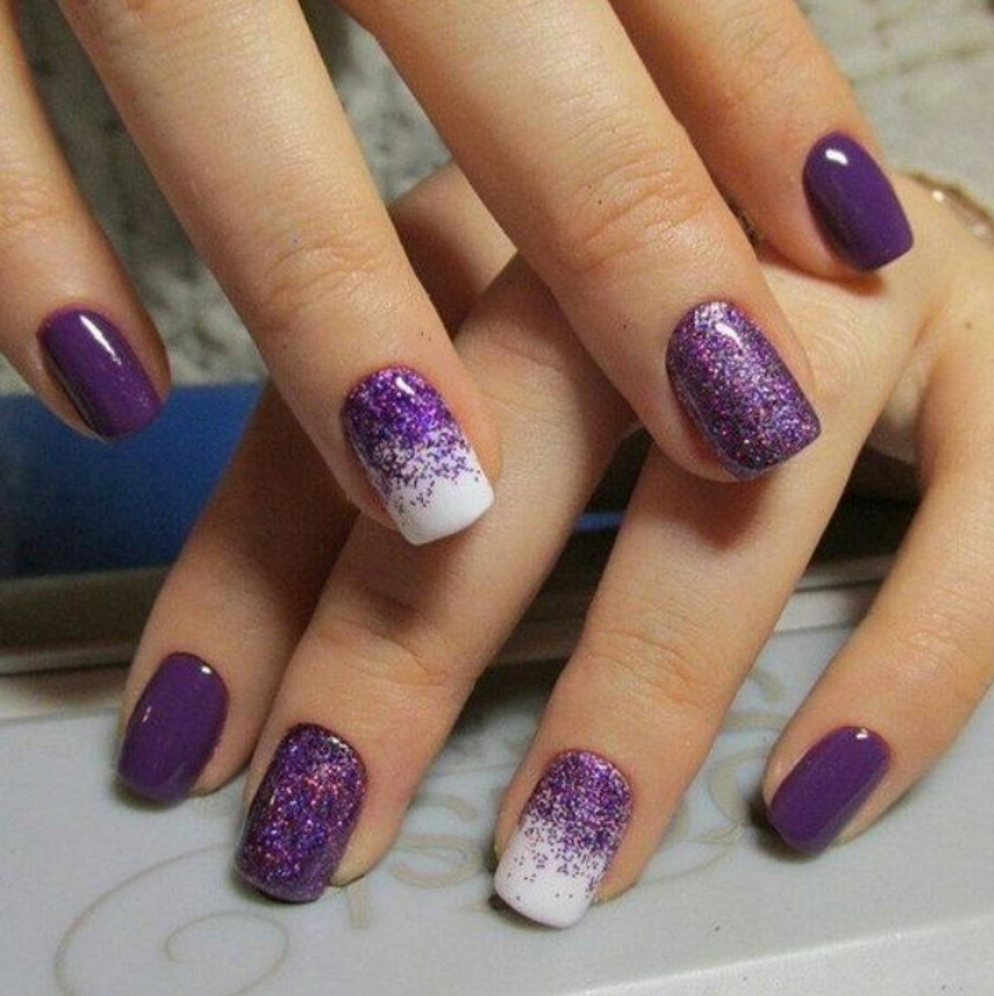 Ногти фиолетовые с белым