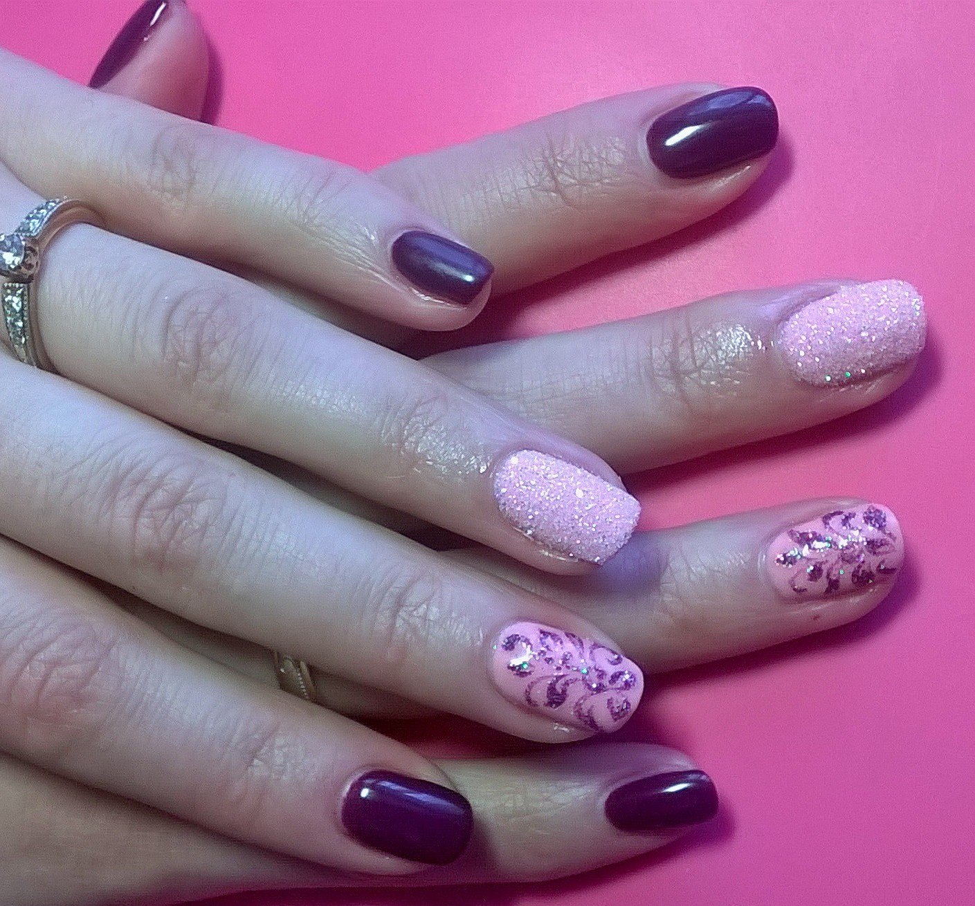Маникюр сиреневый с розовым