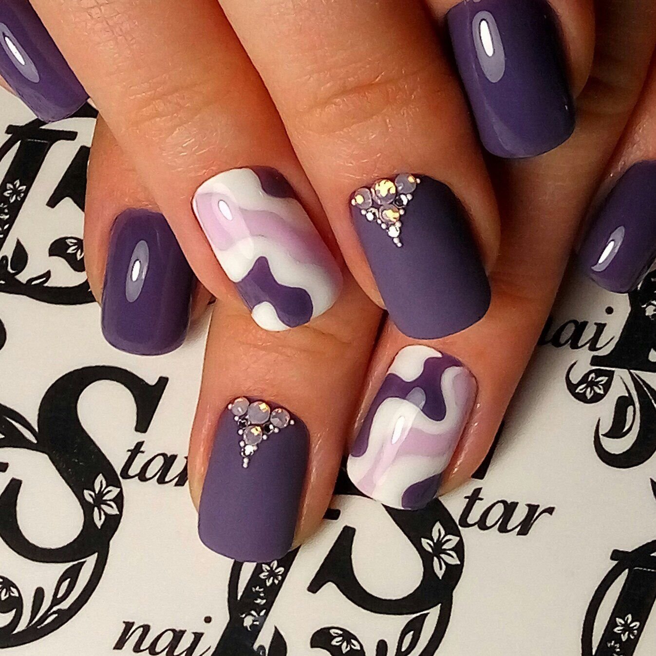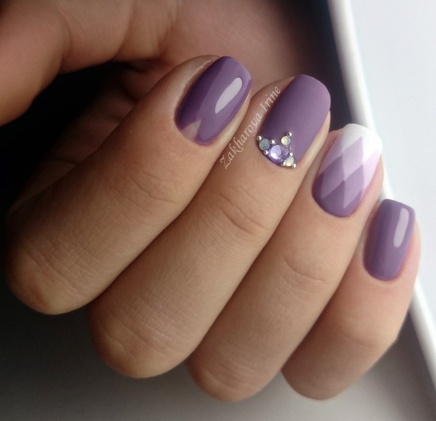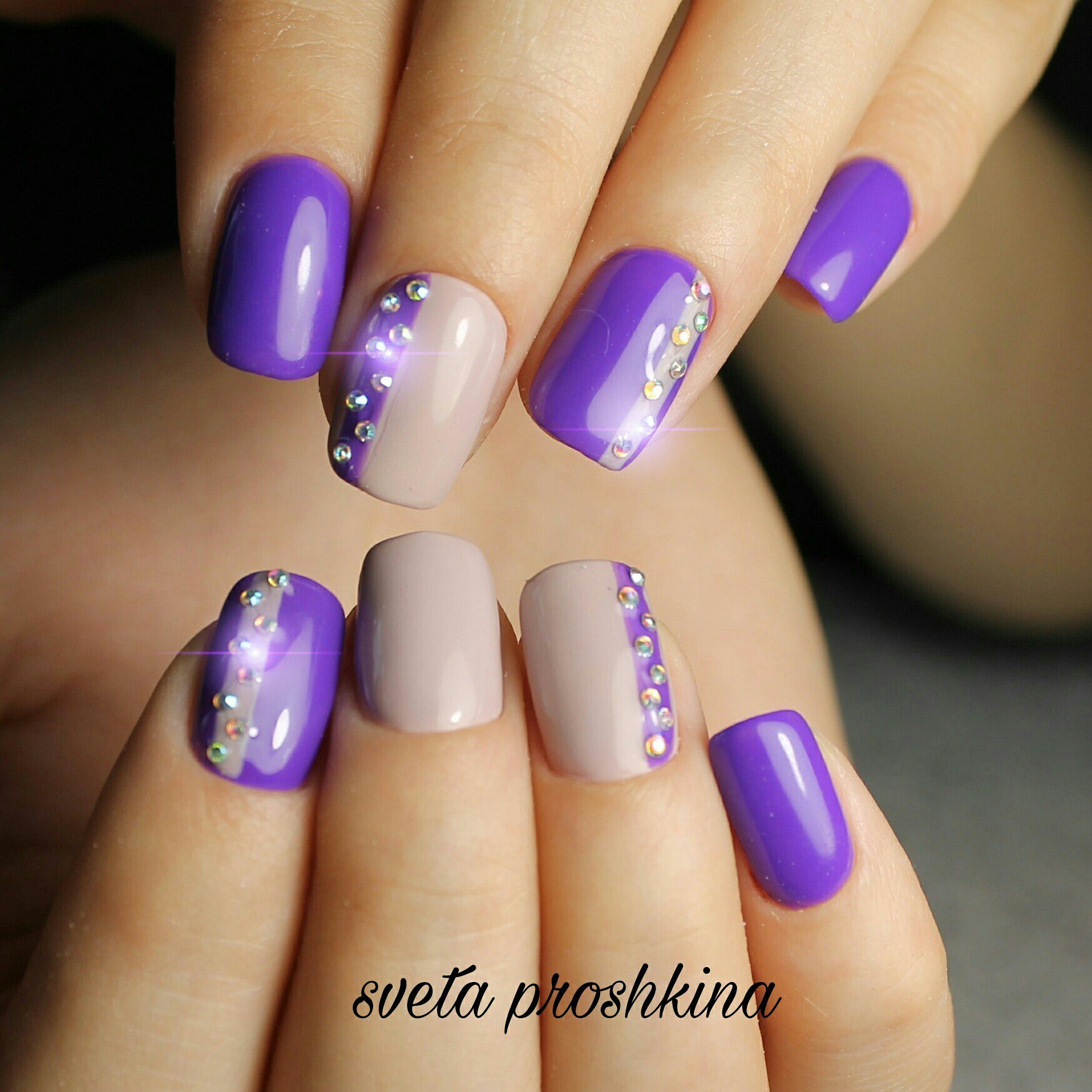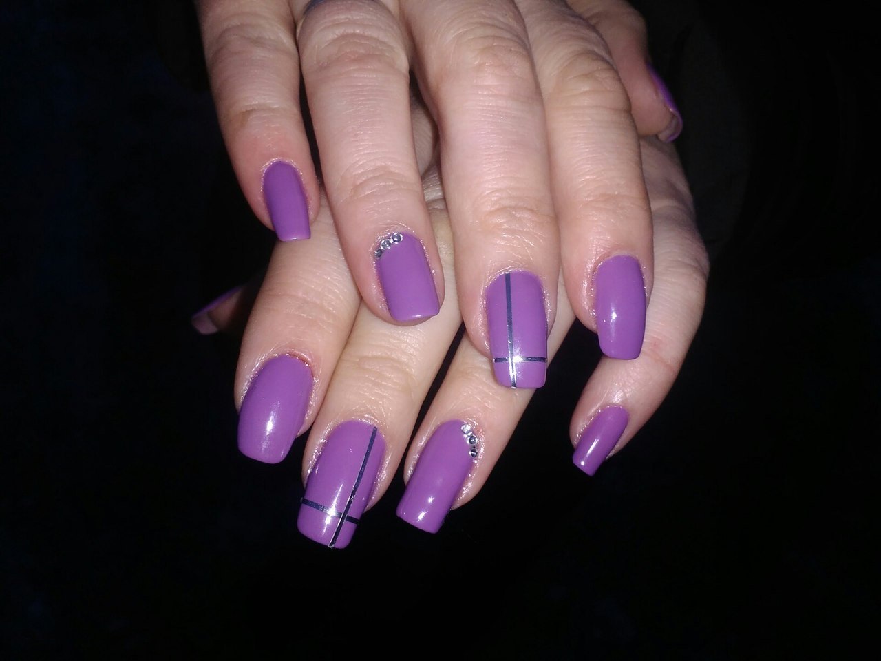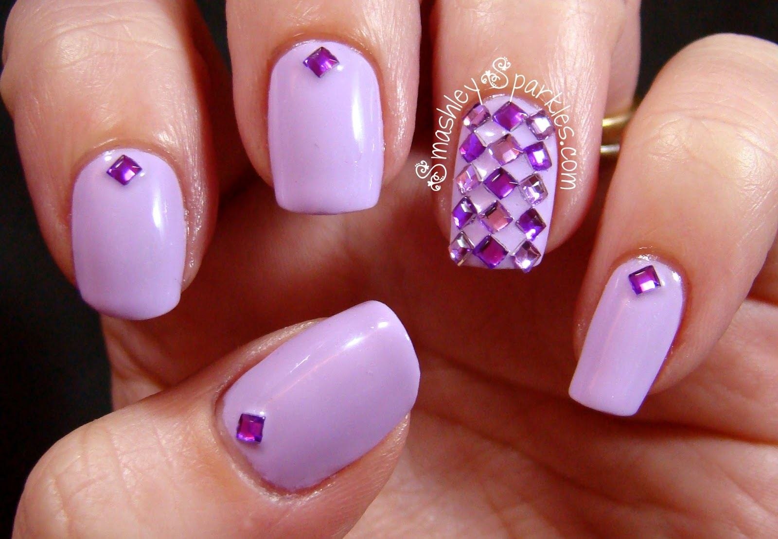 Лиловый маникюр со стразами