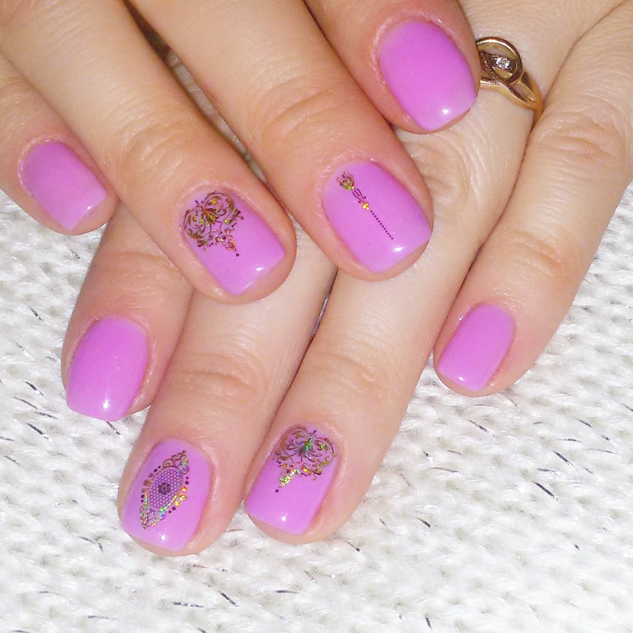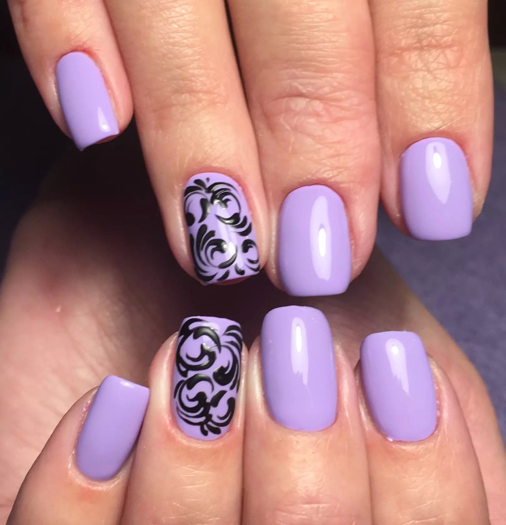 Маникюр в сиреневых тонах со стемпингом