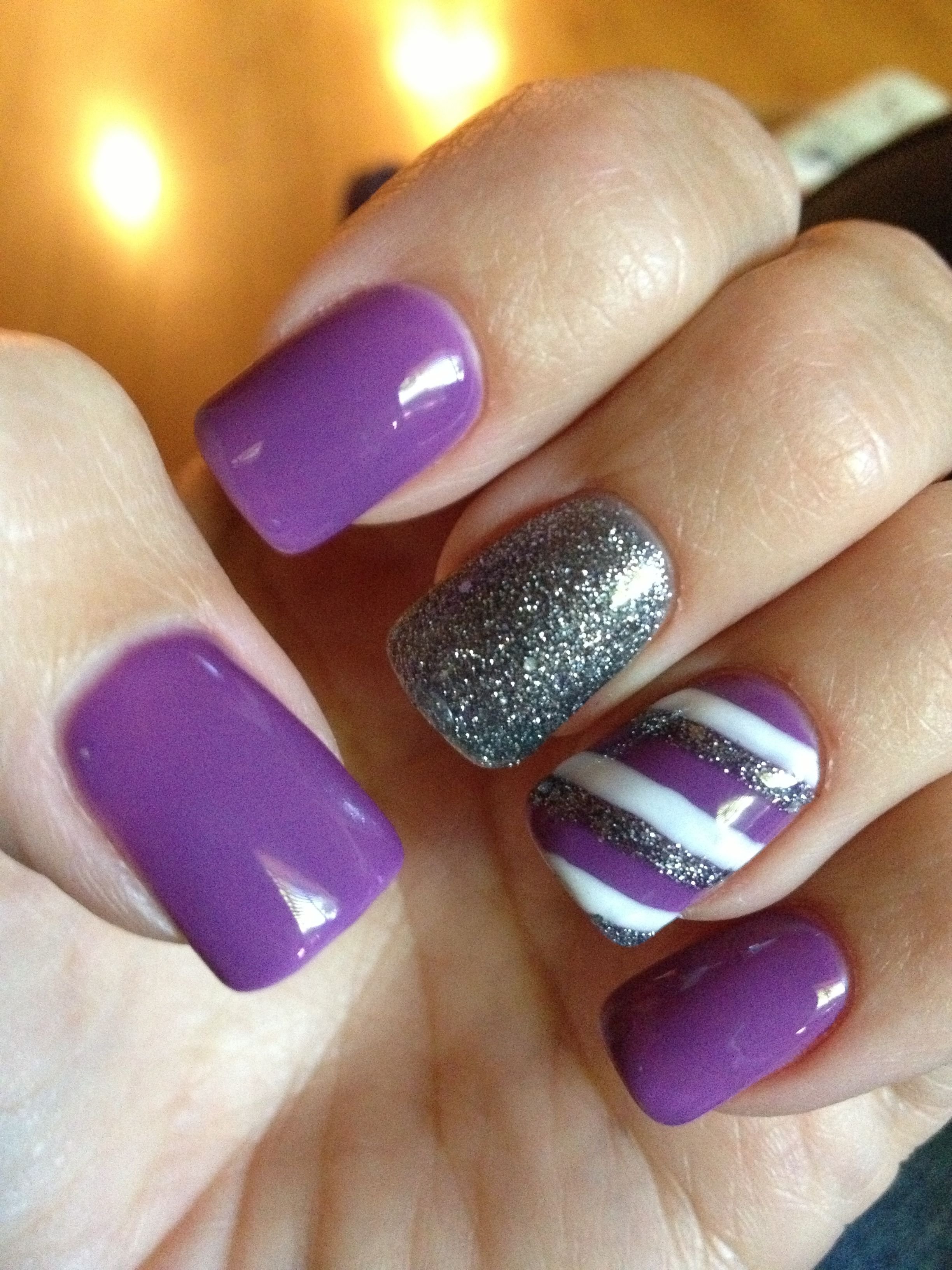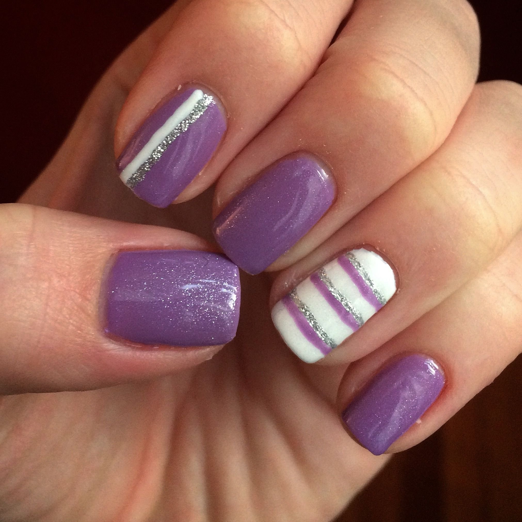 Сиреневые ногти с полосками