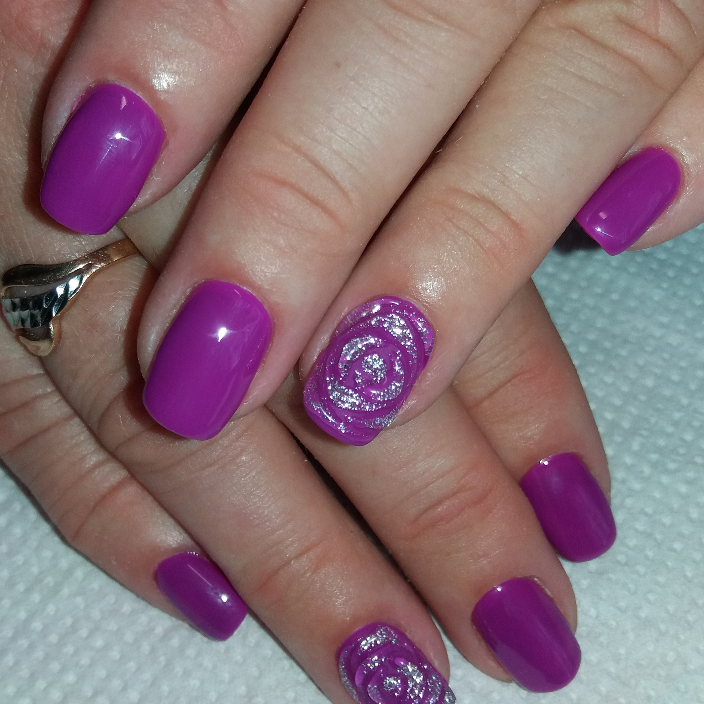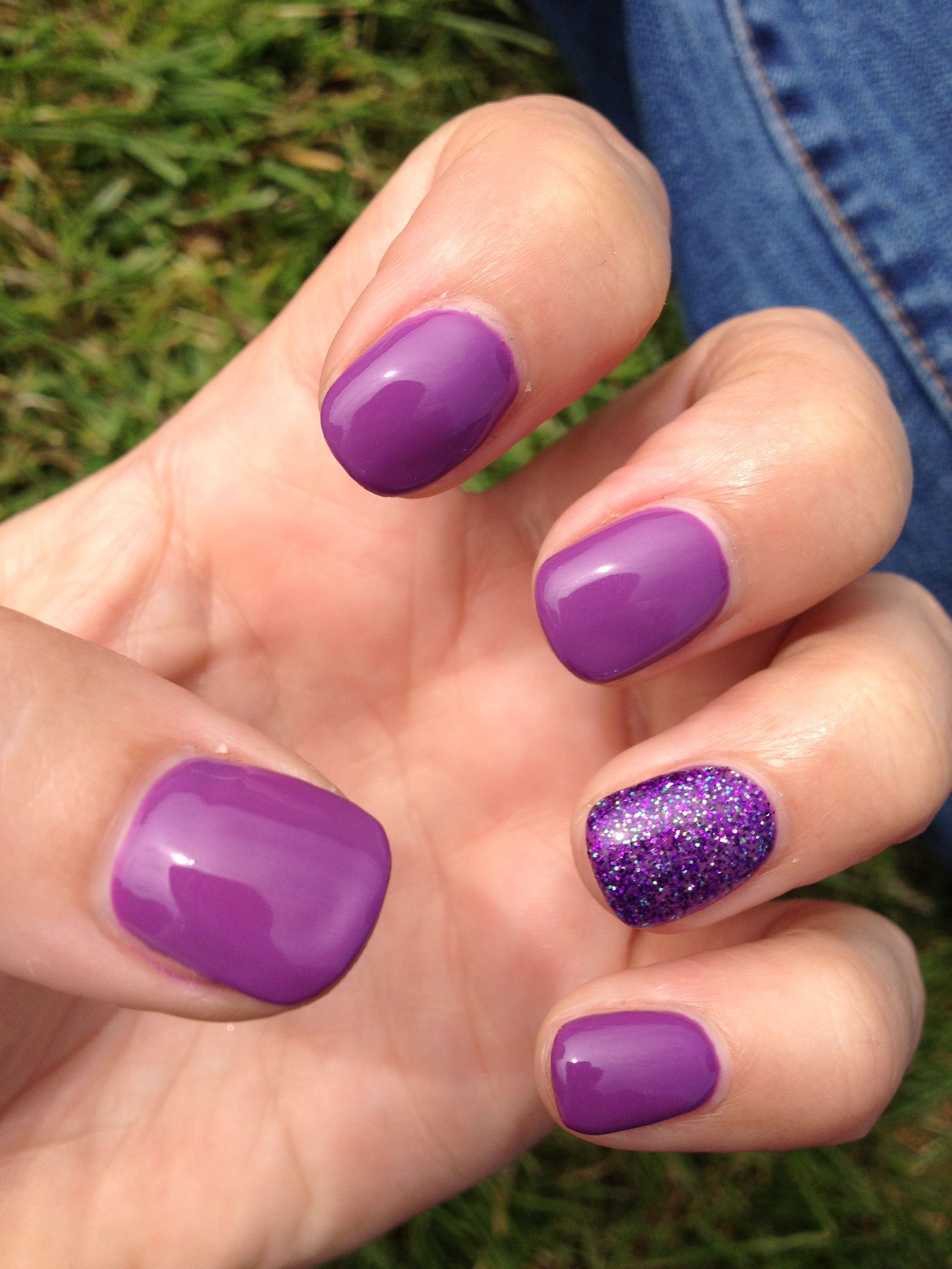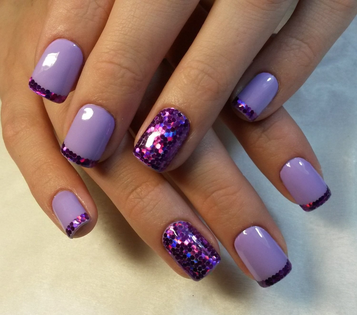 Фиолетовый маникюр с блестками на короткие ногти