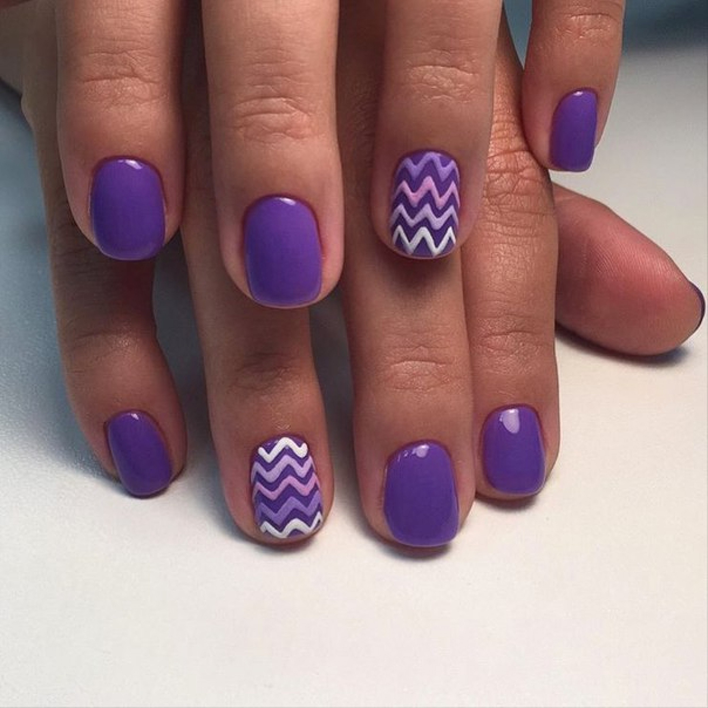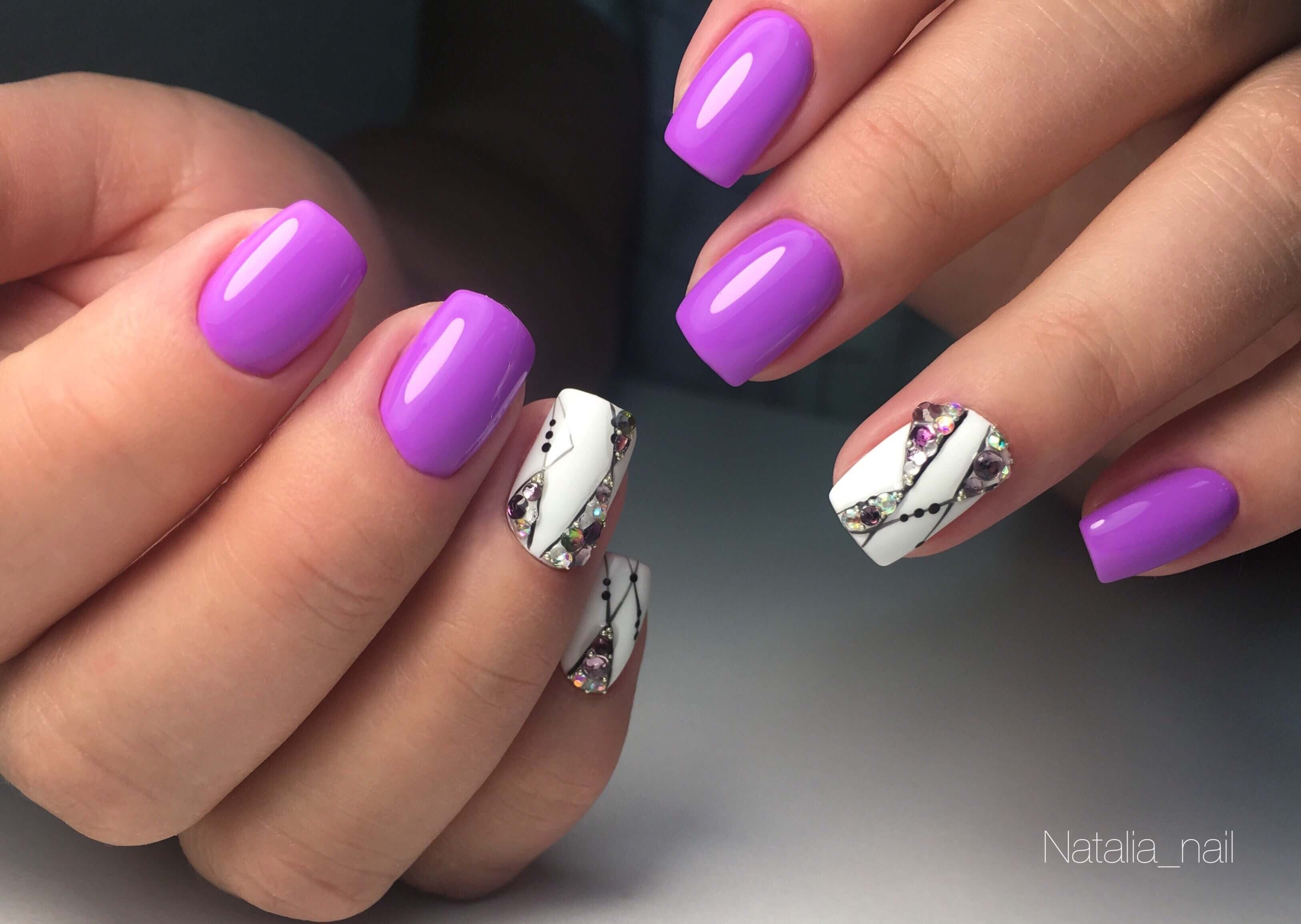 Шеллак фиолетовый с белым на ногтях (50 фото)