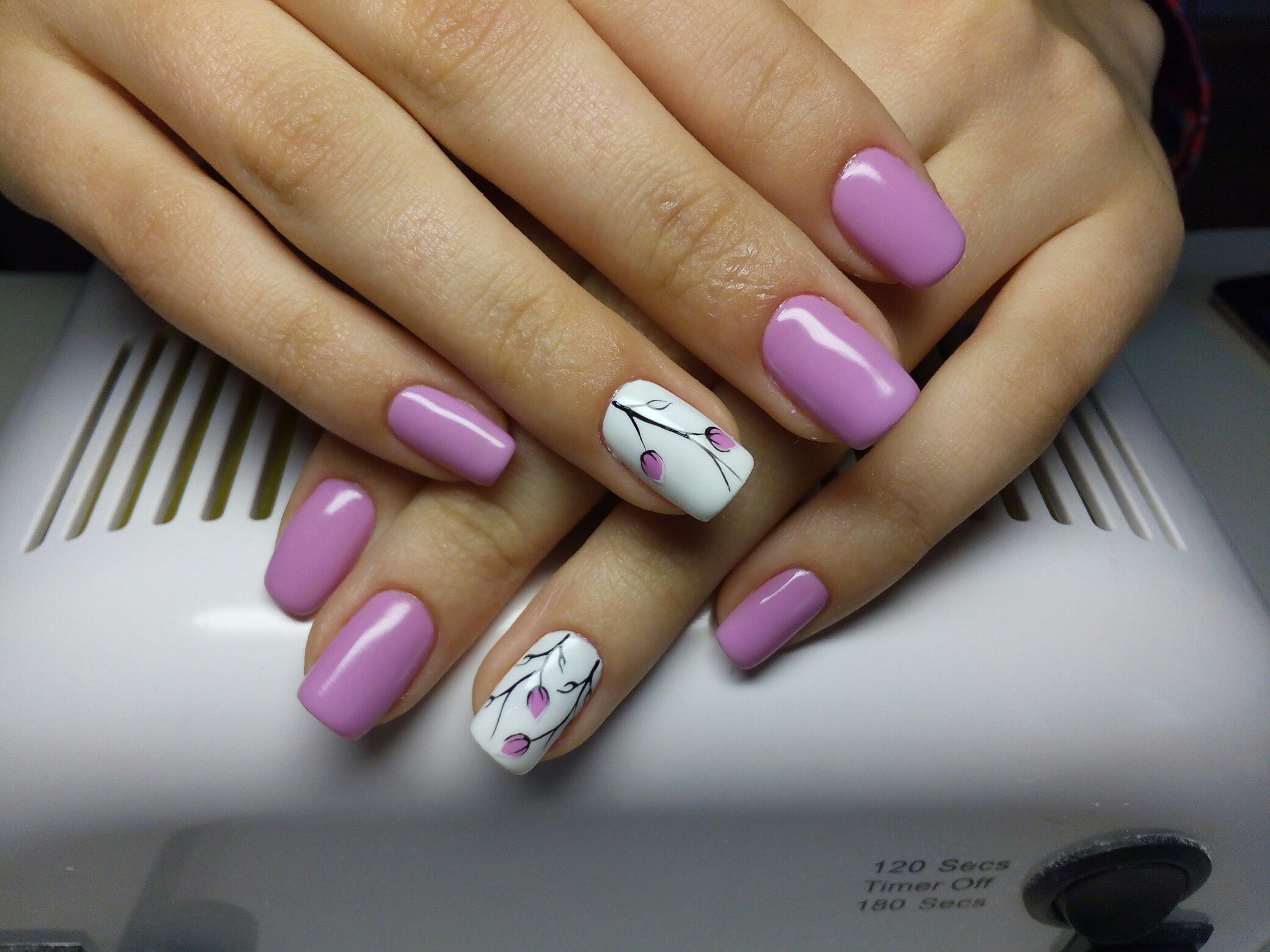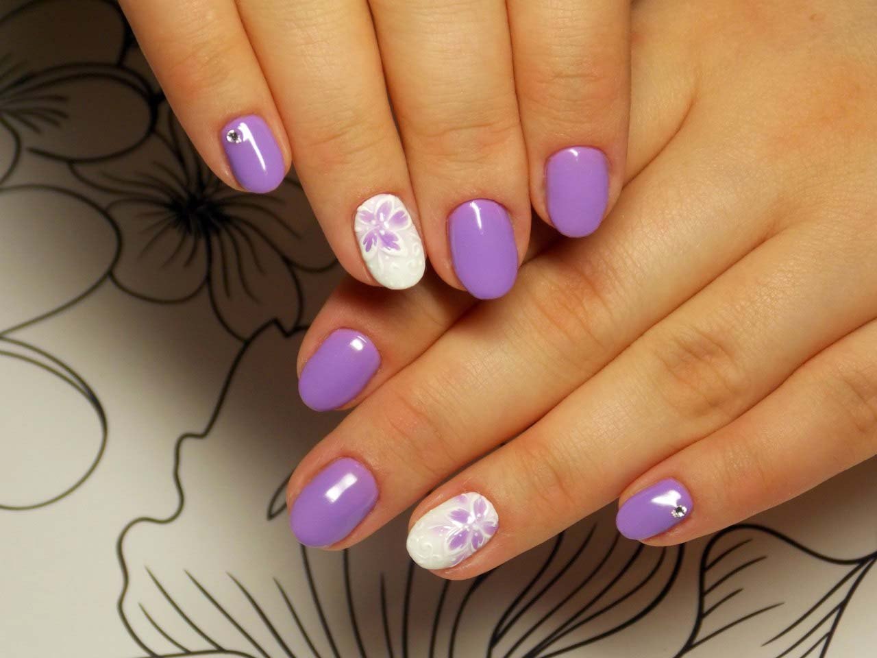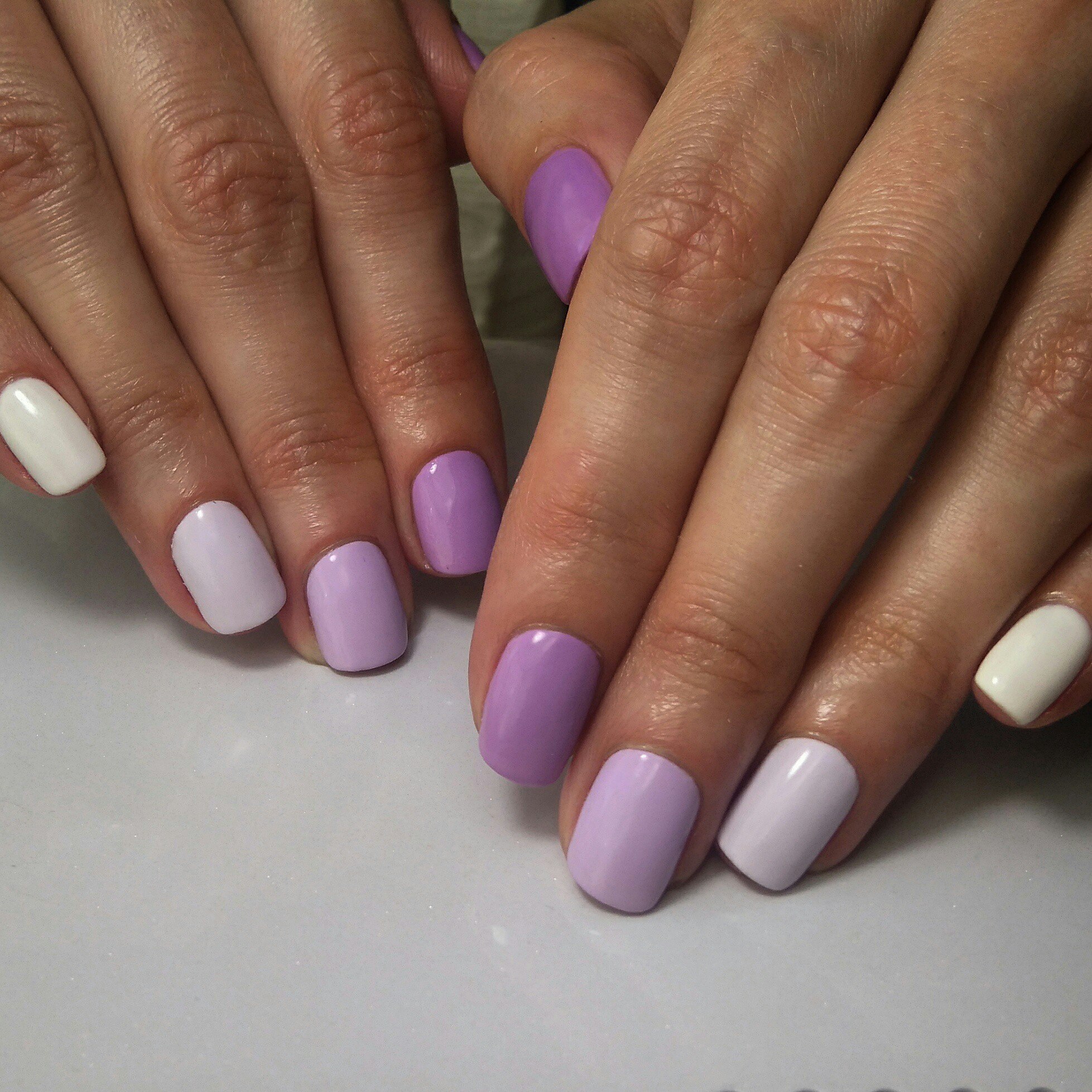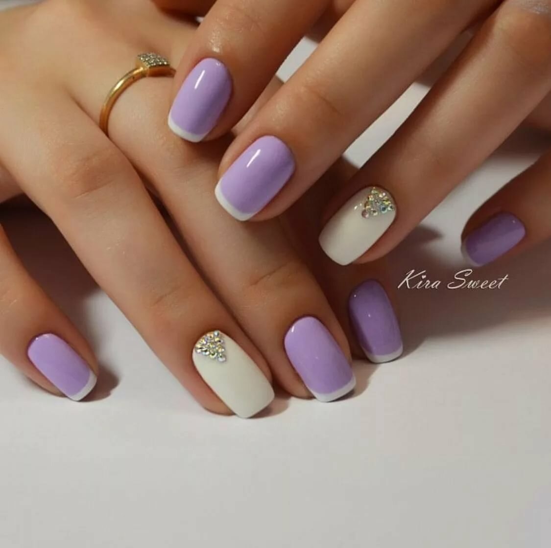 Маникюр сиреневый с белым