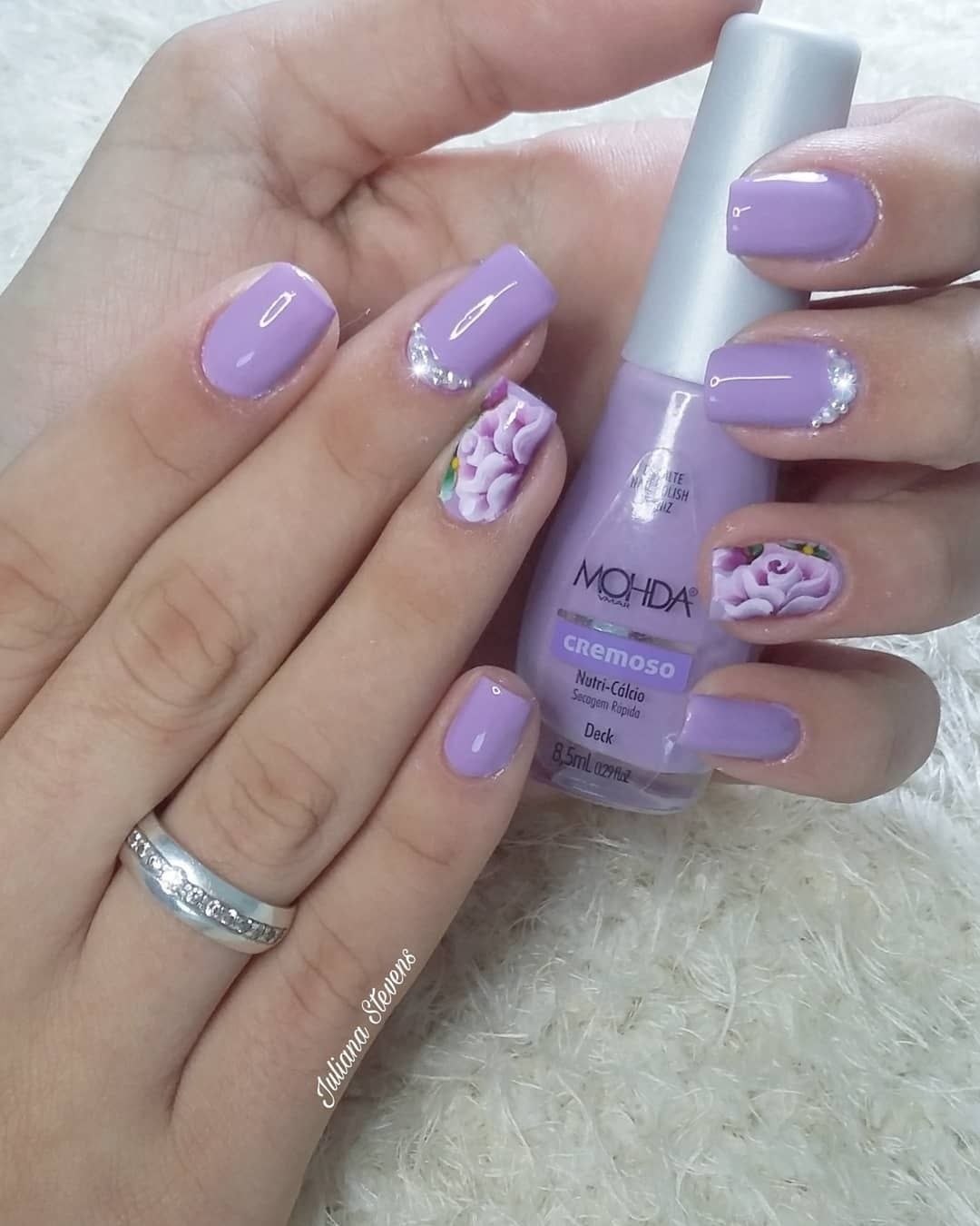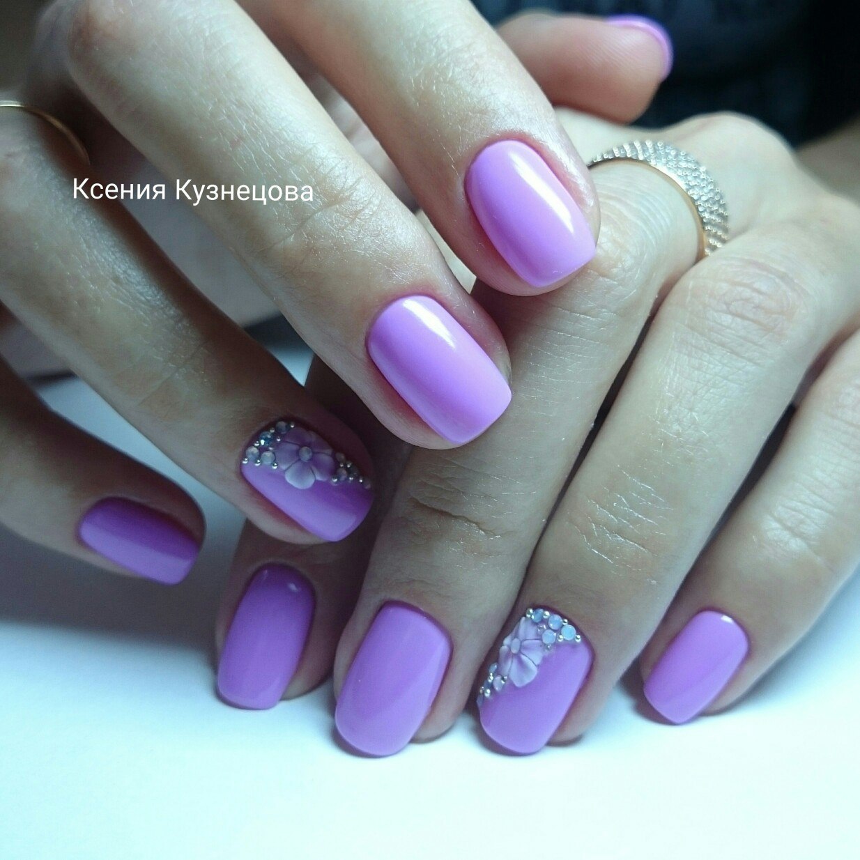 Сиреневый маникюр со стразами