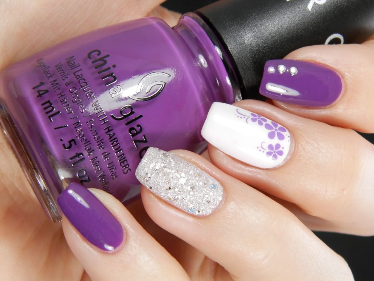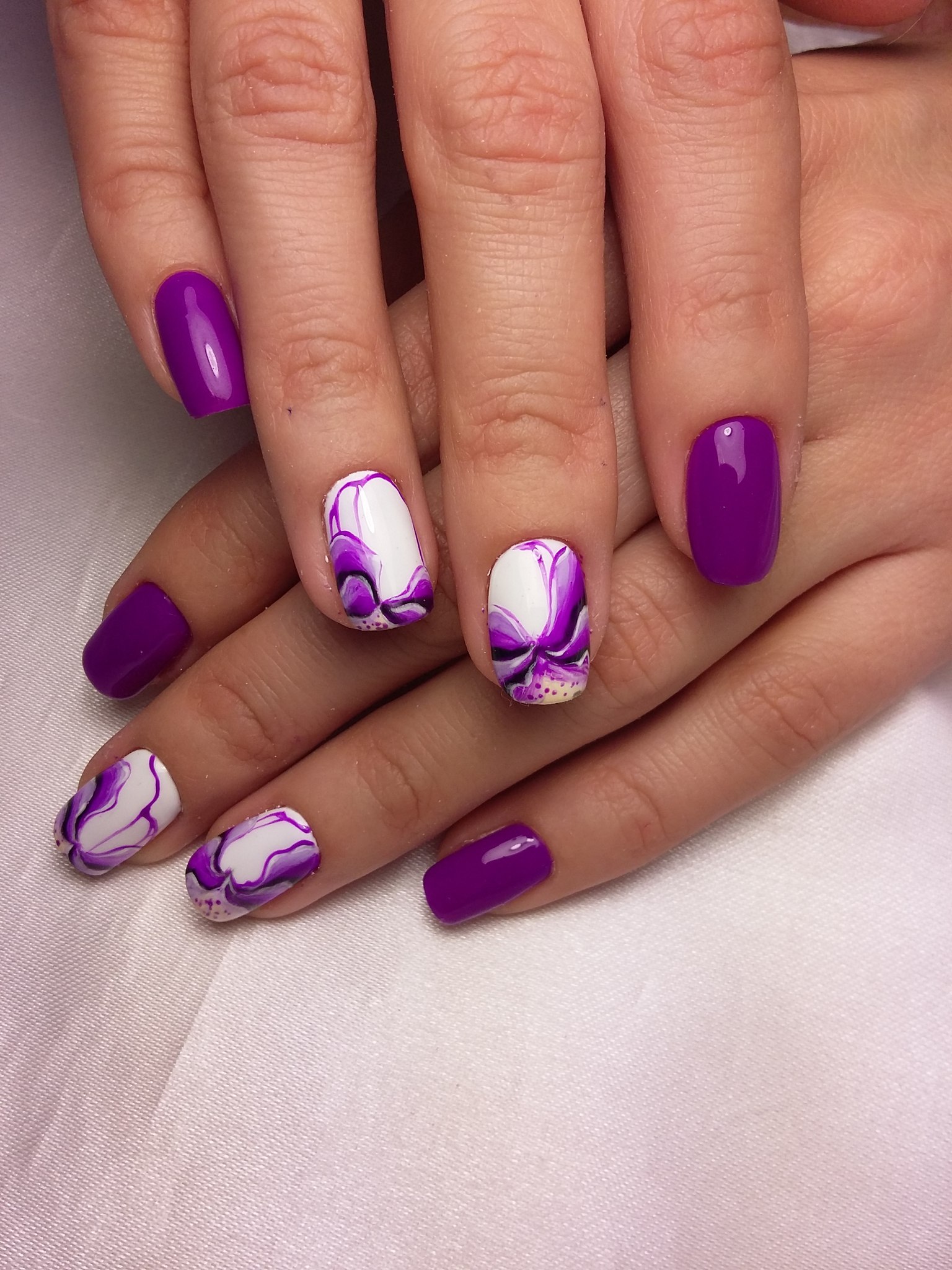 Маникюр фиолетовый с белым