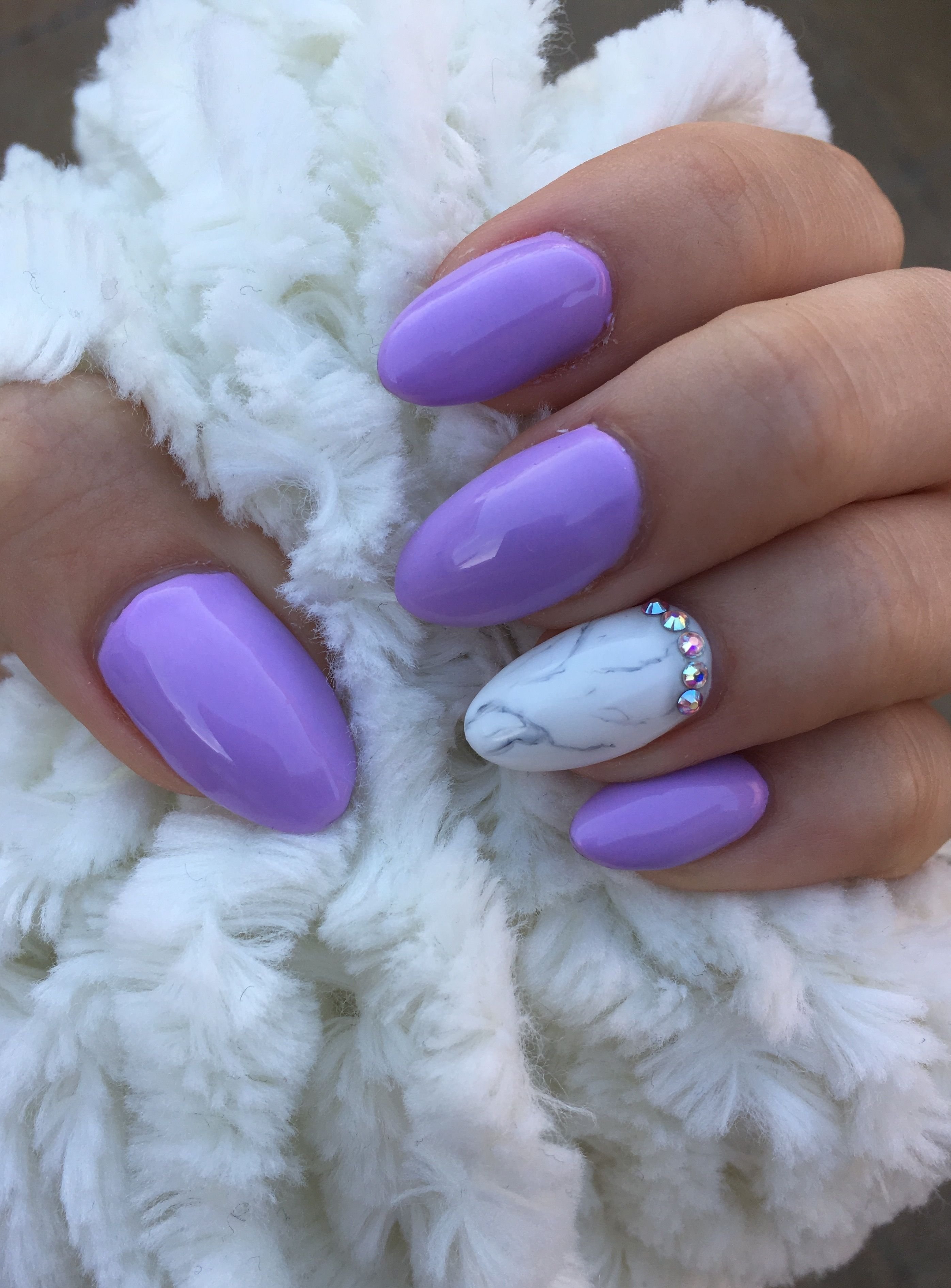 Ногти сиреневые с белым миндаль