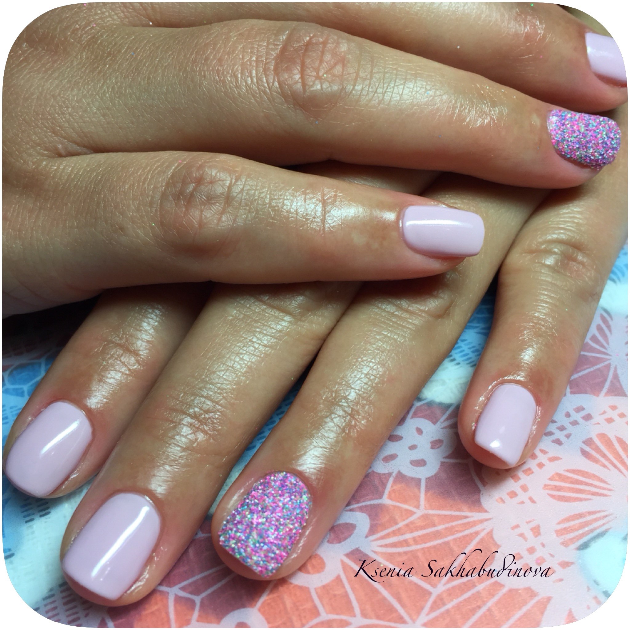 Маникюр нежно сиреневый с блестками