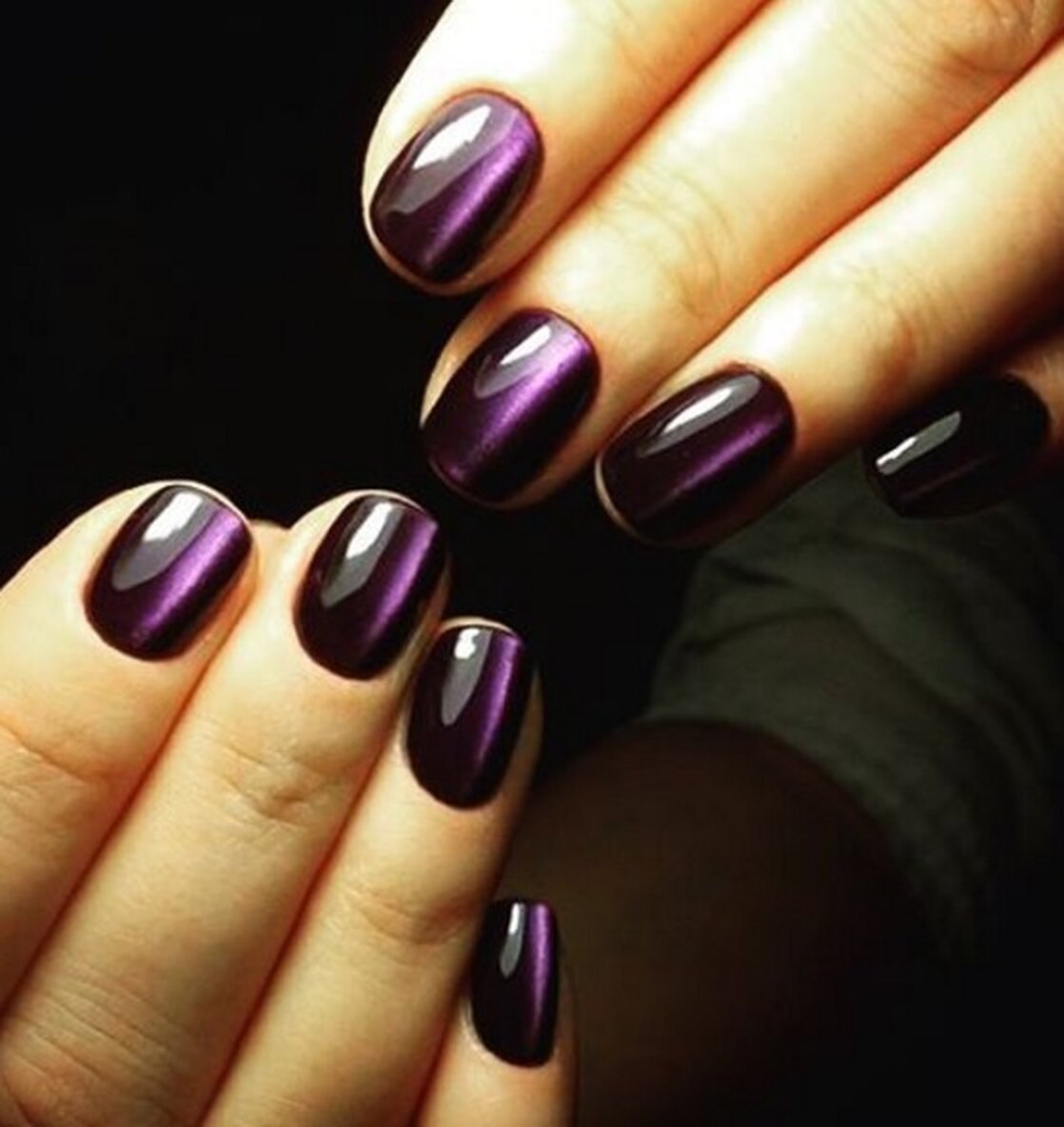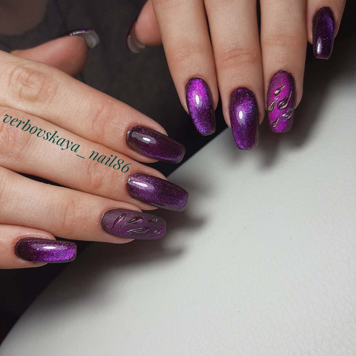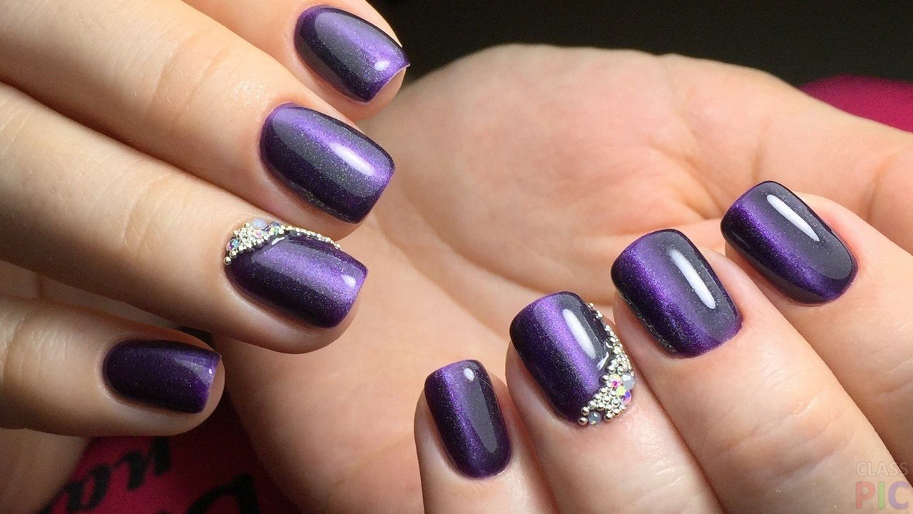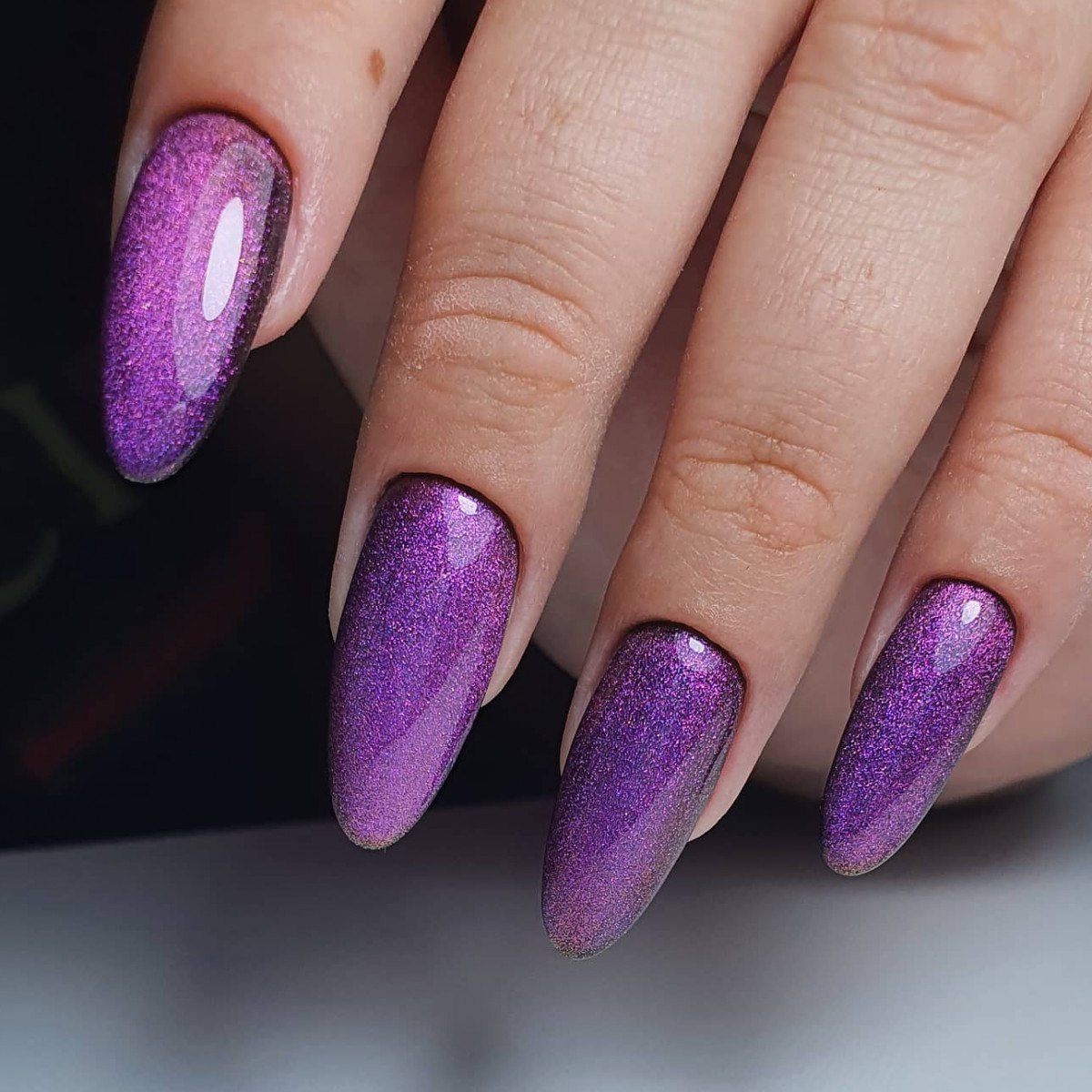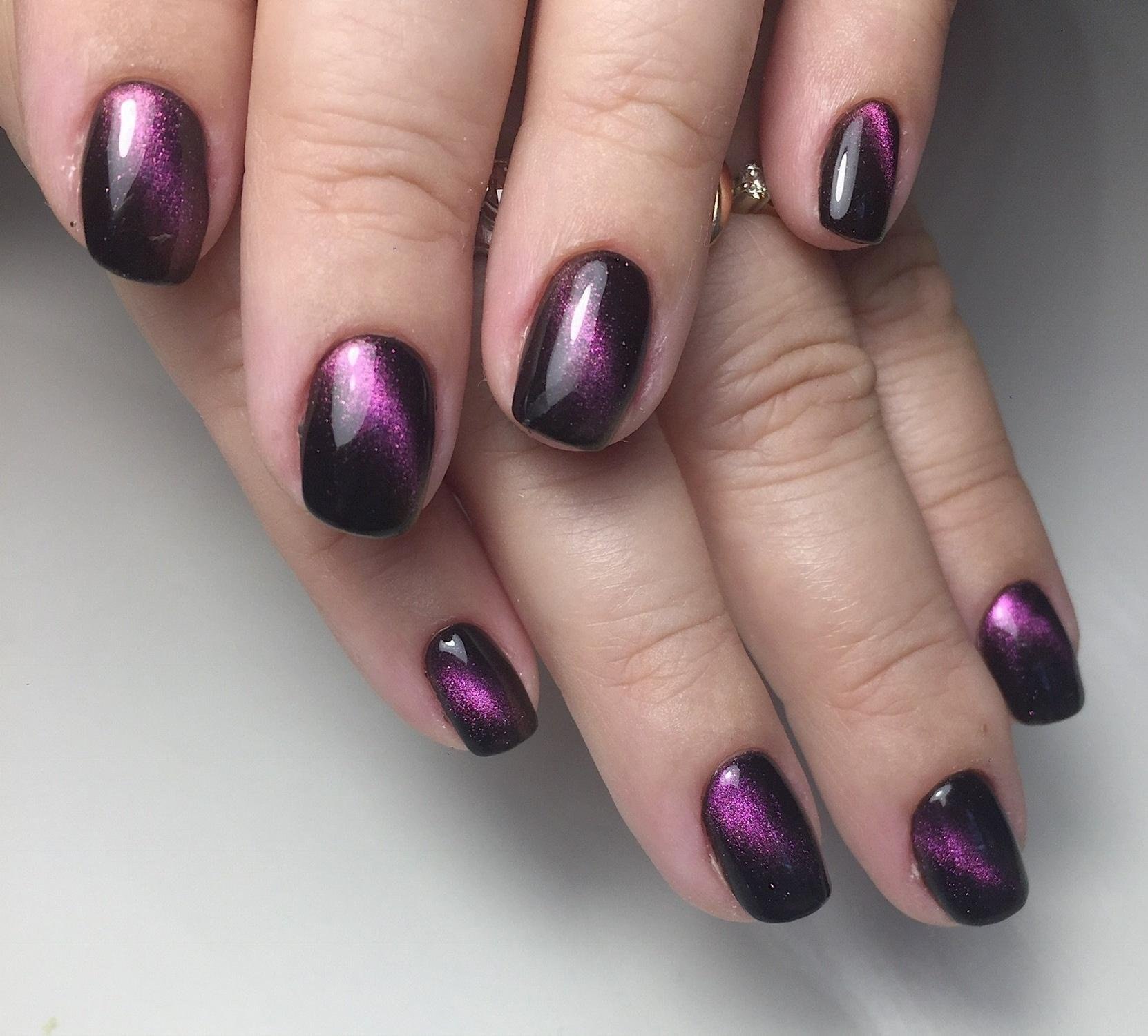 Сиреневый кошачий глаз на ногтях (52 фото)