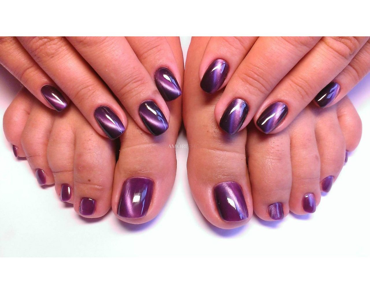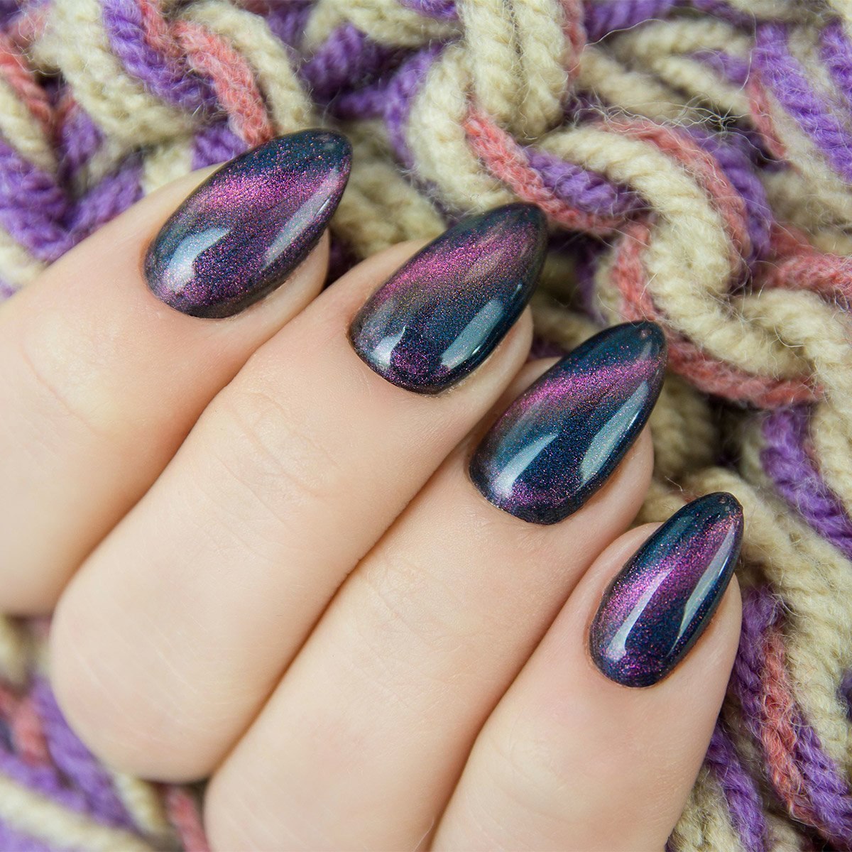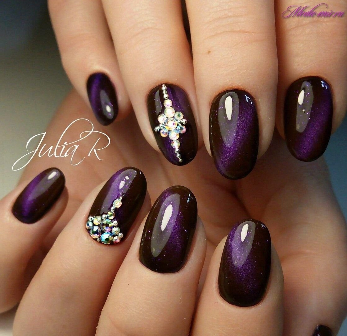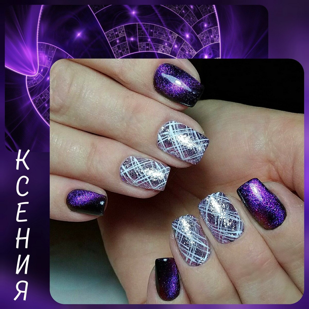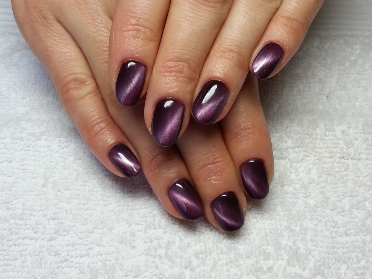 Сиреневый кошачий глаз на ногтях (52 фото)