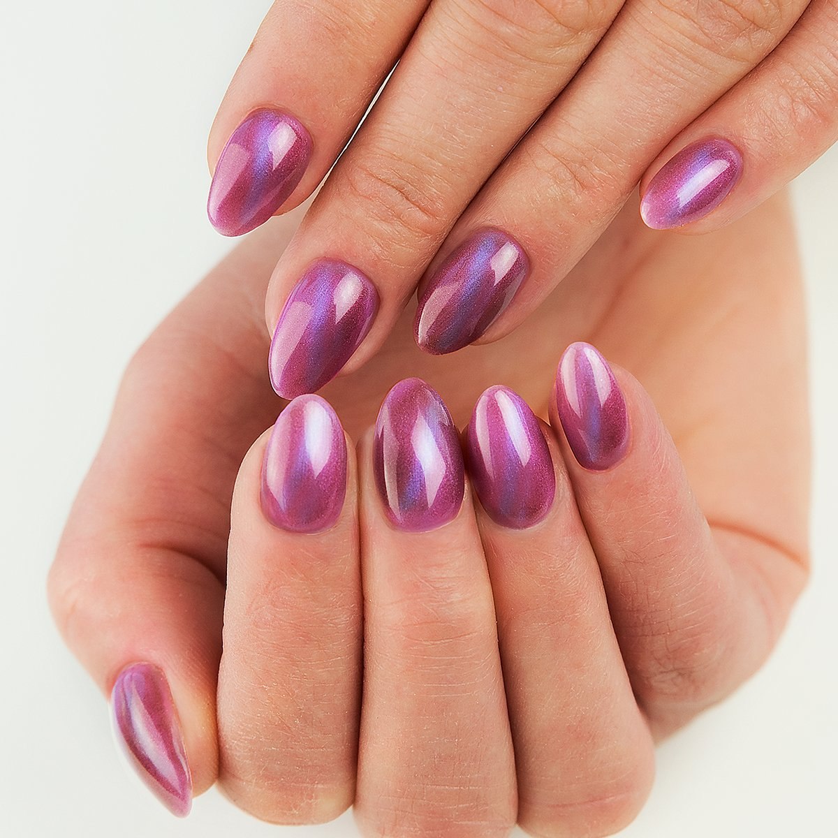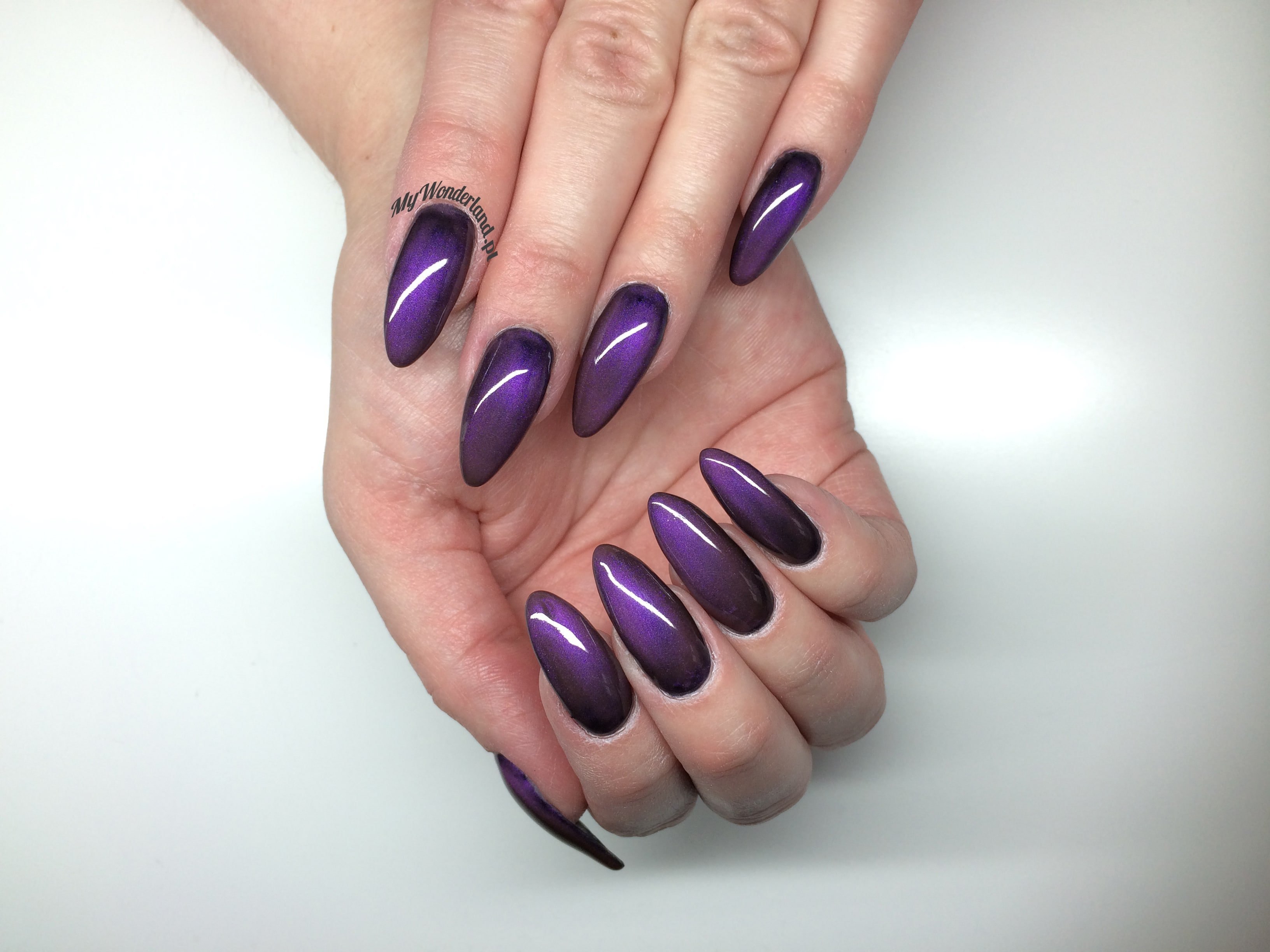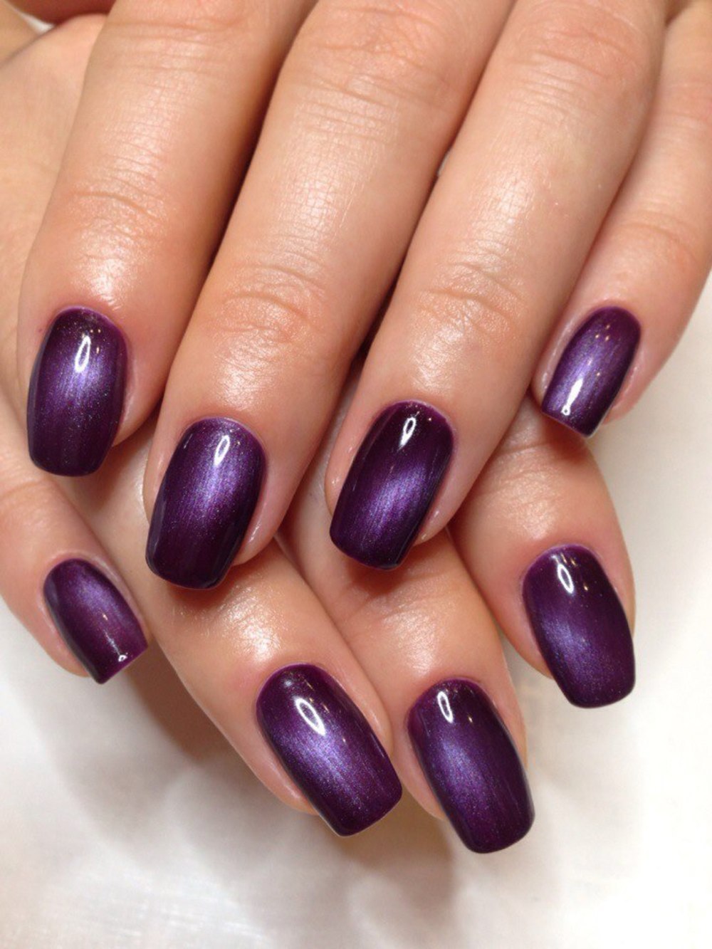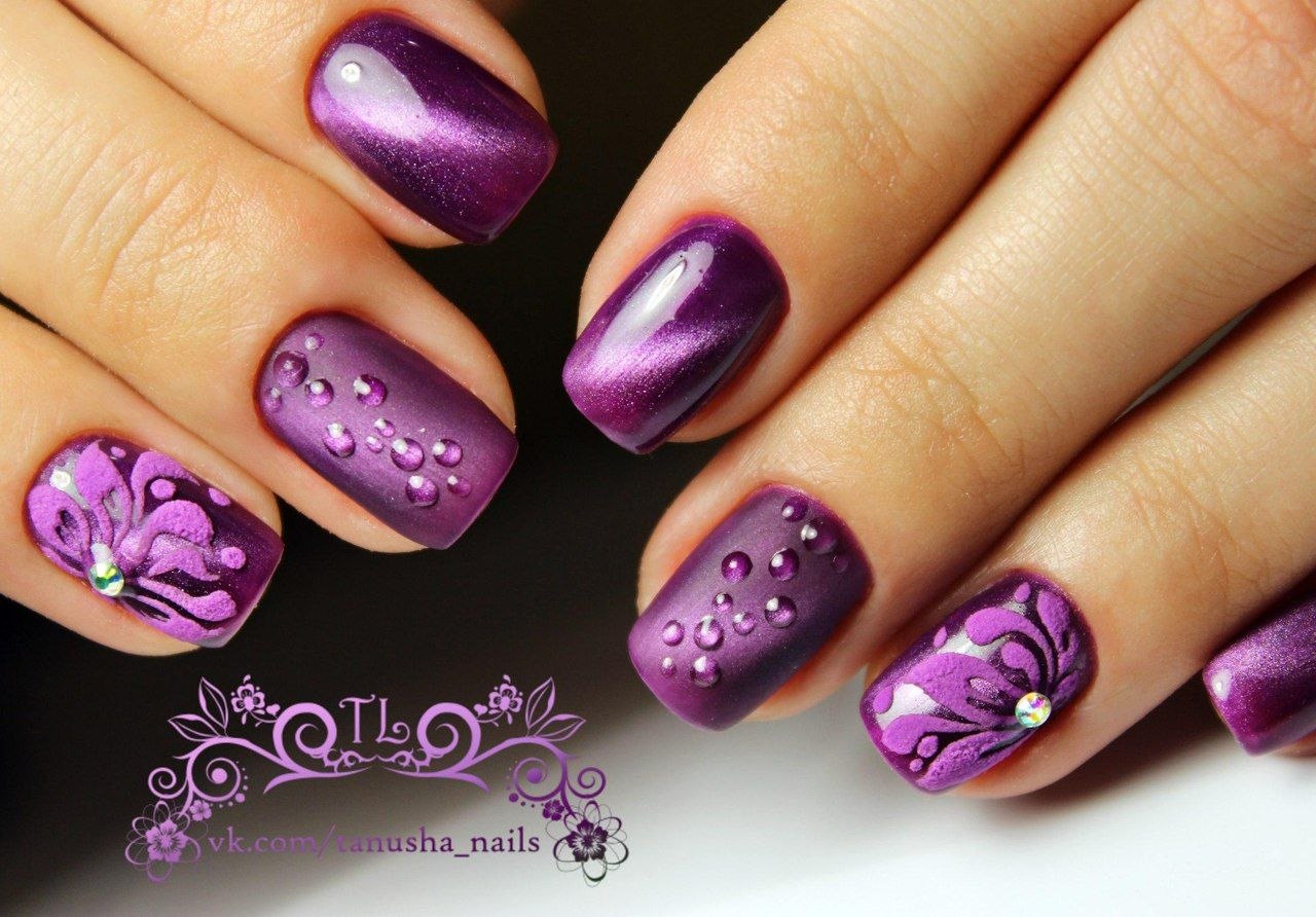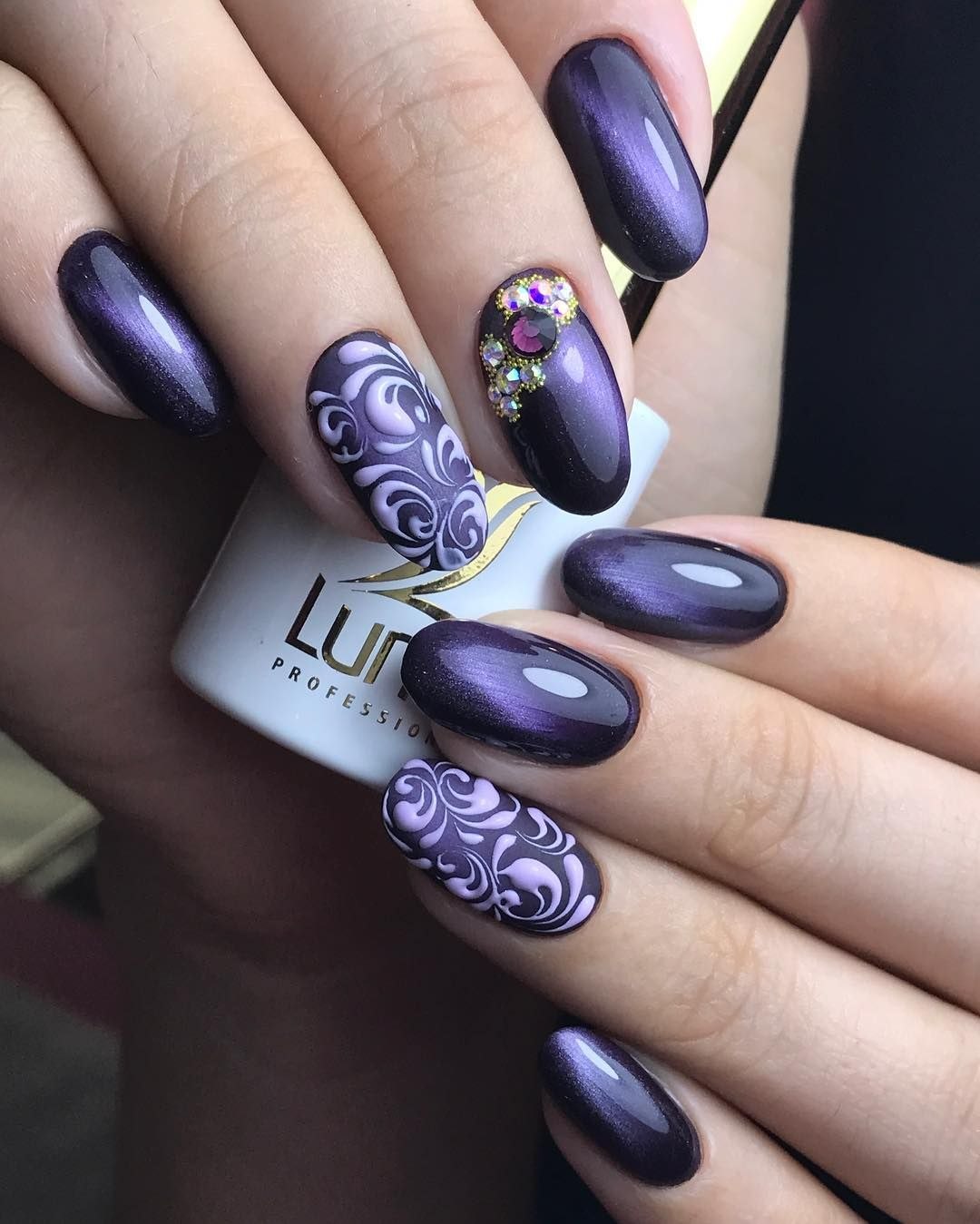 Сиреневый кошачий глаз на ногтях (52 фото)