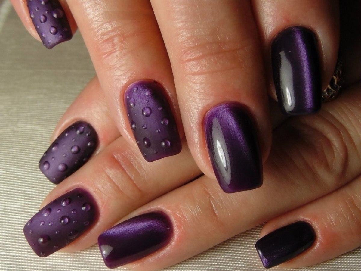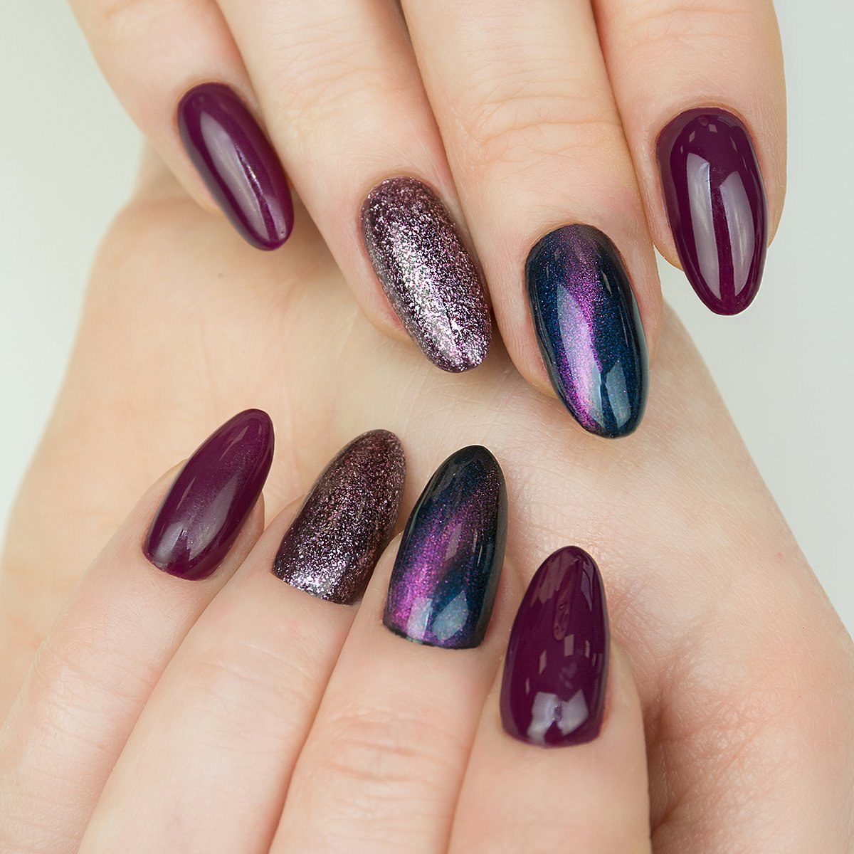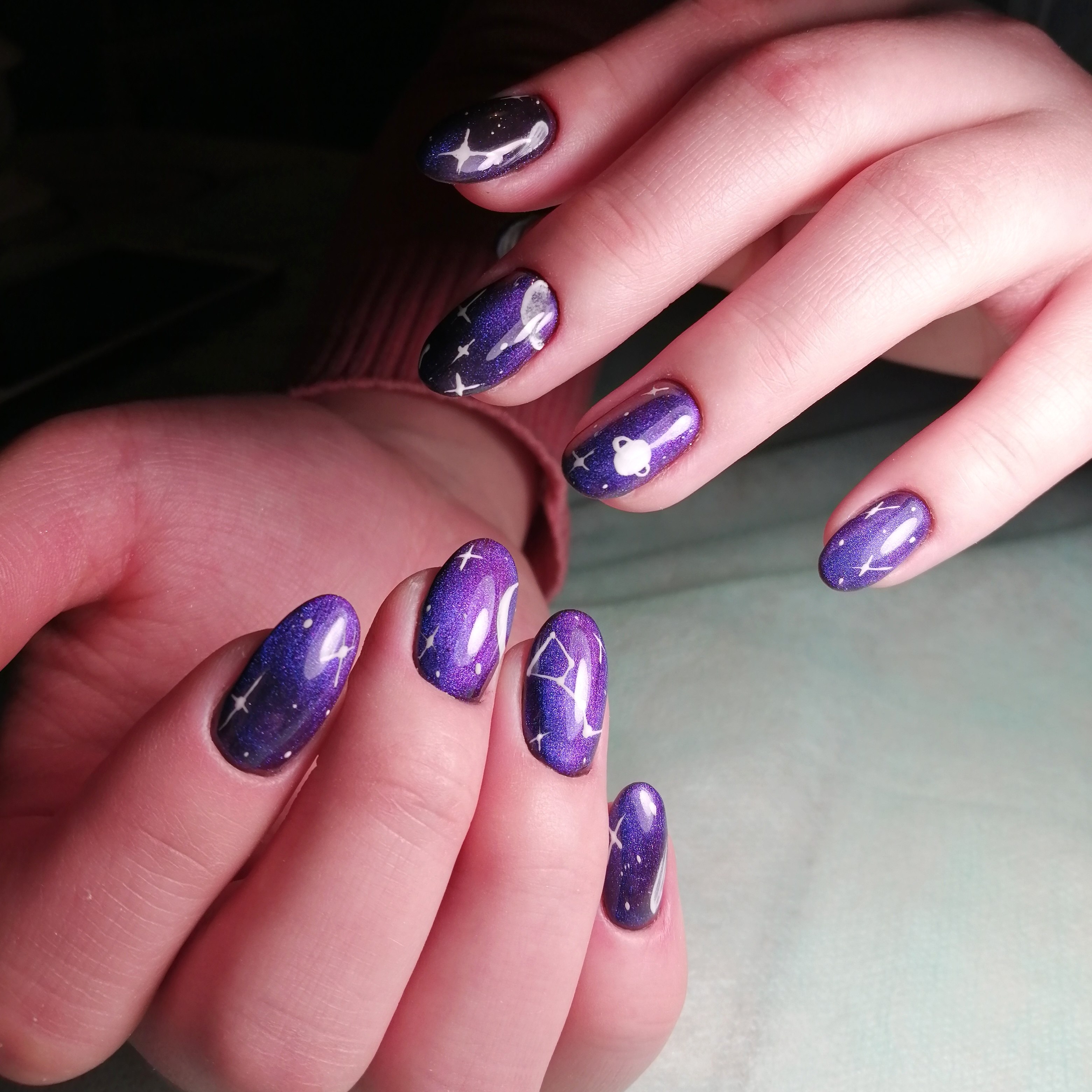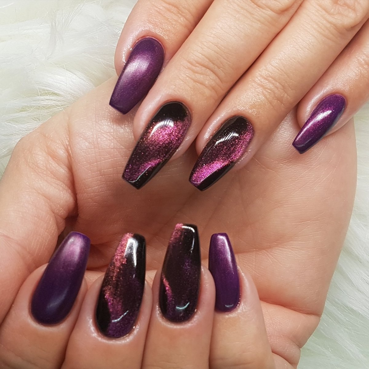 Сиреневый кошачий глаз на ногтях (52 фото)
