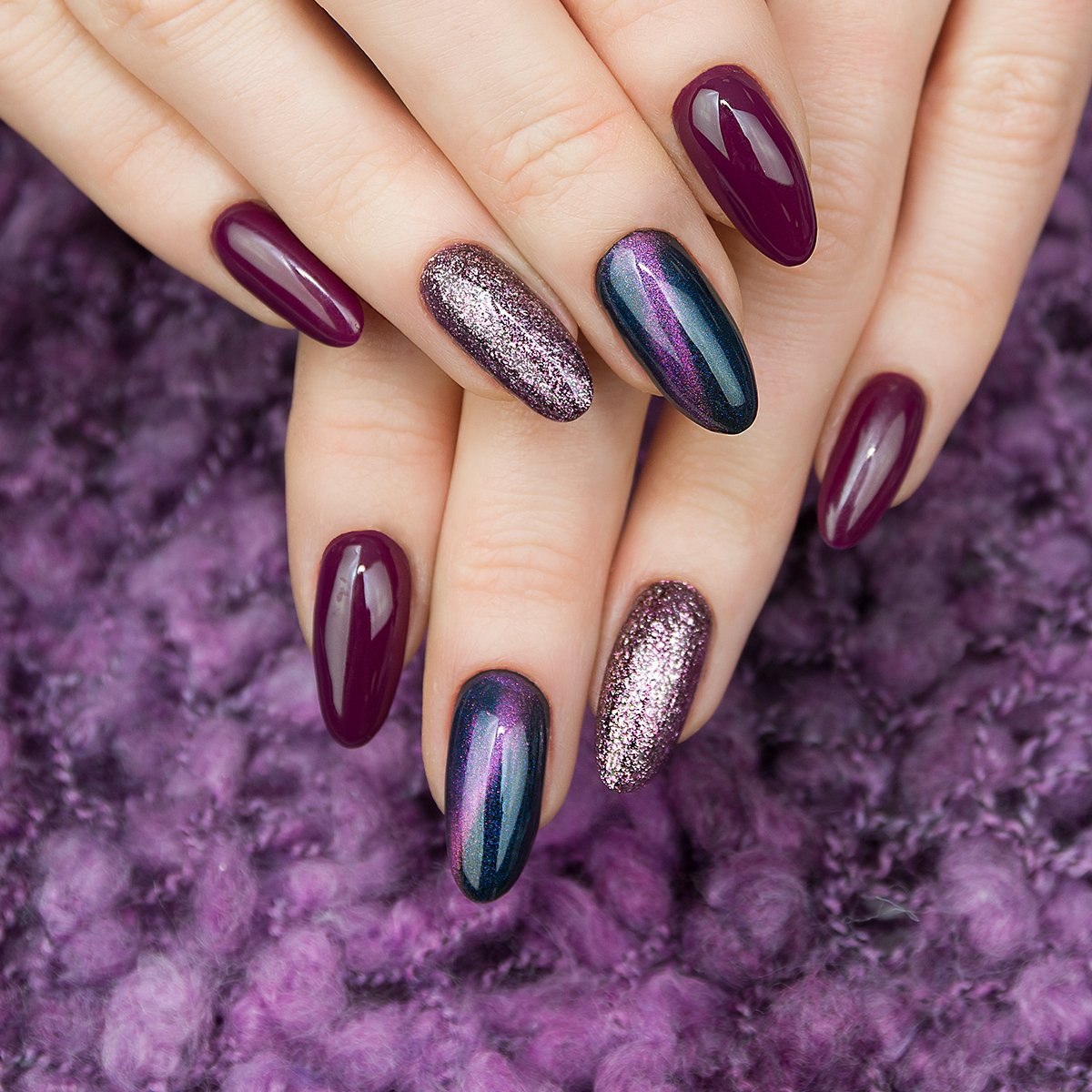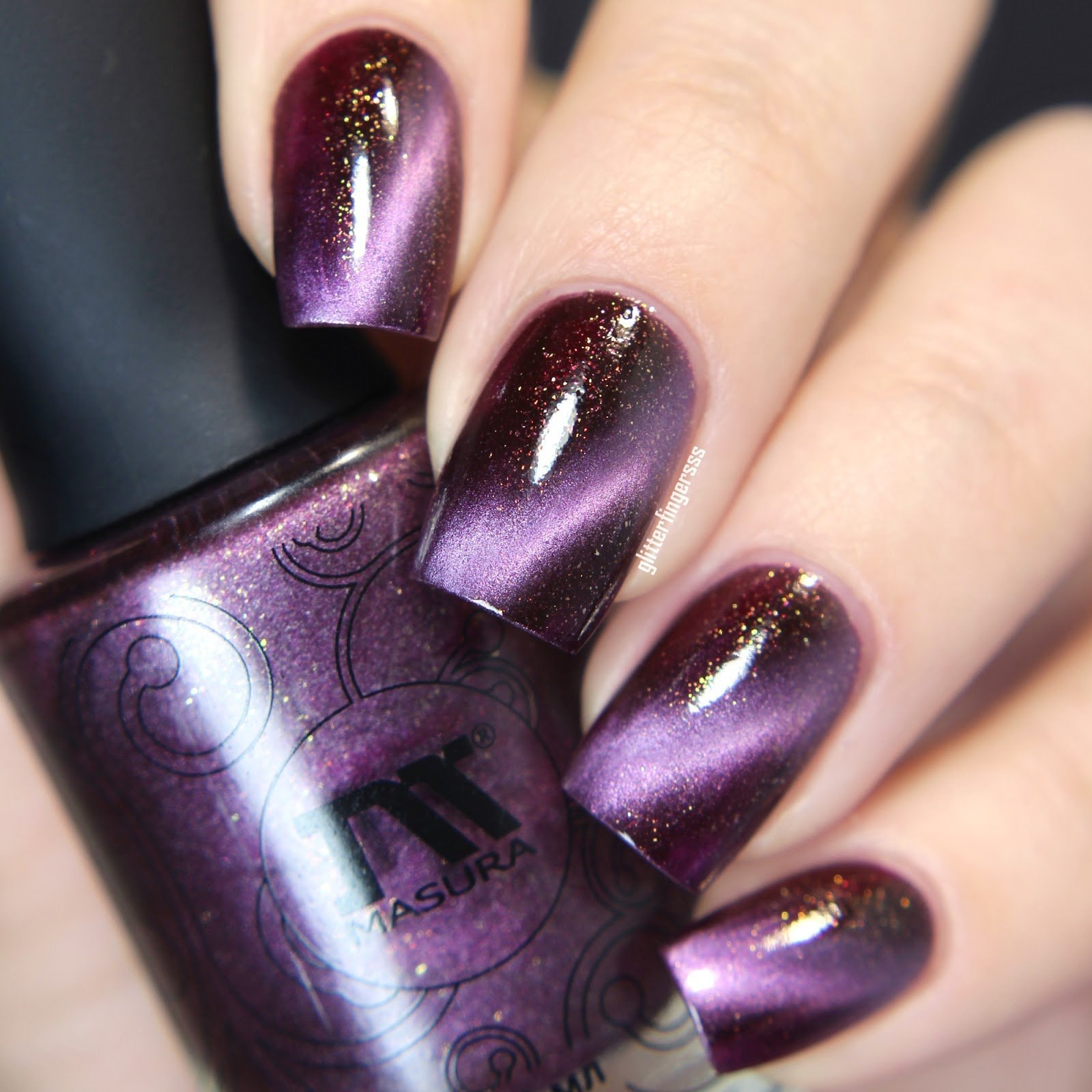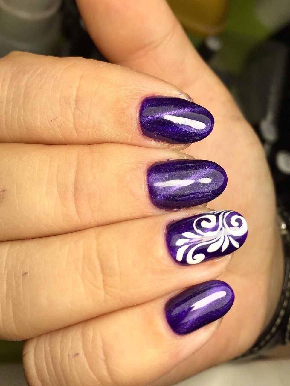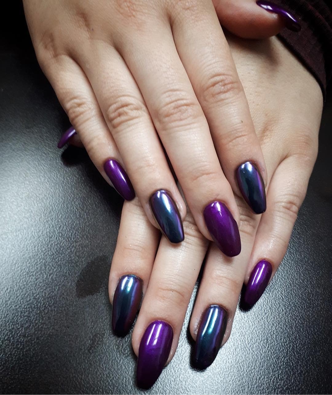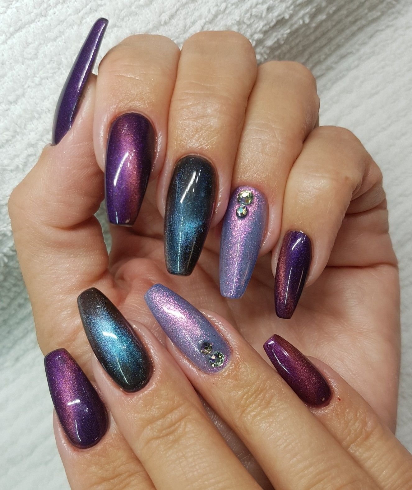 Сиреневый кошачий глаз на ногтях (52 фото)
