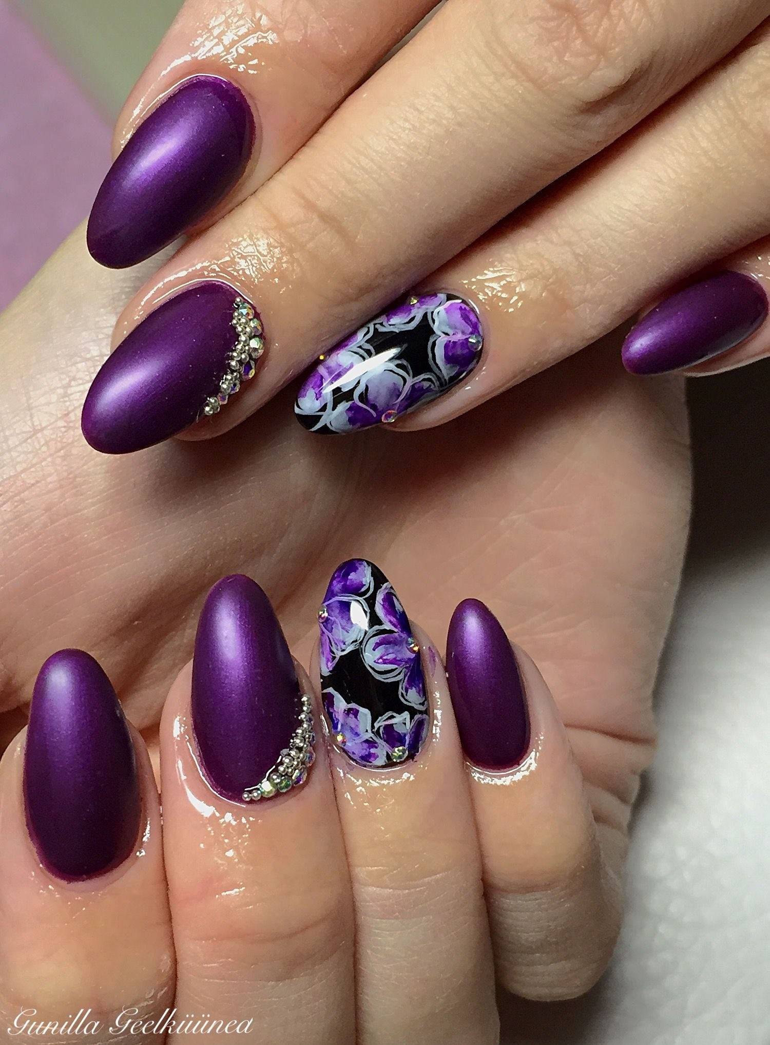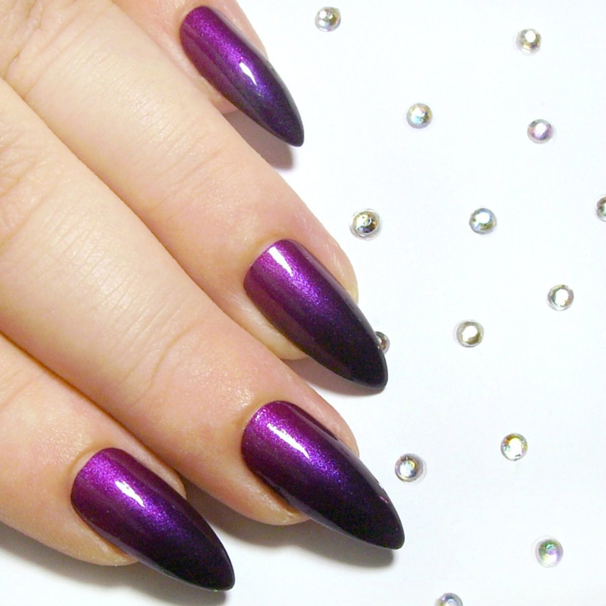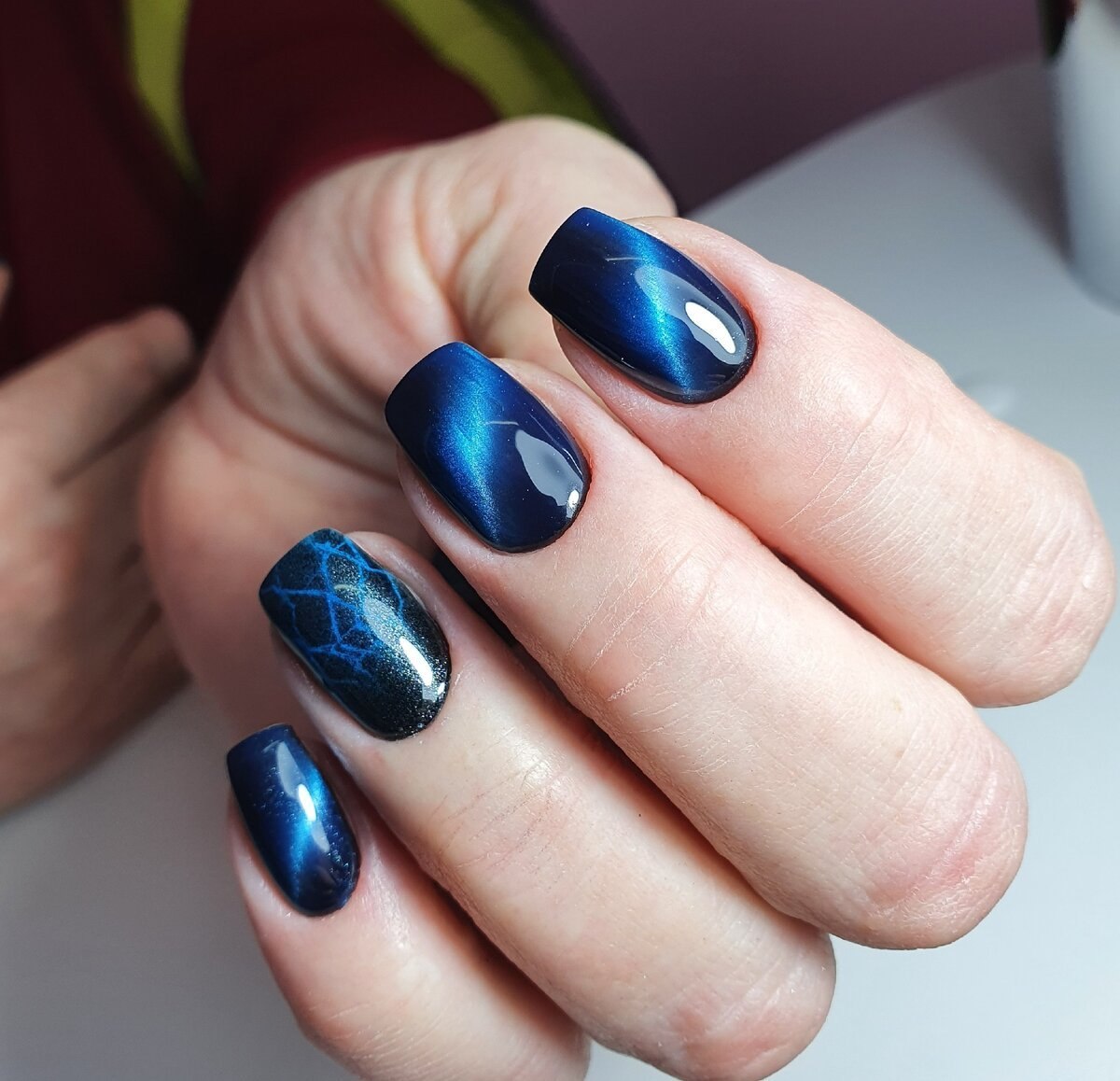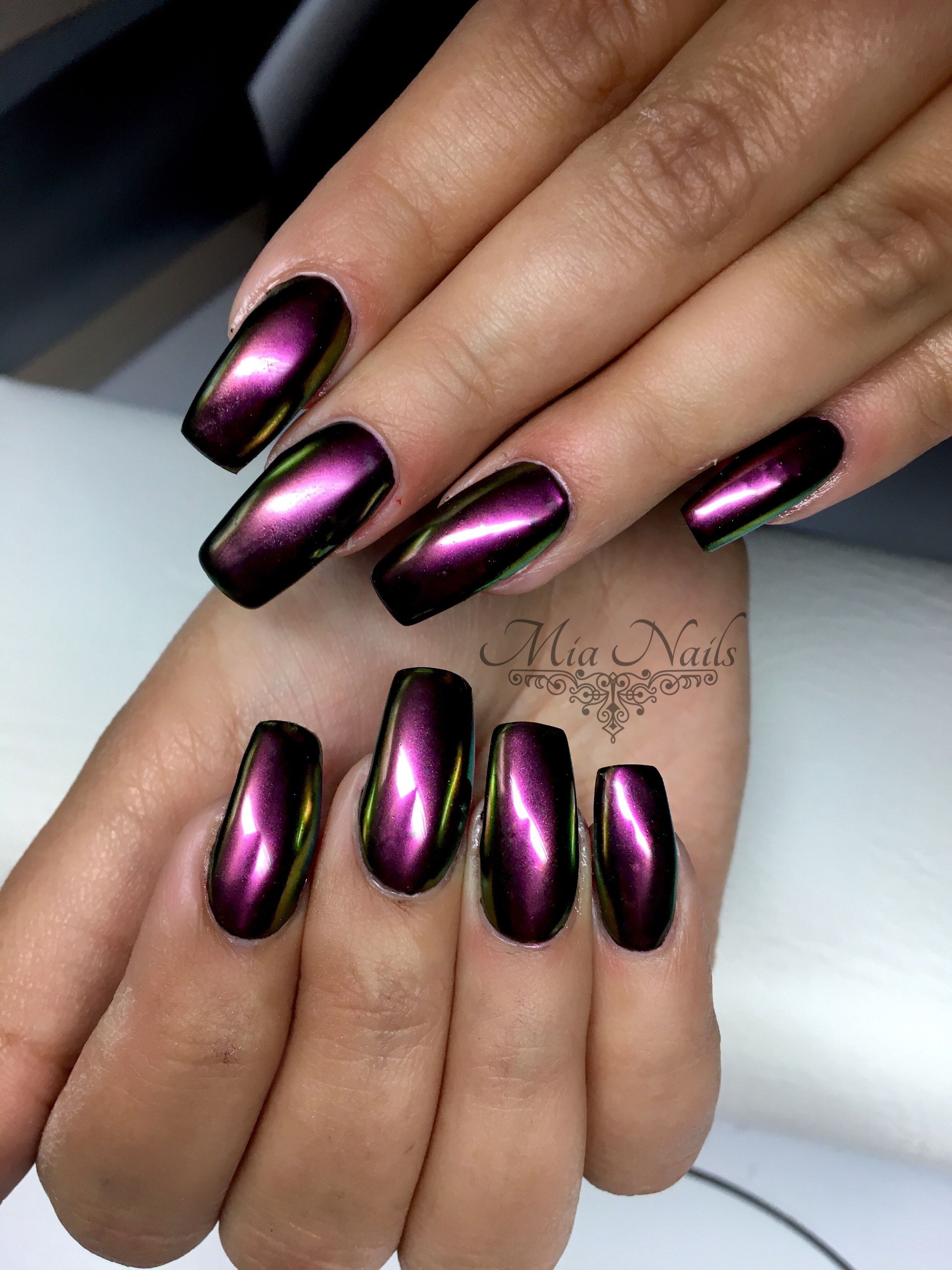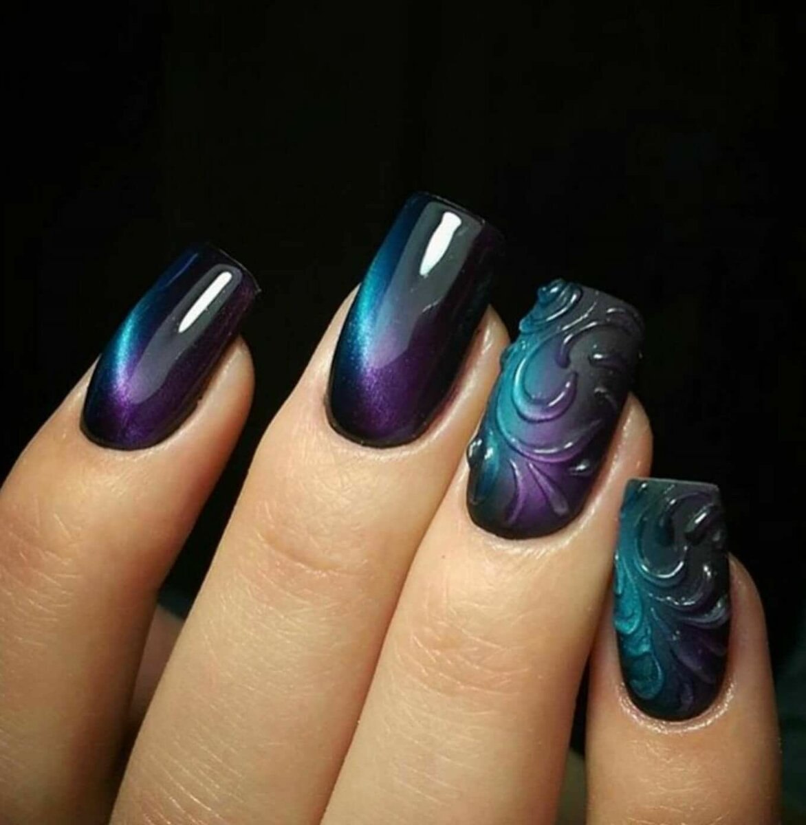 Сиреневый кошачий глаз на ногтях (52 фото)