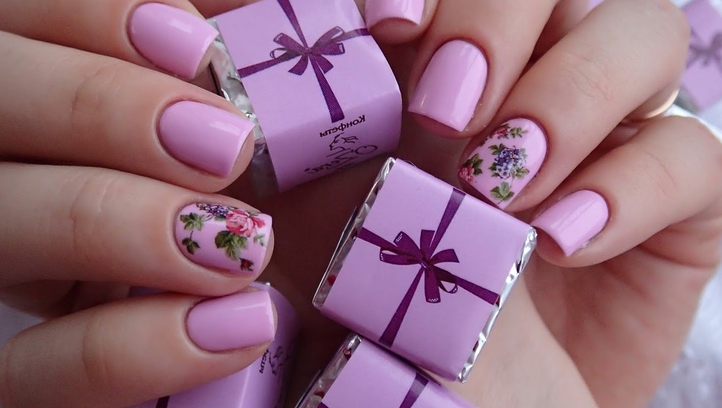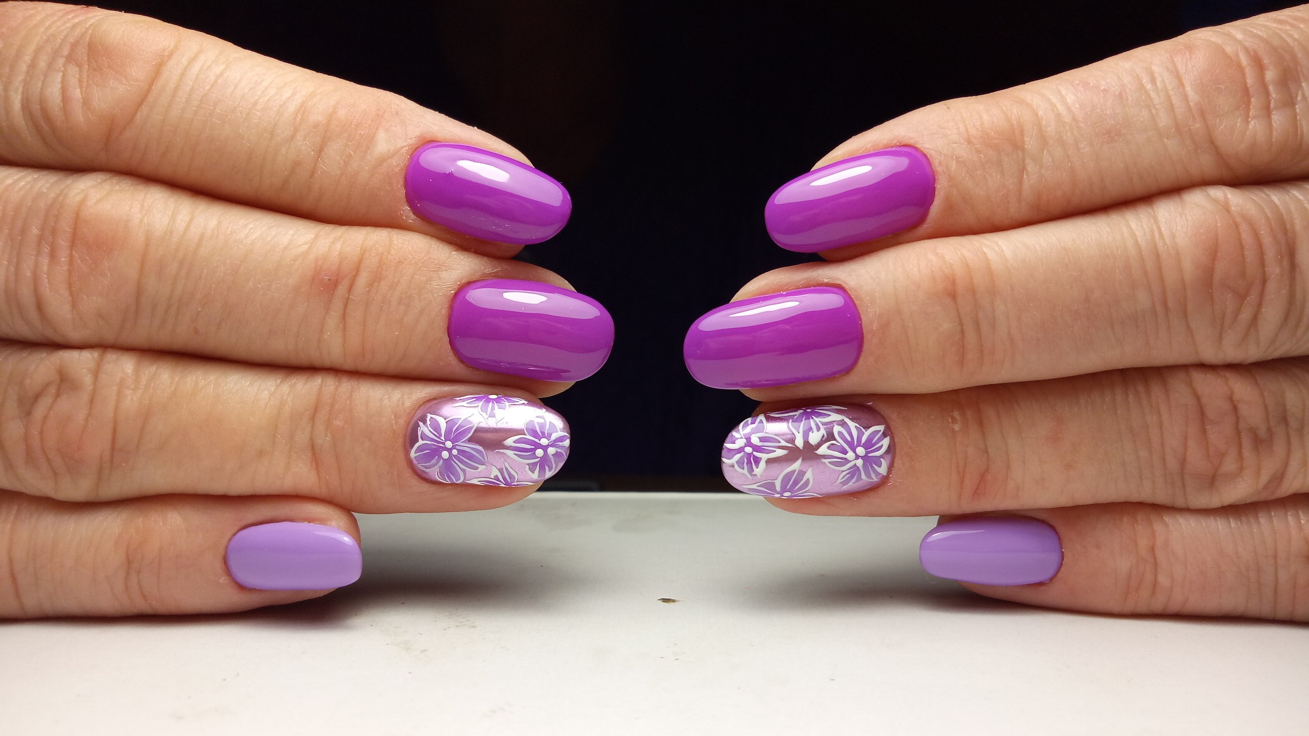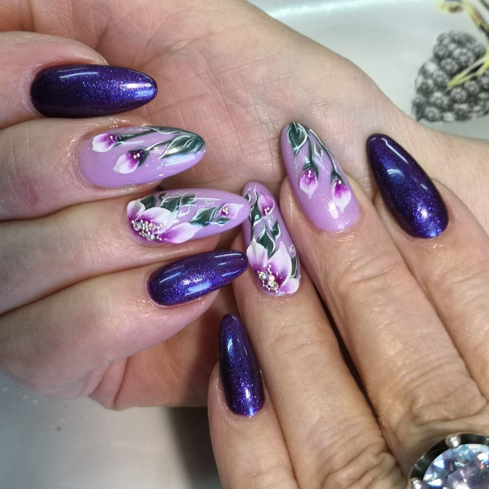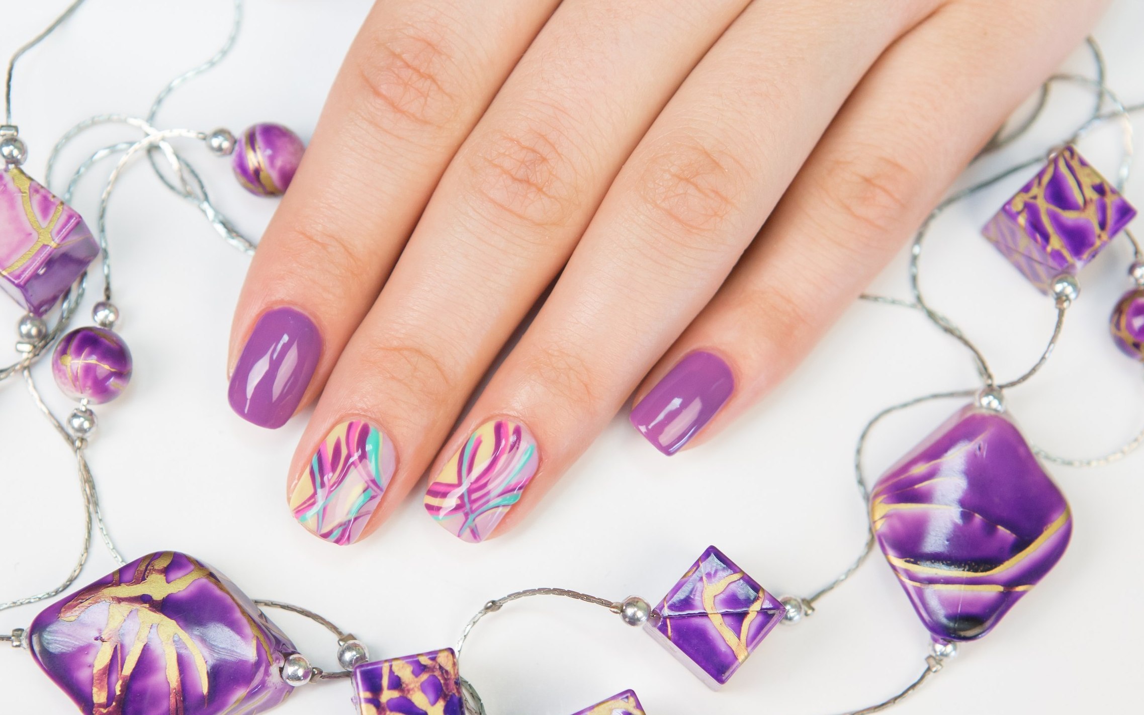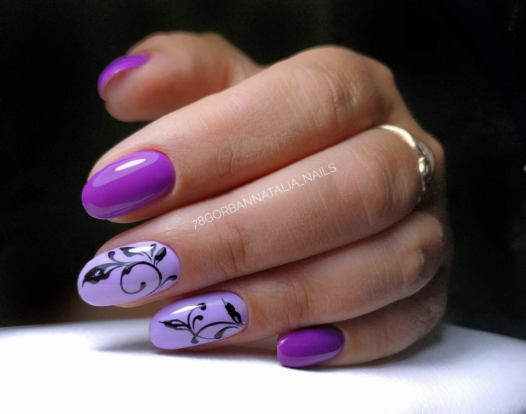 Фон в фиолетовых тонах на ногтях (60 фото)