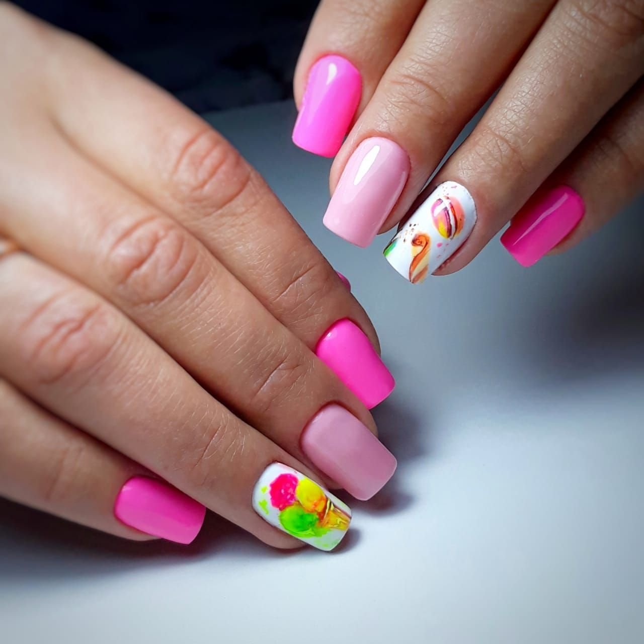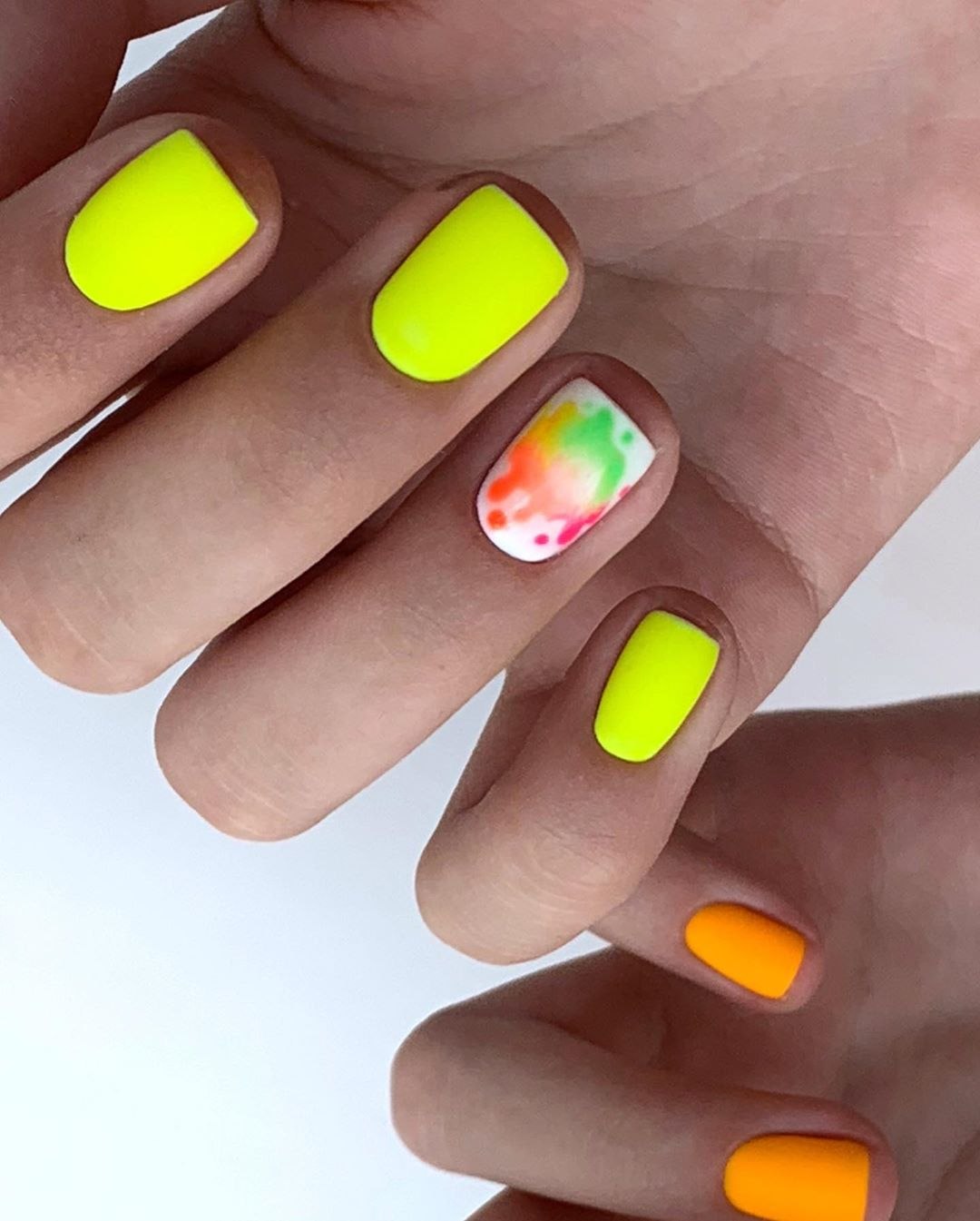 Яркий маникюр на квадратные ногти