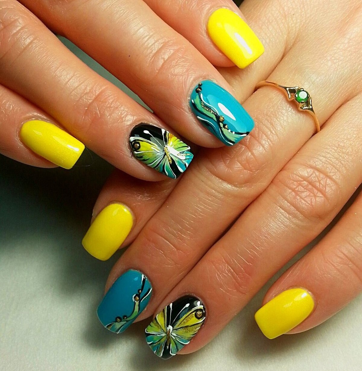 Яркий маникюр на квадратную форму