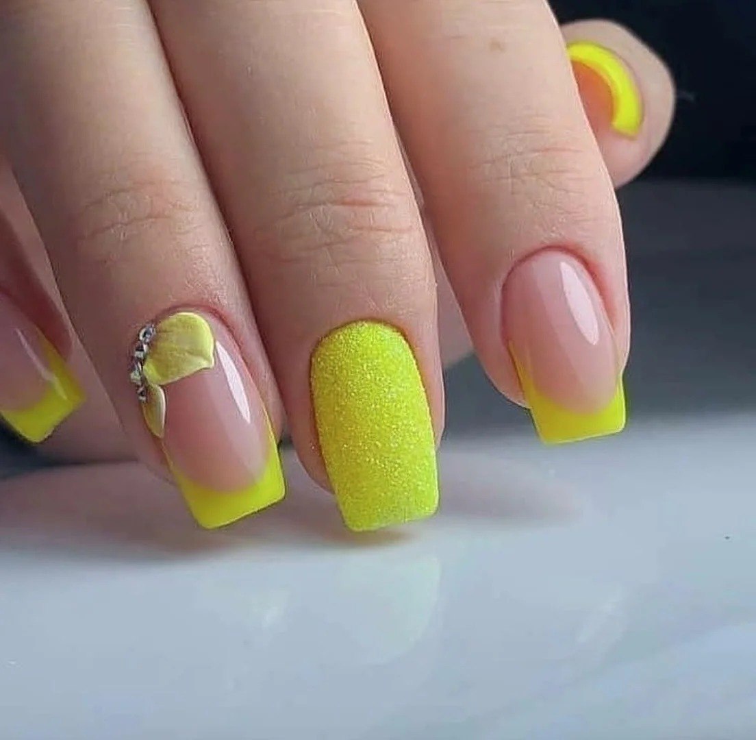 Жёлтый френч на ногтях