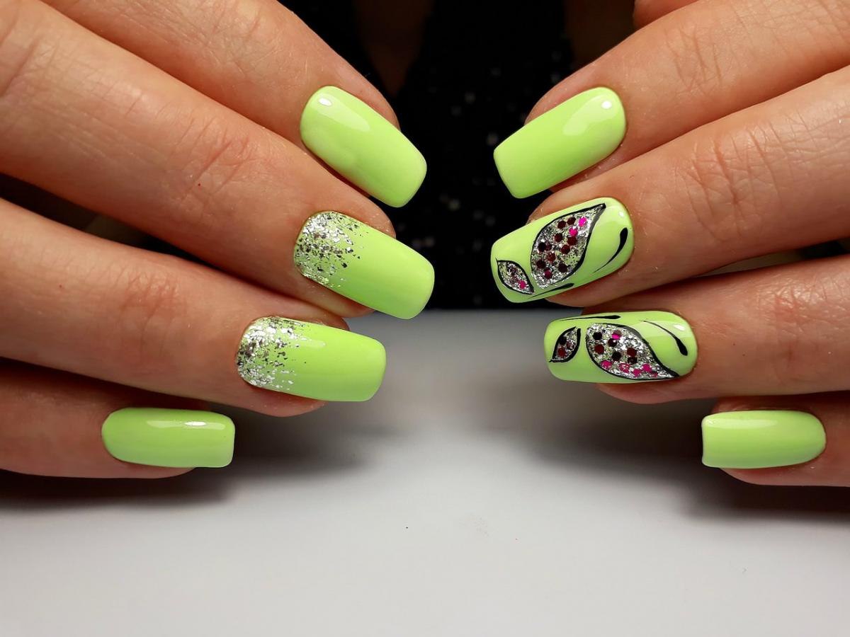 Салатовые ногти квадрат