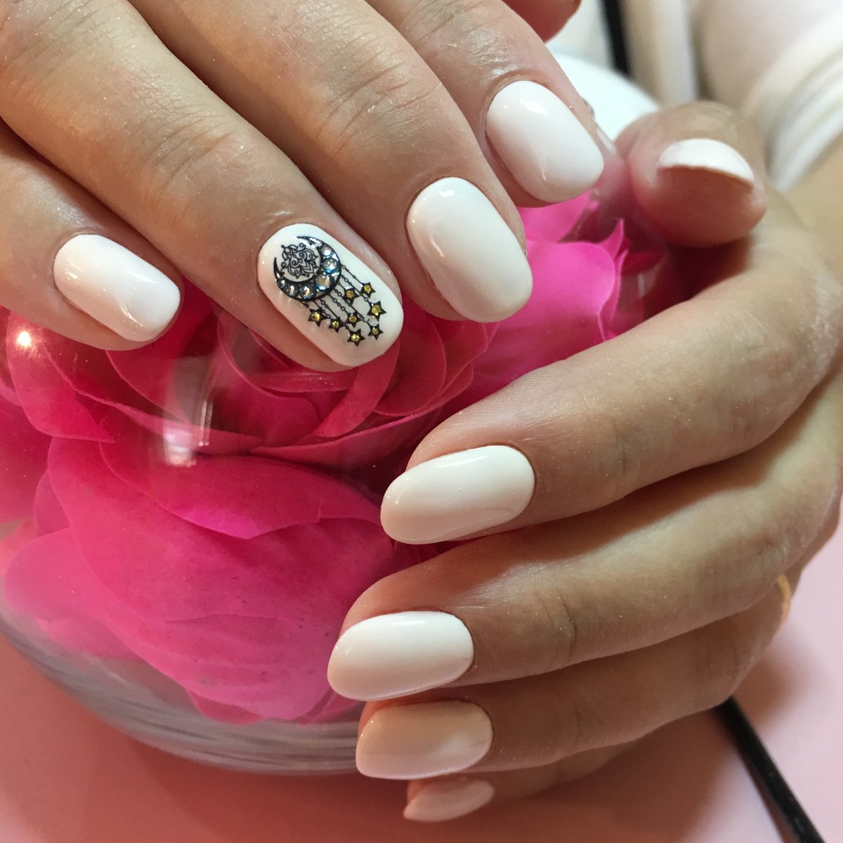 Элегантный маникюр с переводками на ногтях