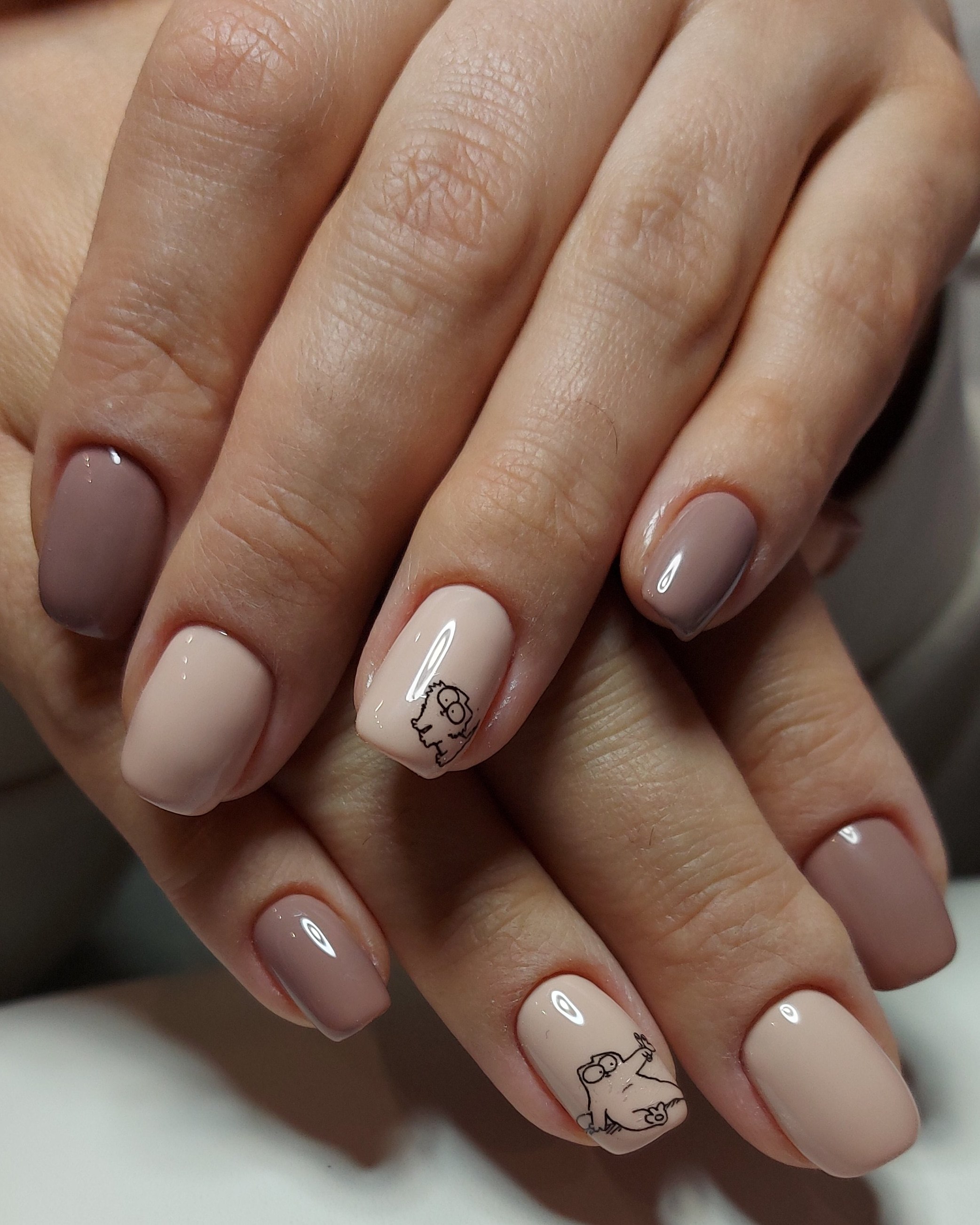Бежевый маникюр с лицами
