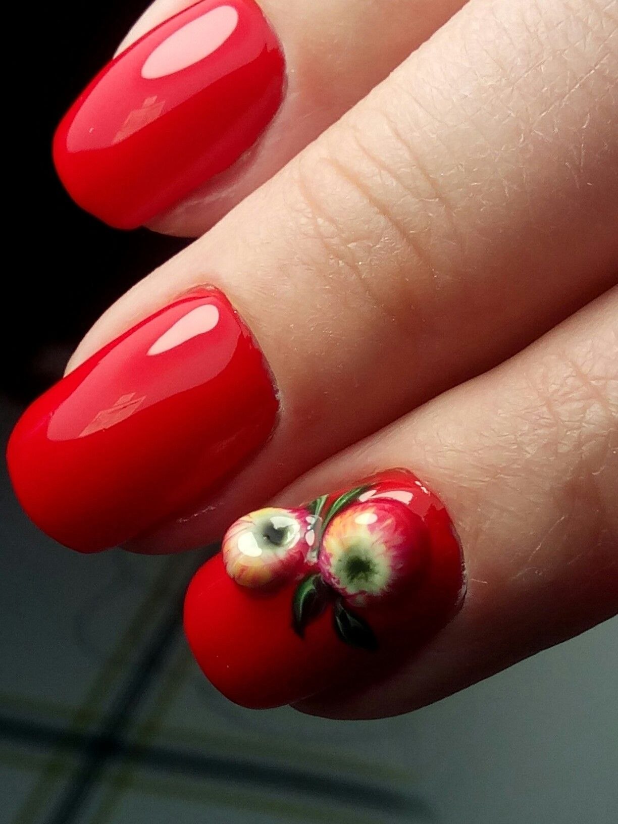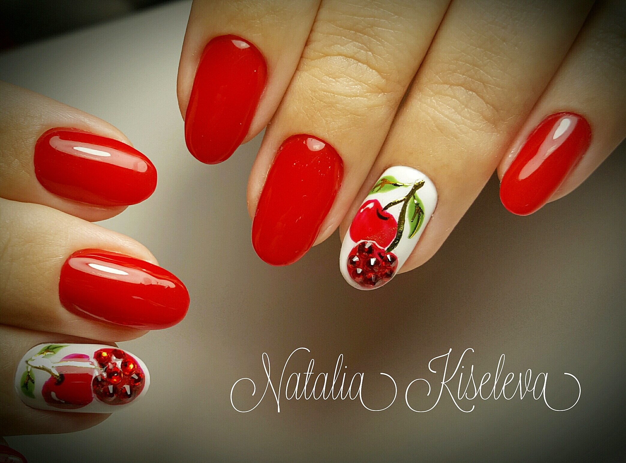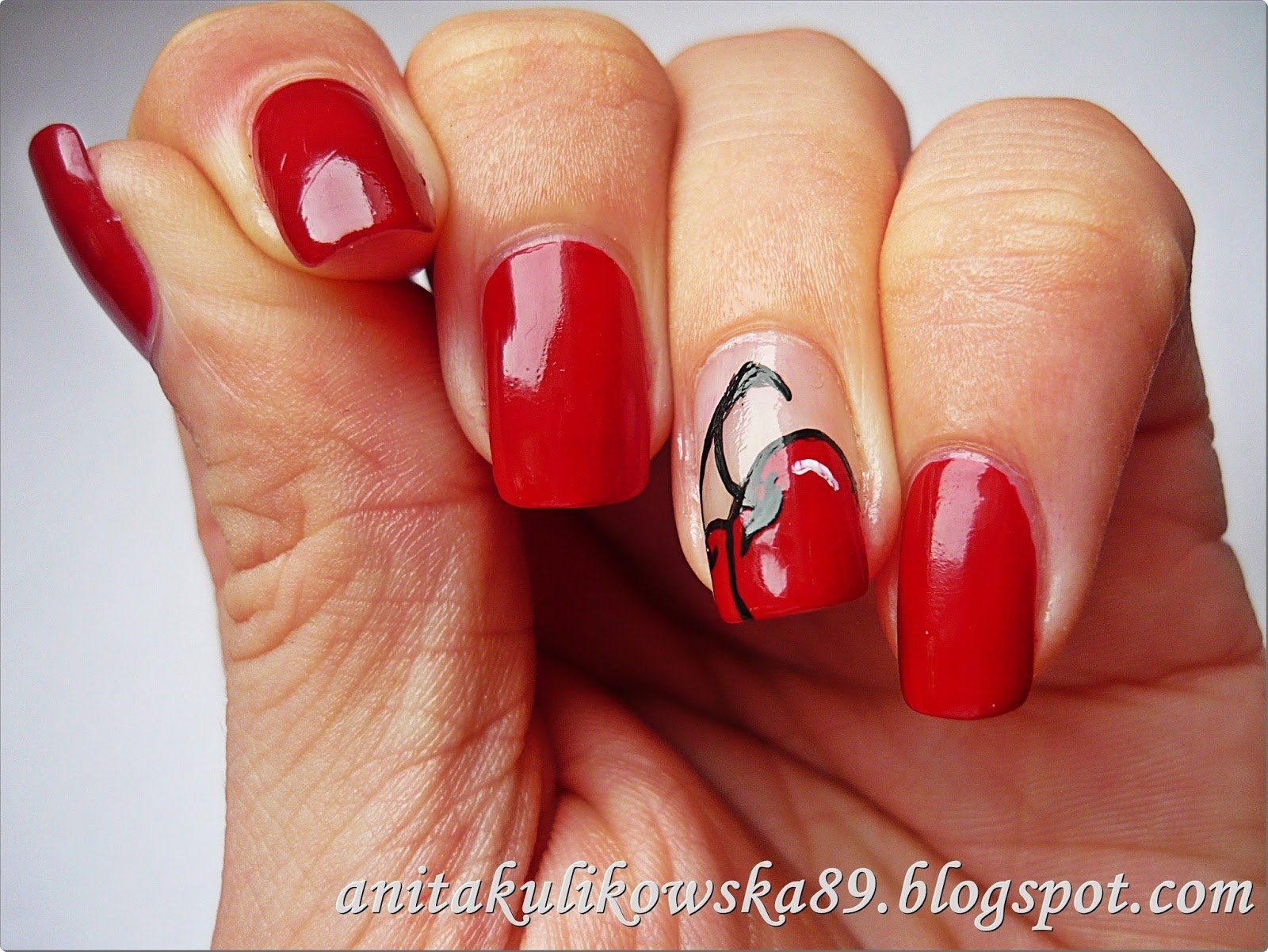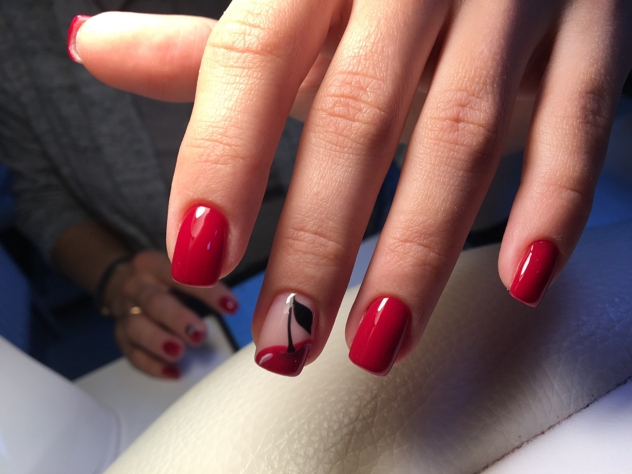 Красные ногти с вишенкой