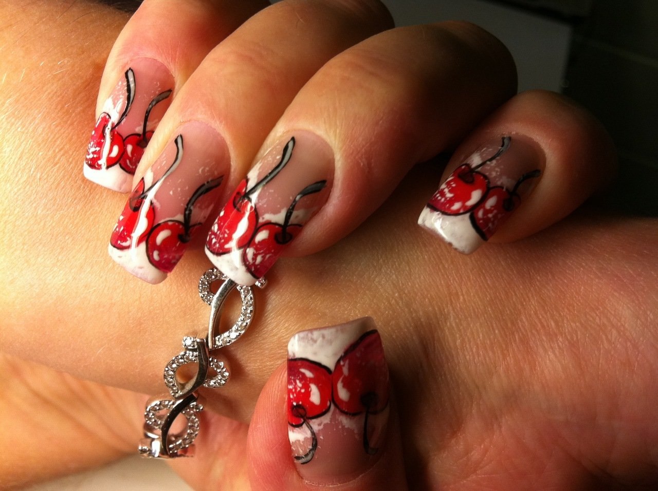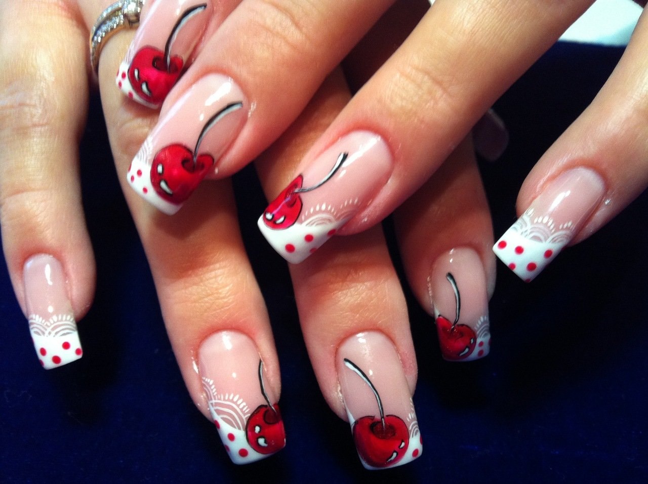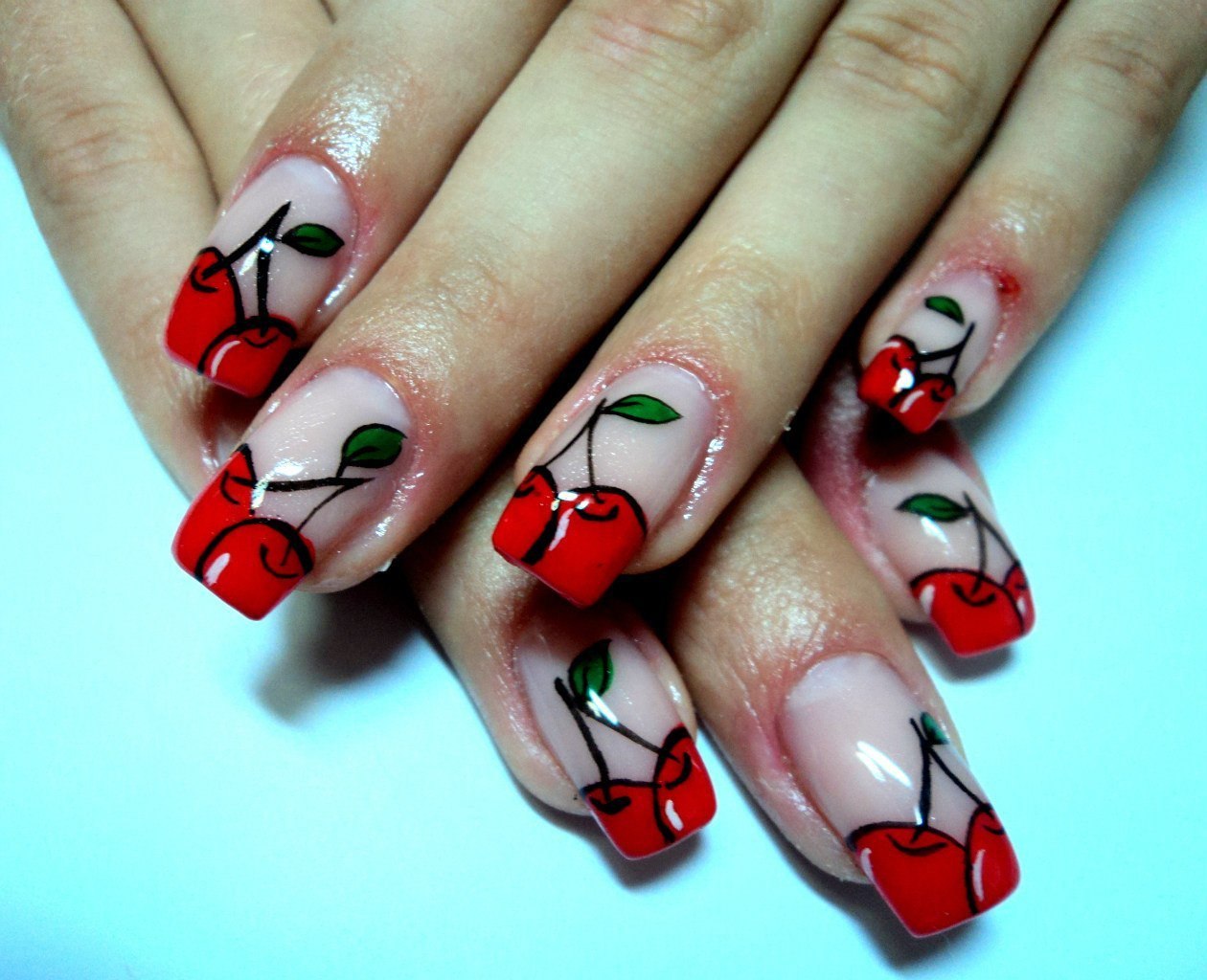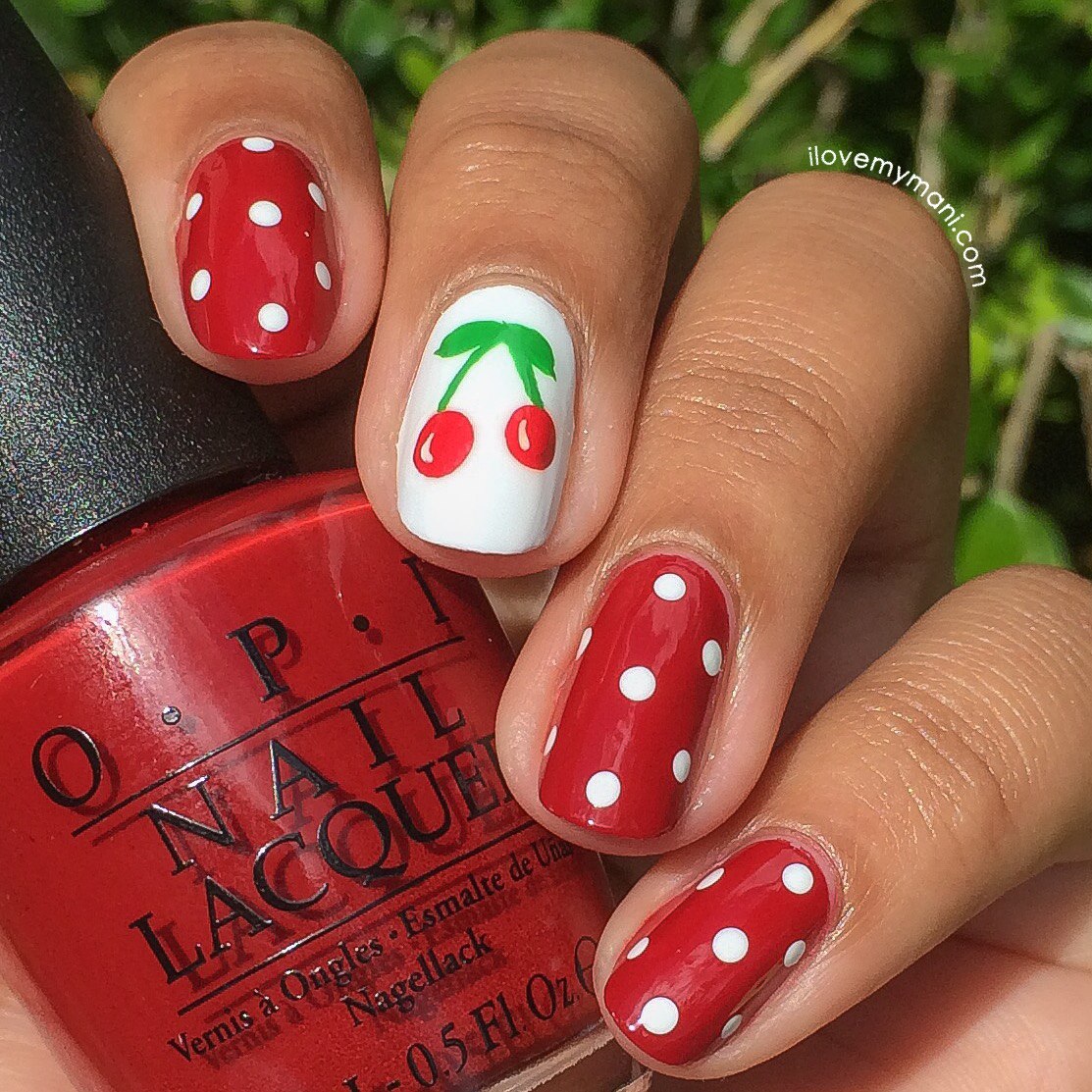 Маникюр с черешней на ногтях фото