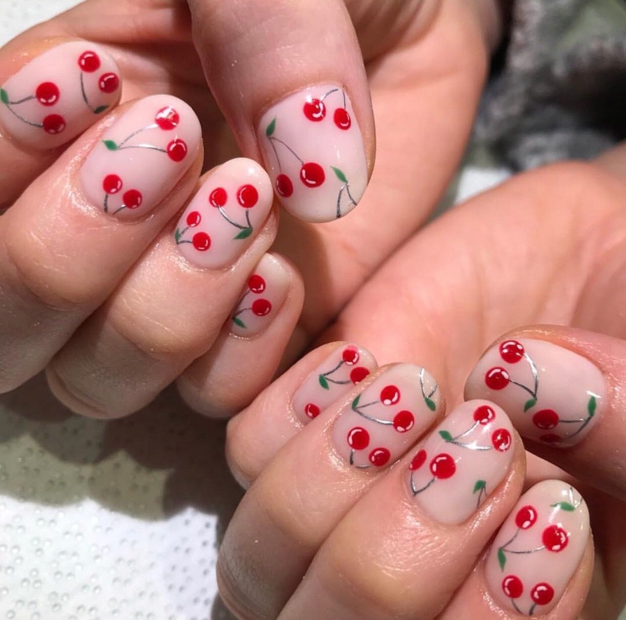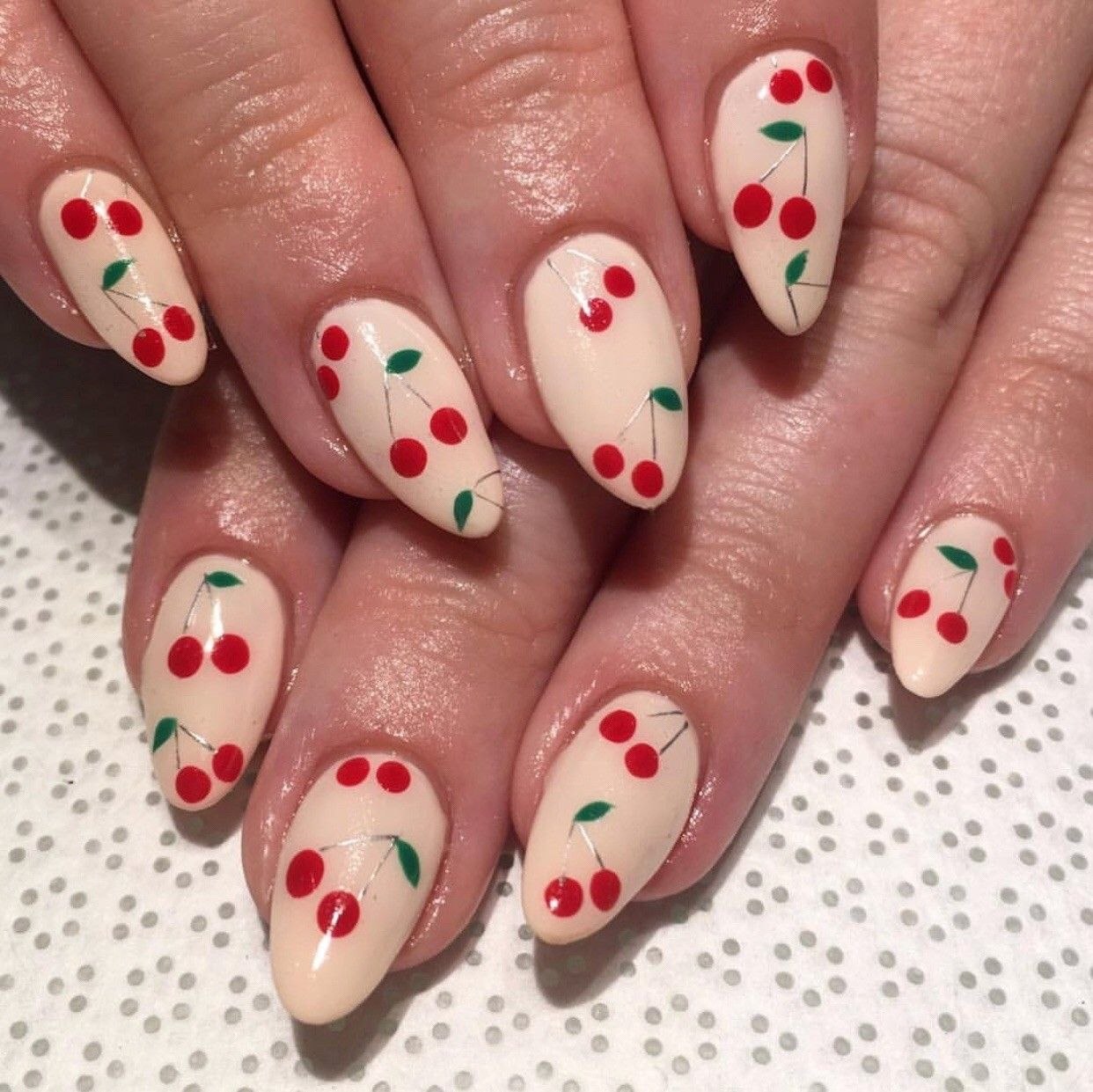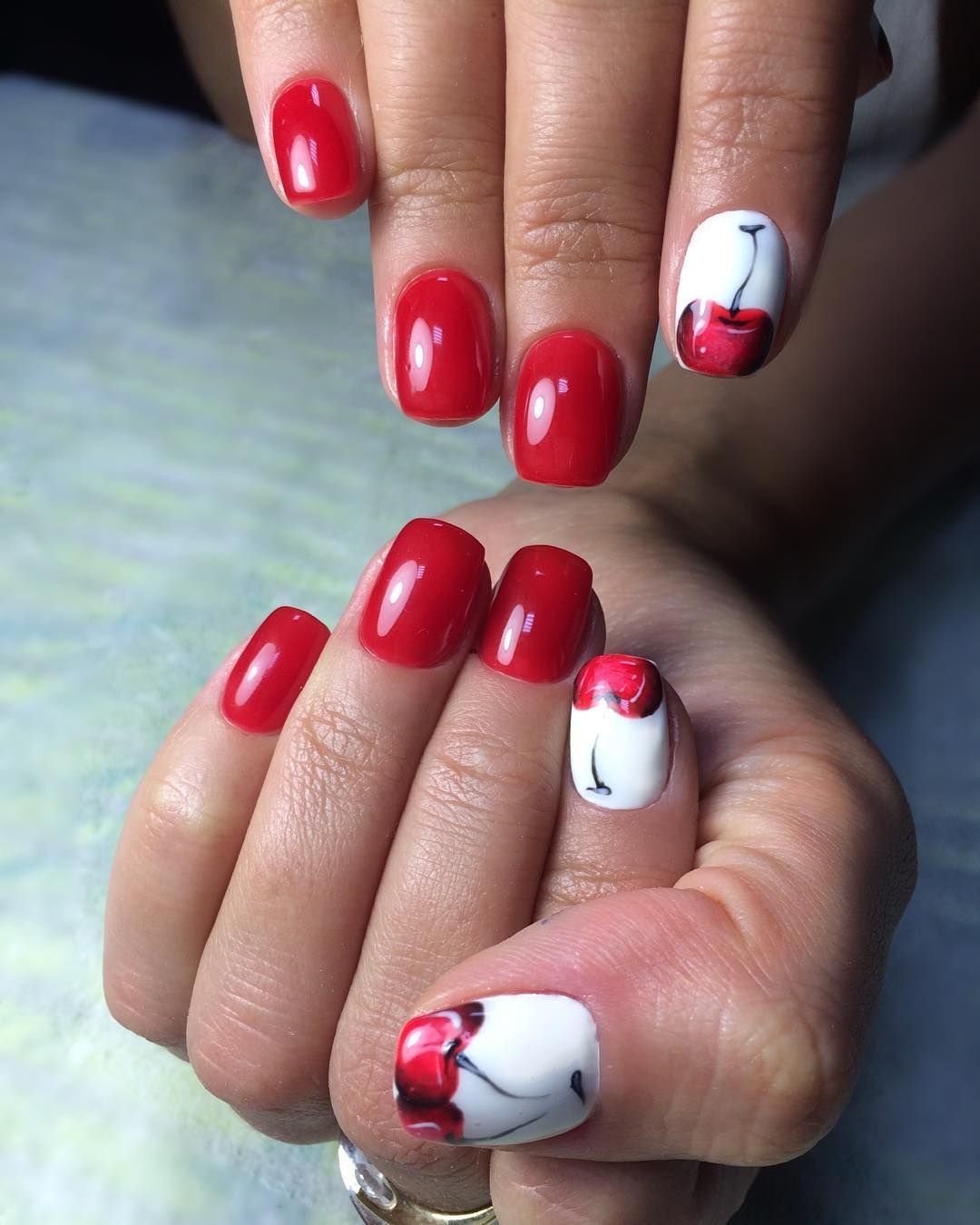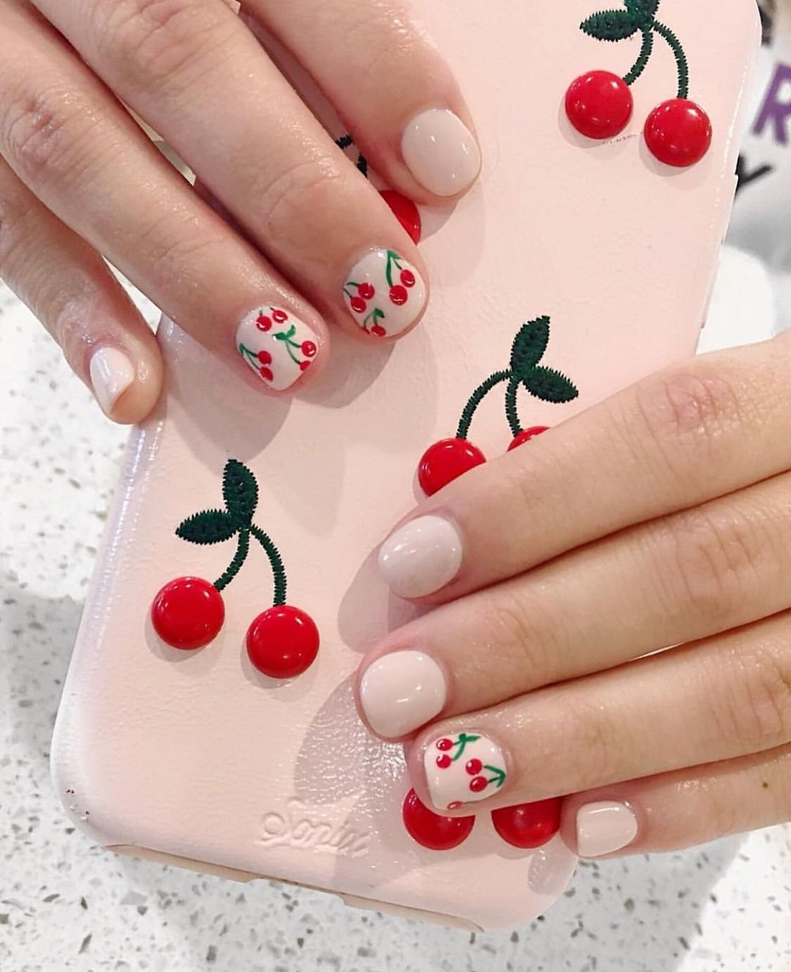 Маникюр с черешней на ногтях фото