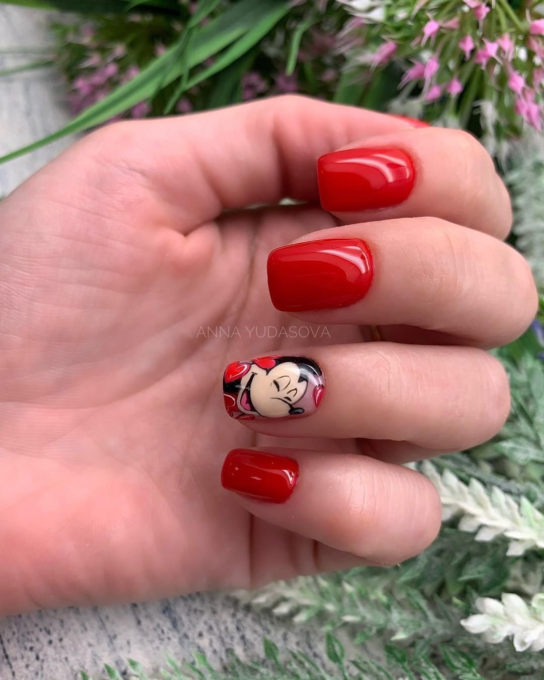 Корейский маникюр ногти красные
