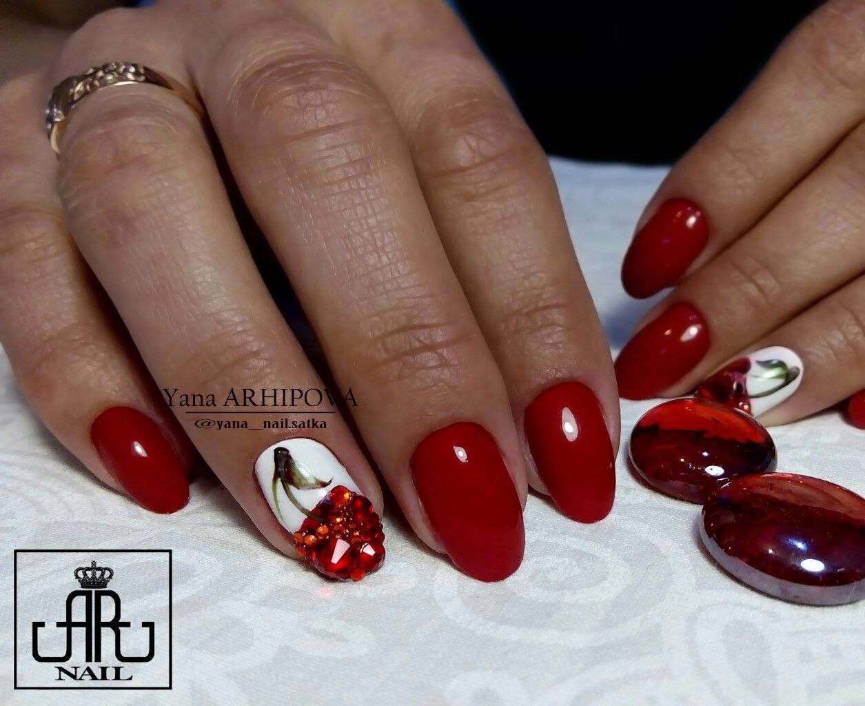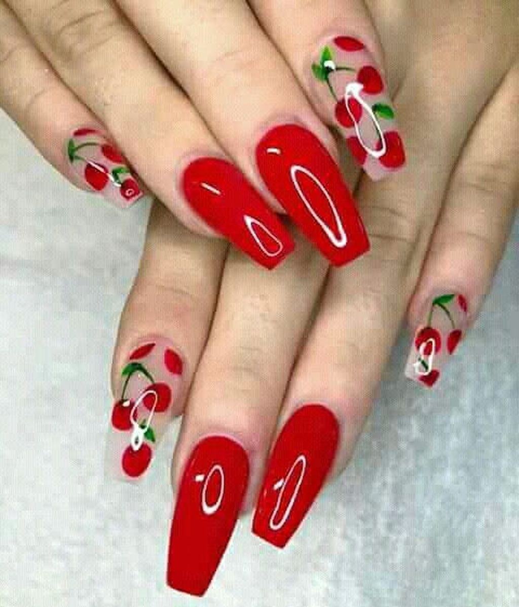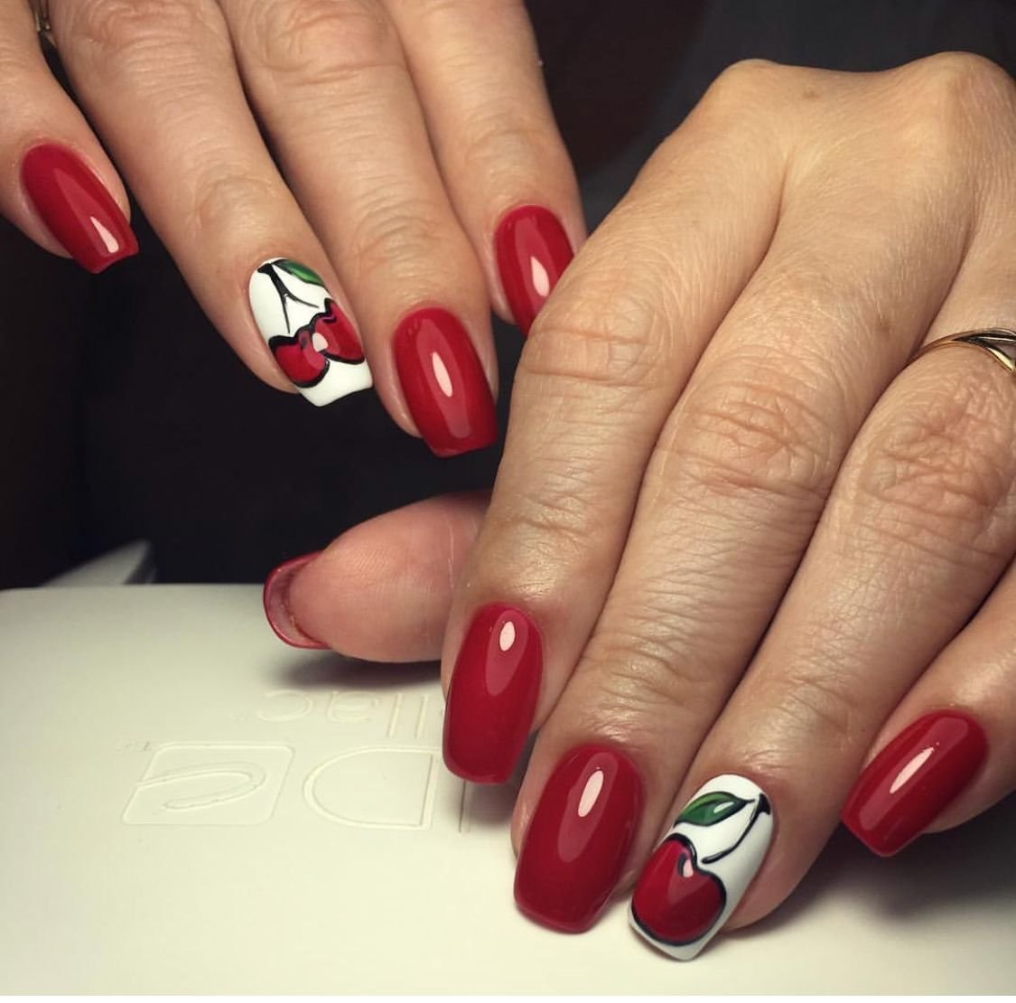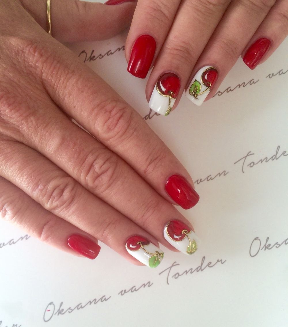Красный маникюр с вишенками (46 фото)