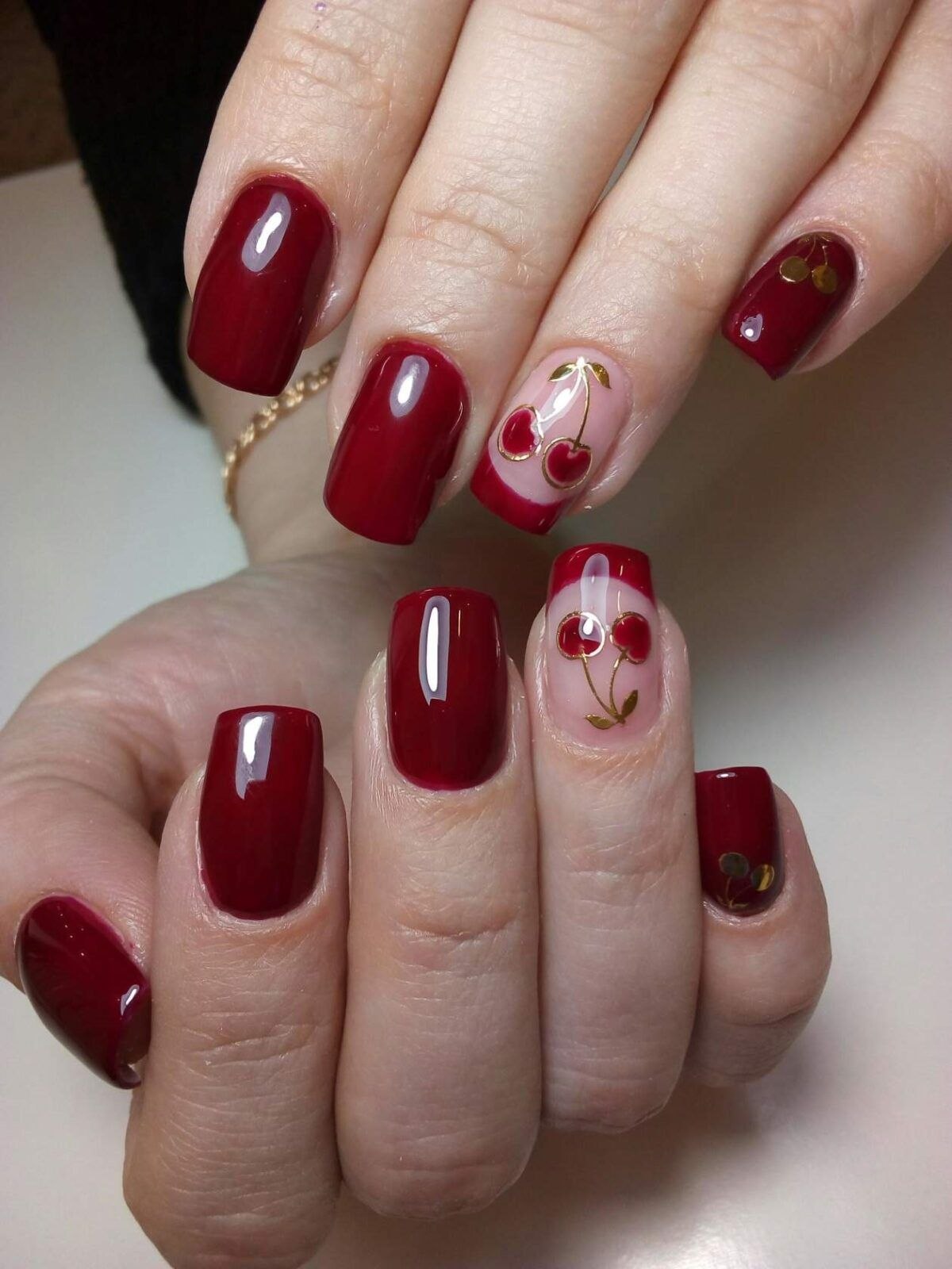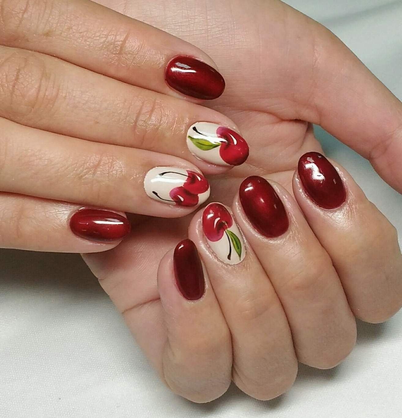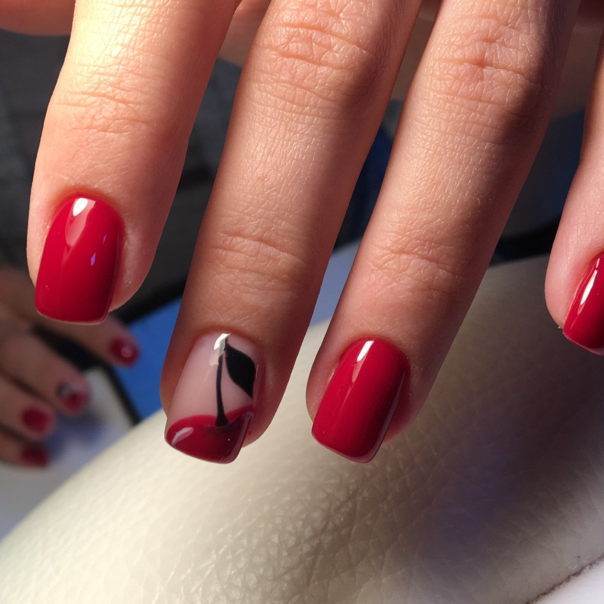 Красный маникюр с вишней