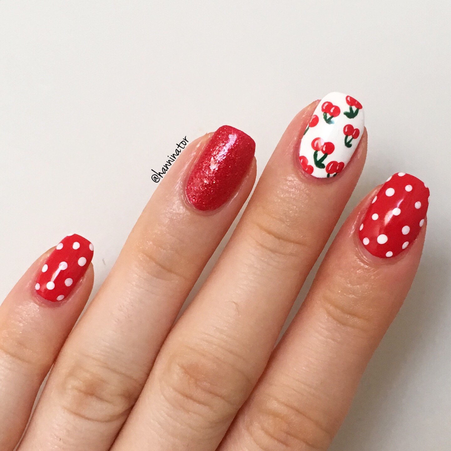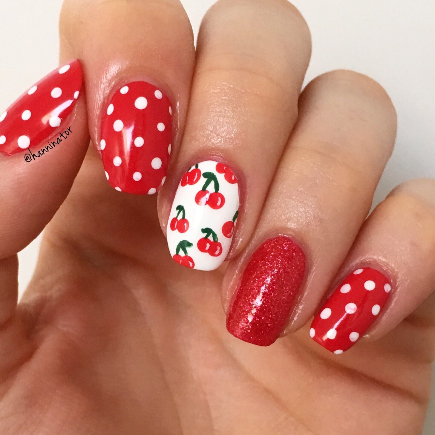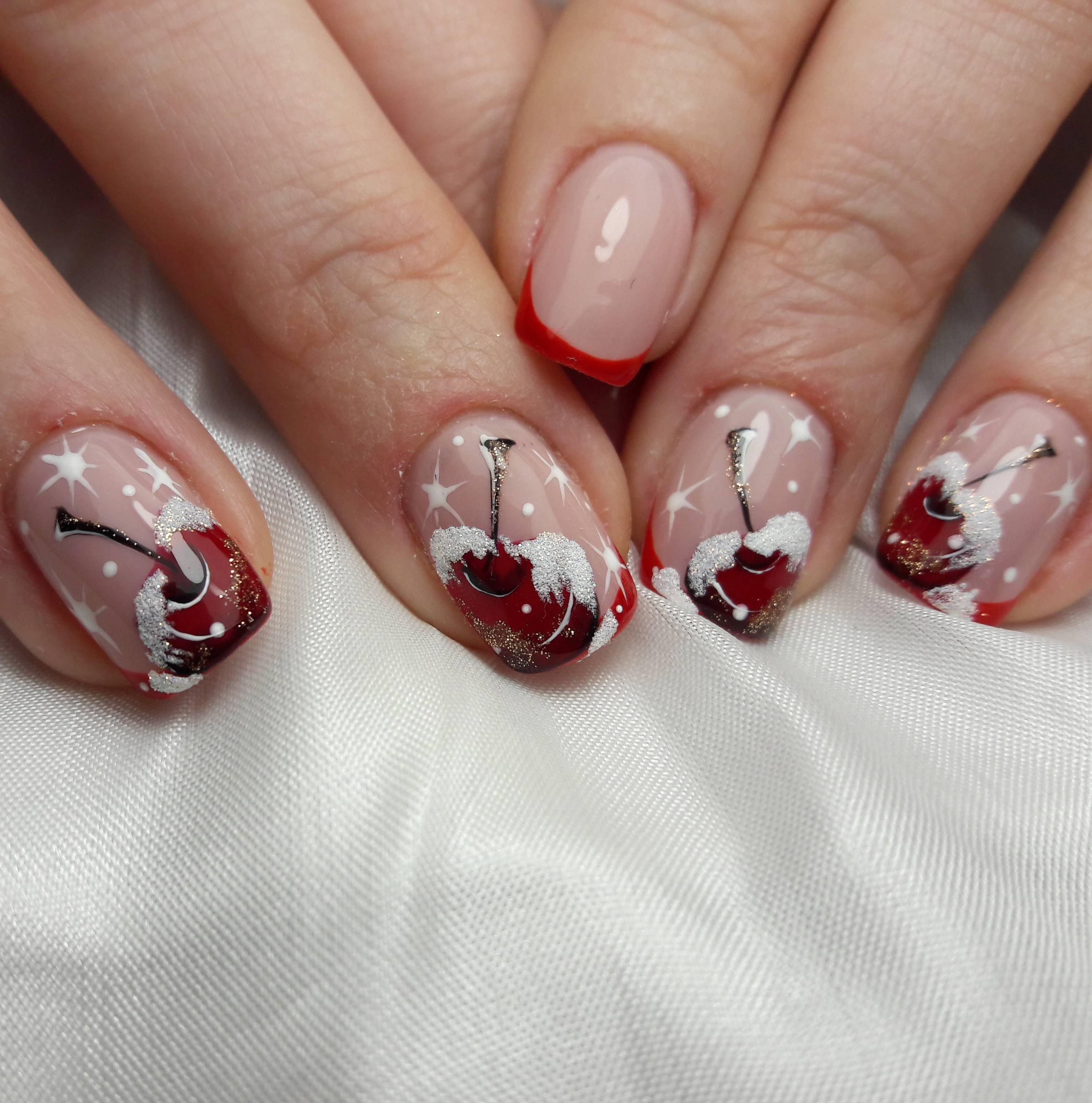 Красно белый маникюр с вишенкой