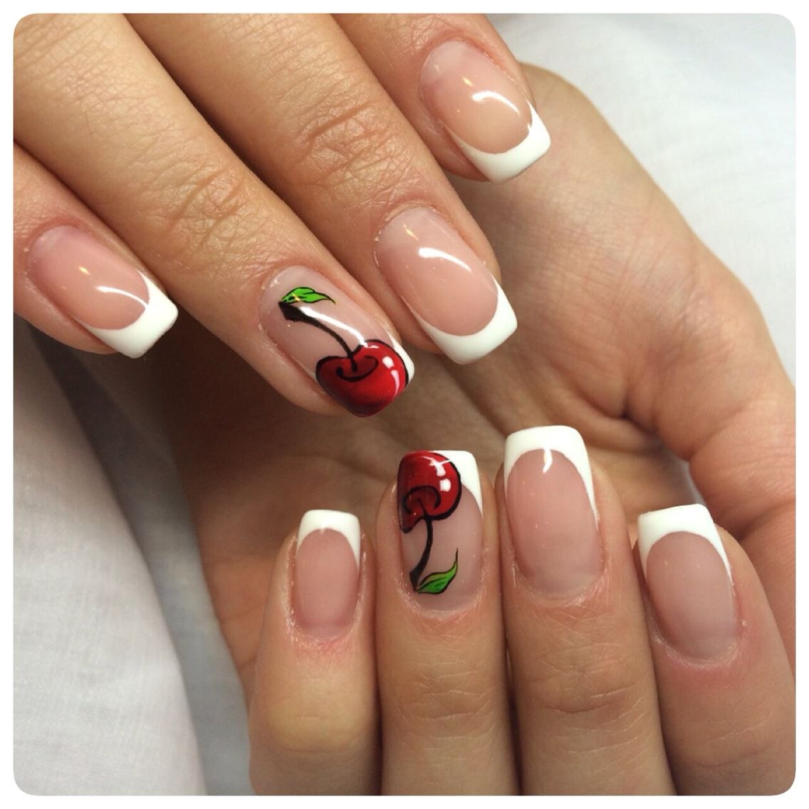 Французский маникюр с вишенкой