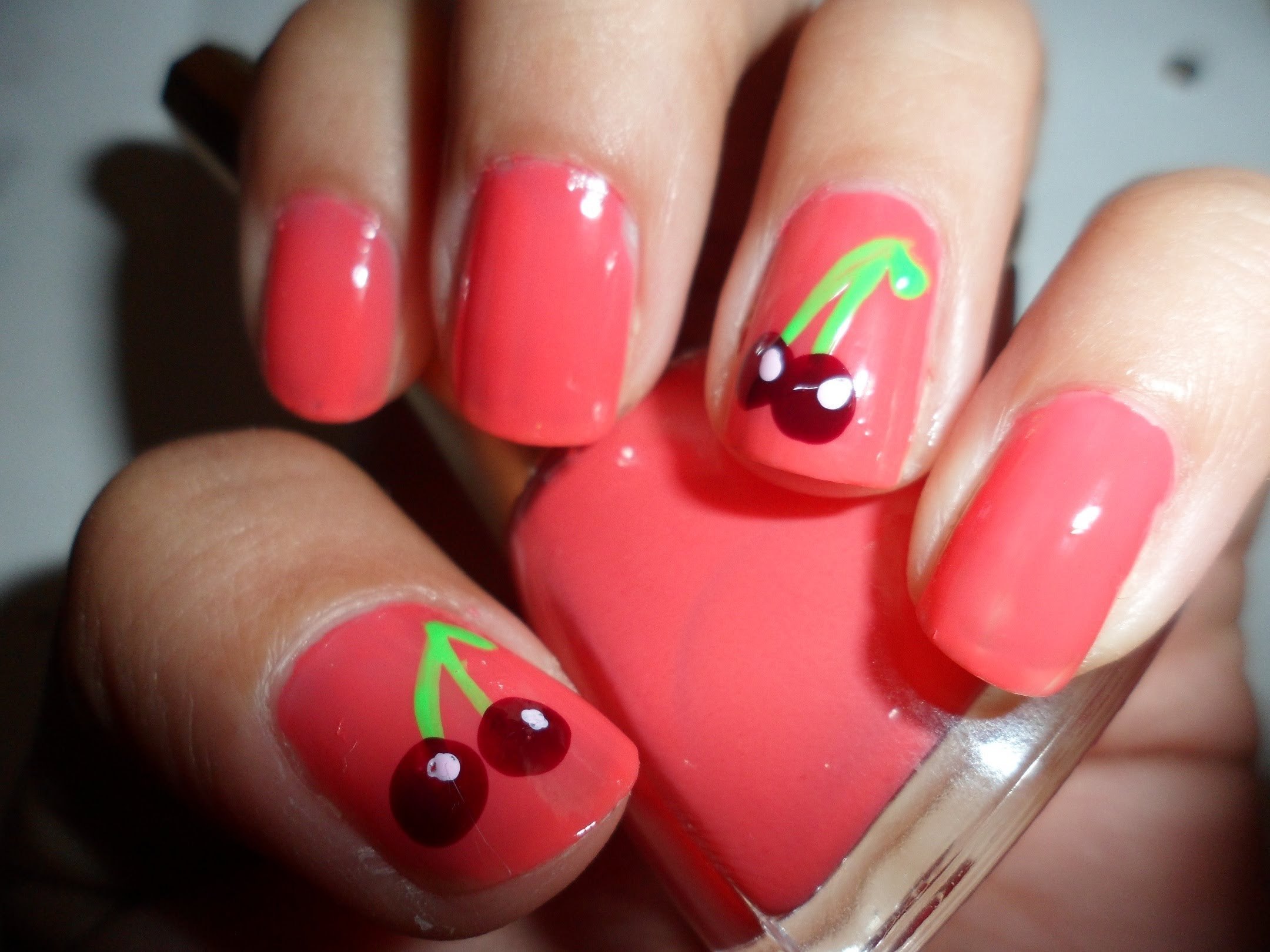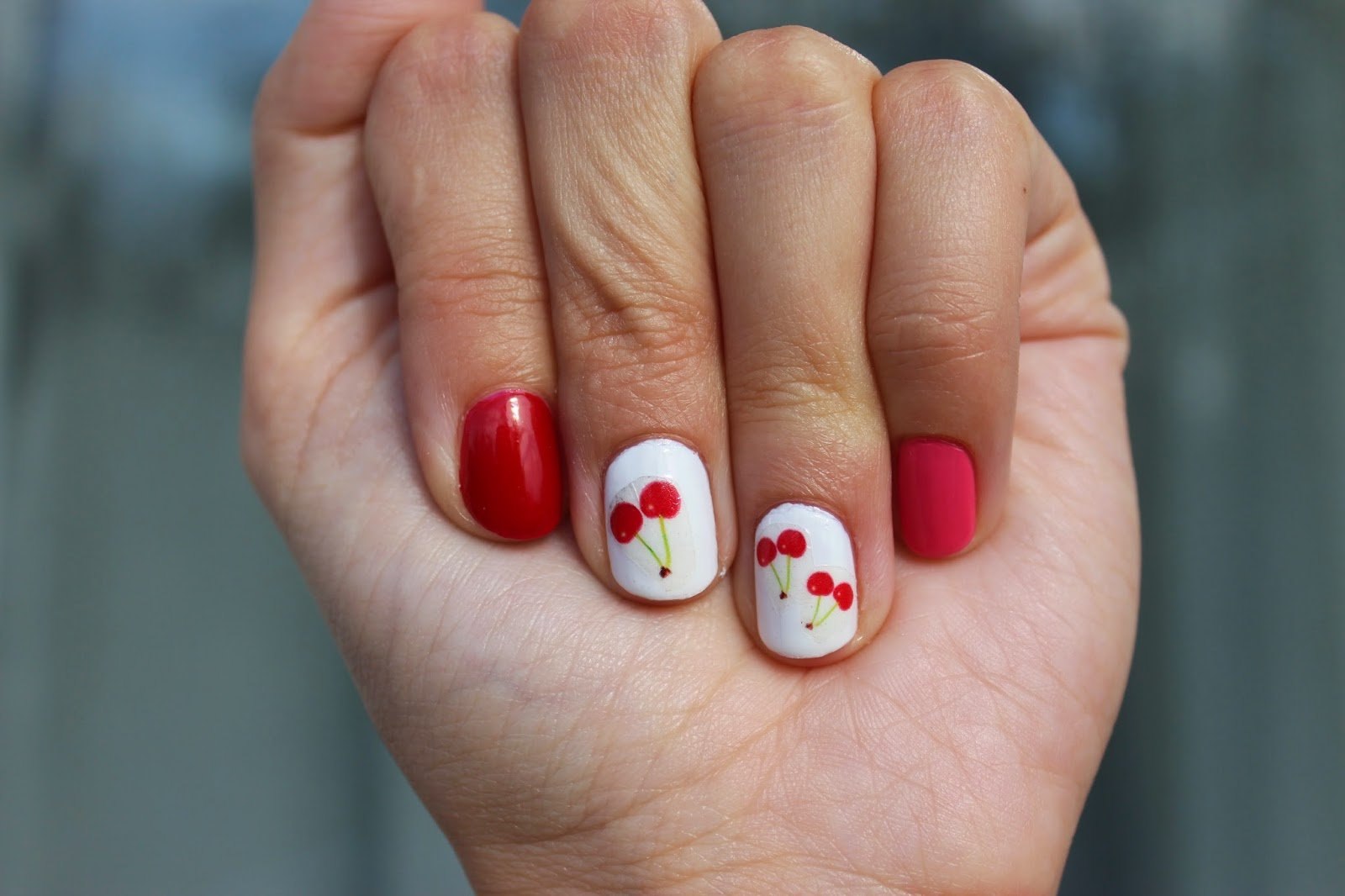Яркий летний маникюр с вишней