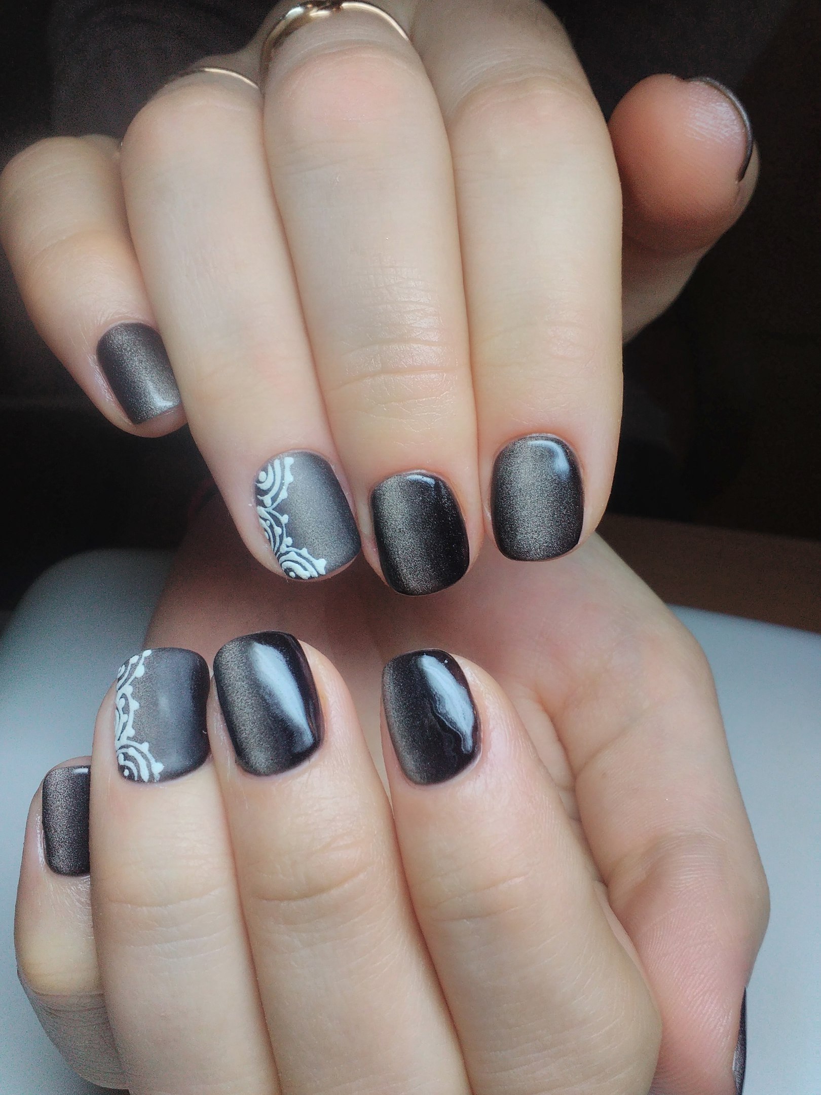 Маникюр серый кошачий глаз комбинированный