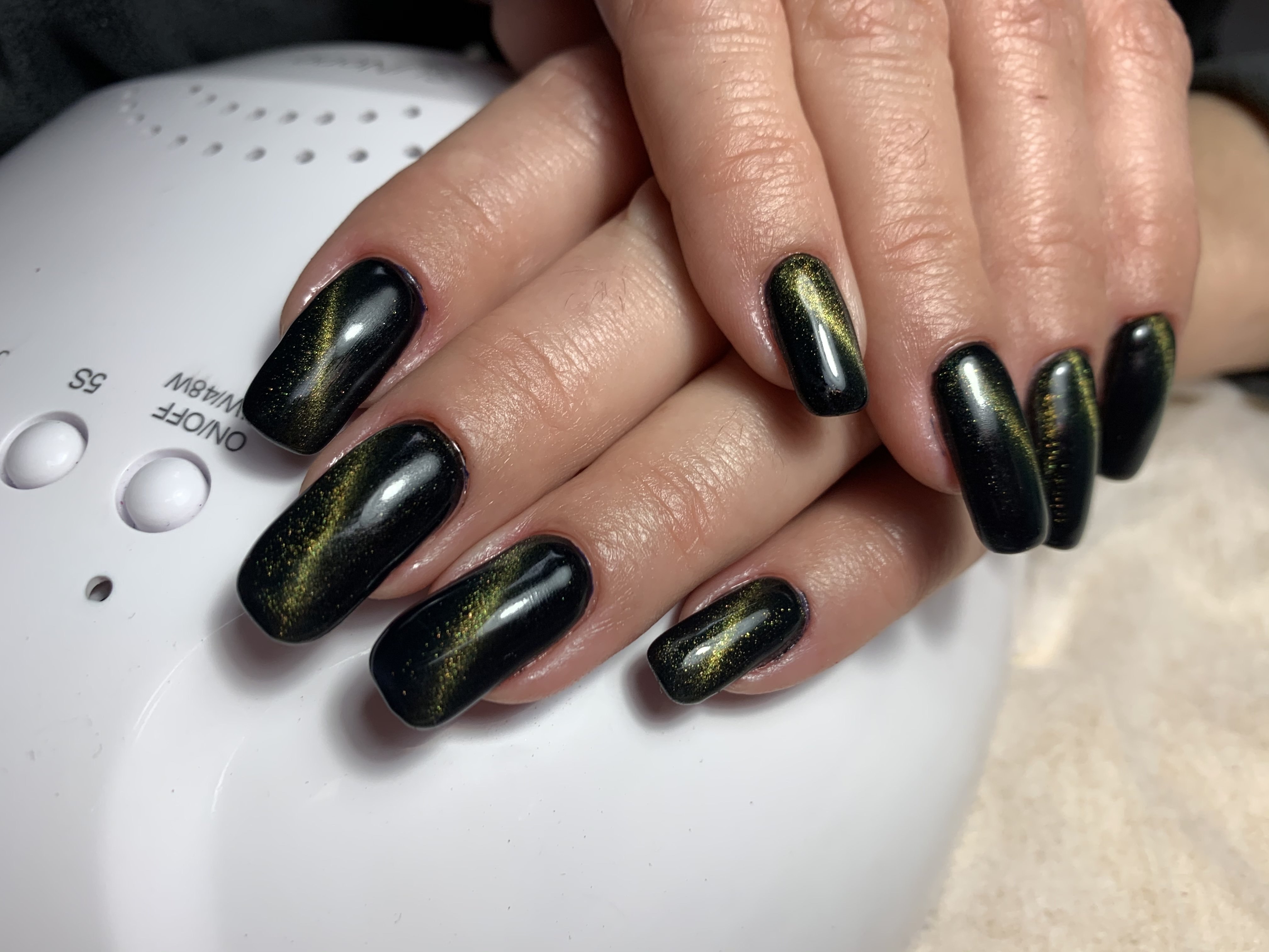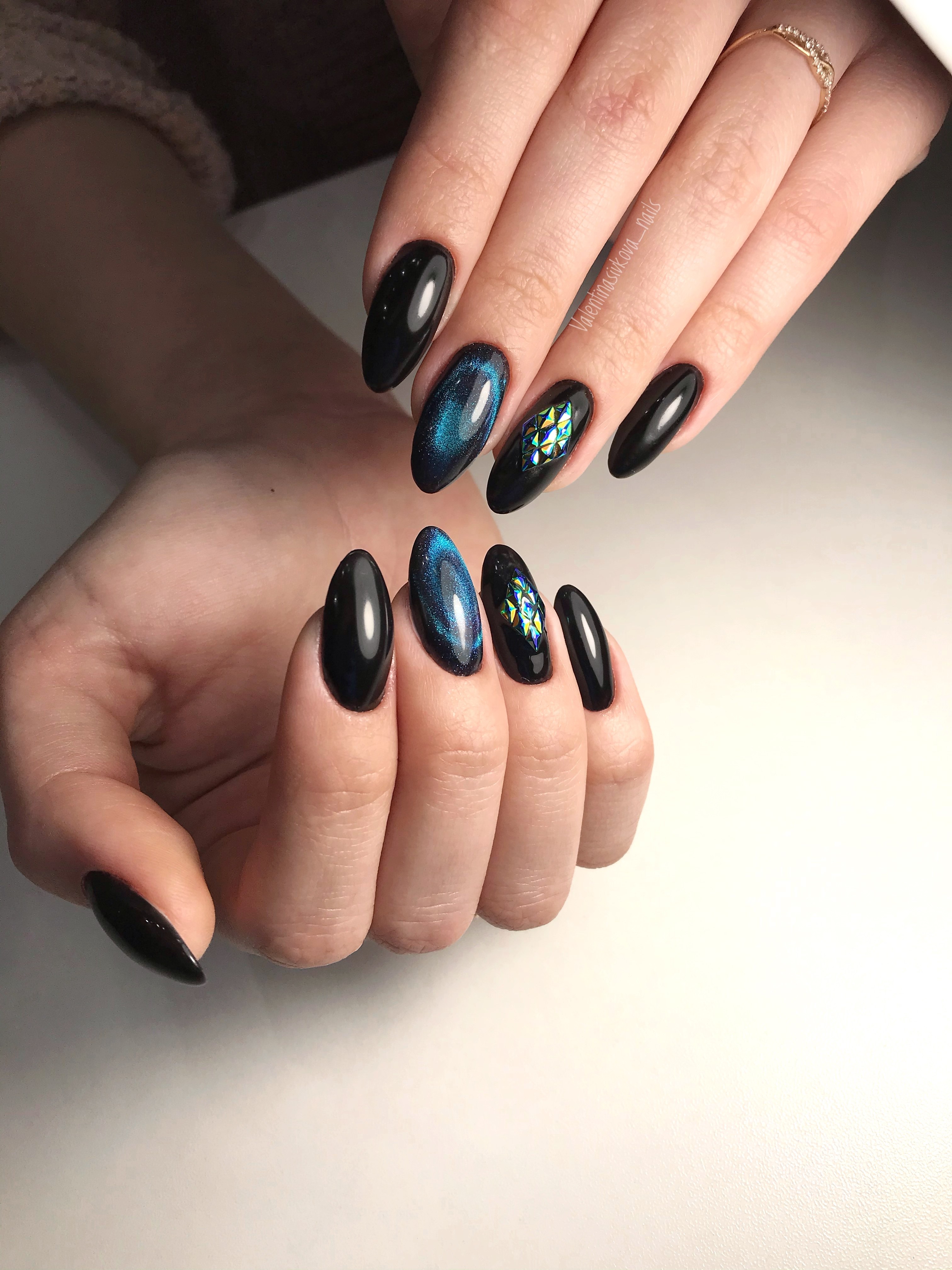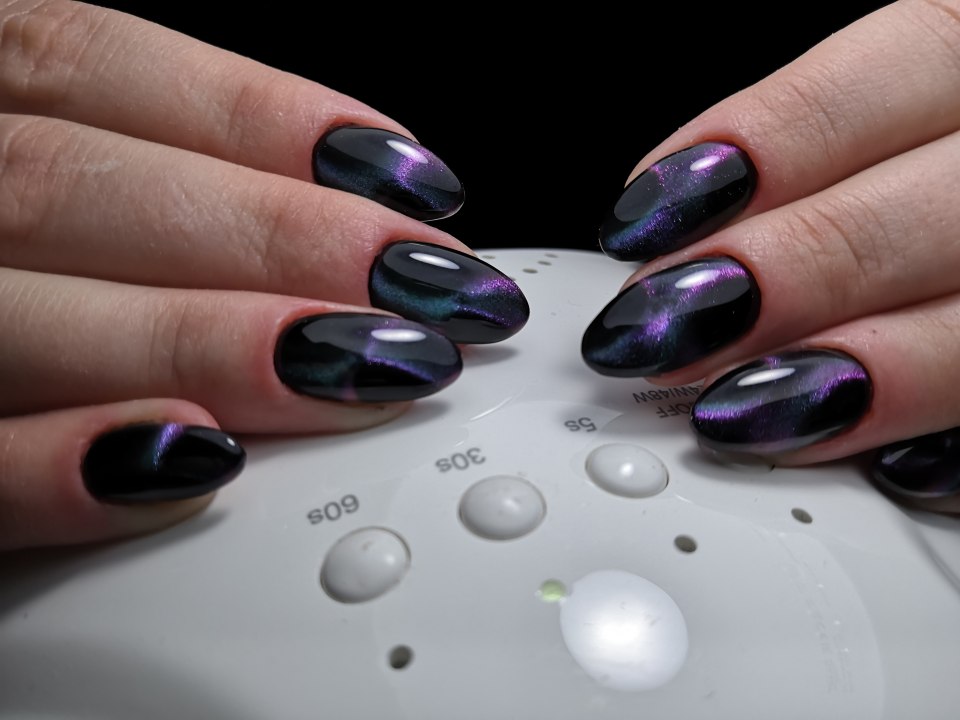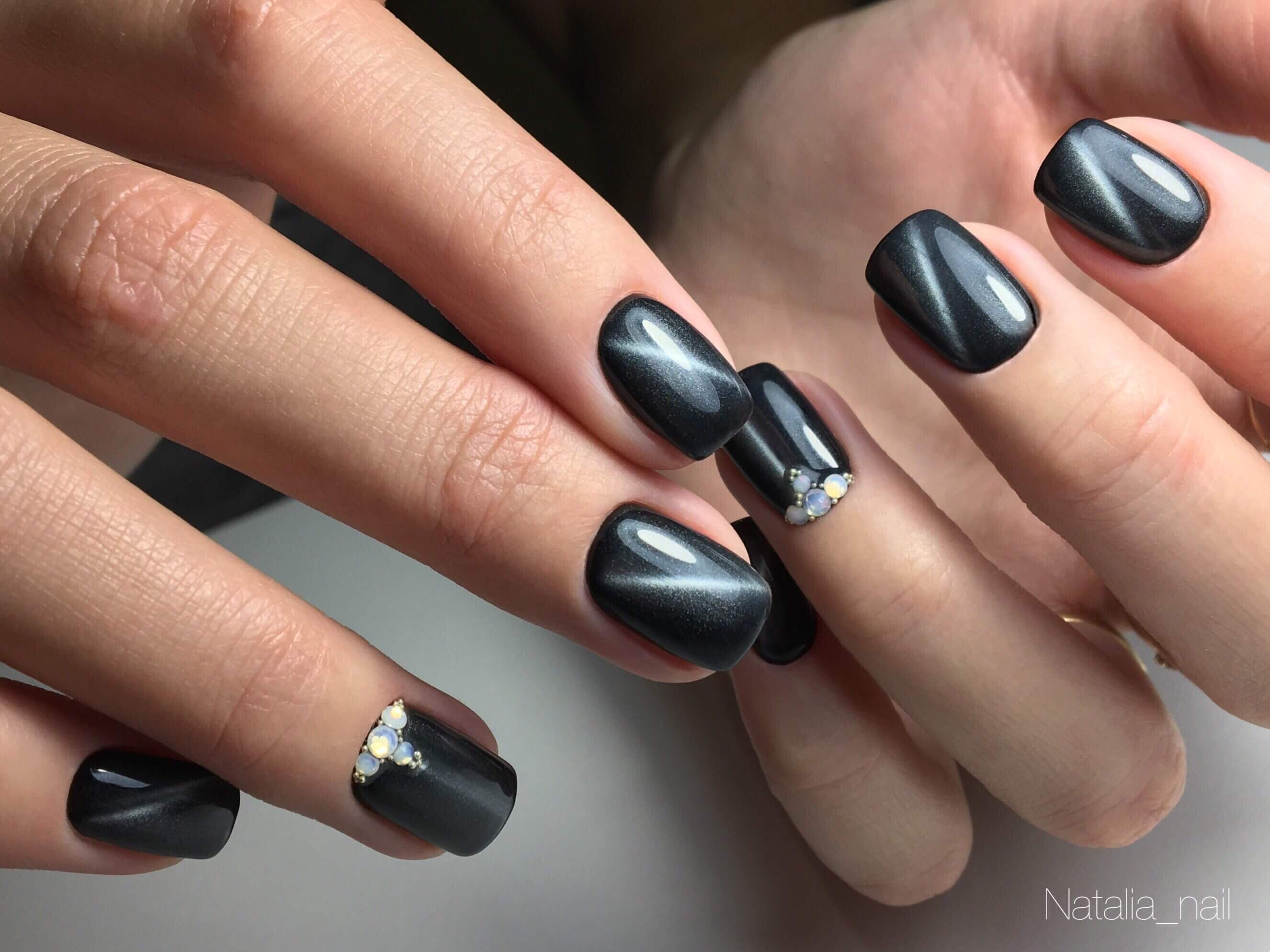 Маникюр черный кошачий глаз