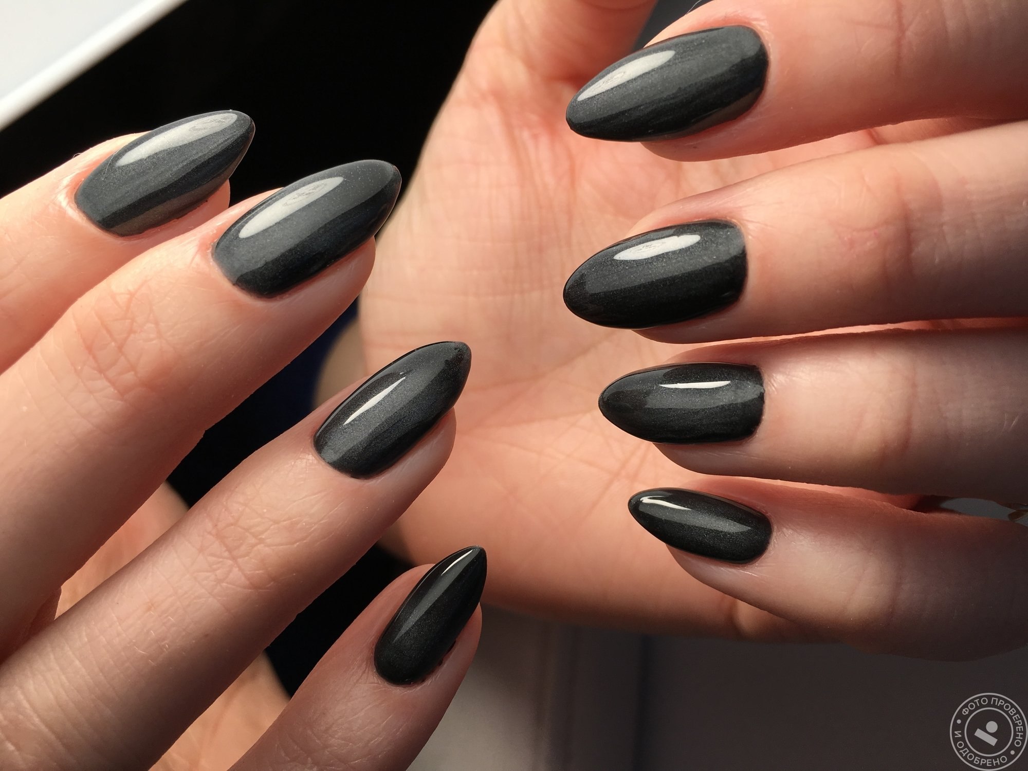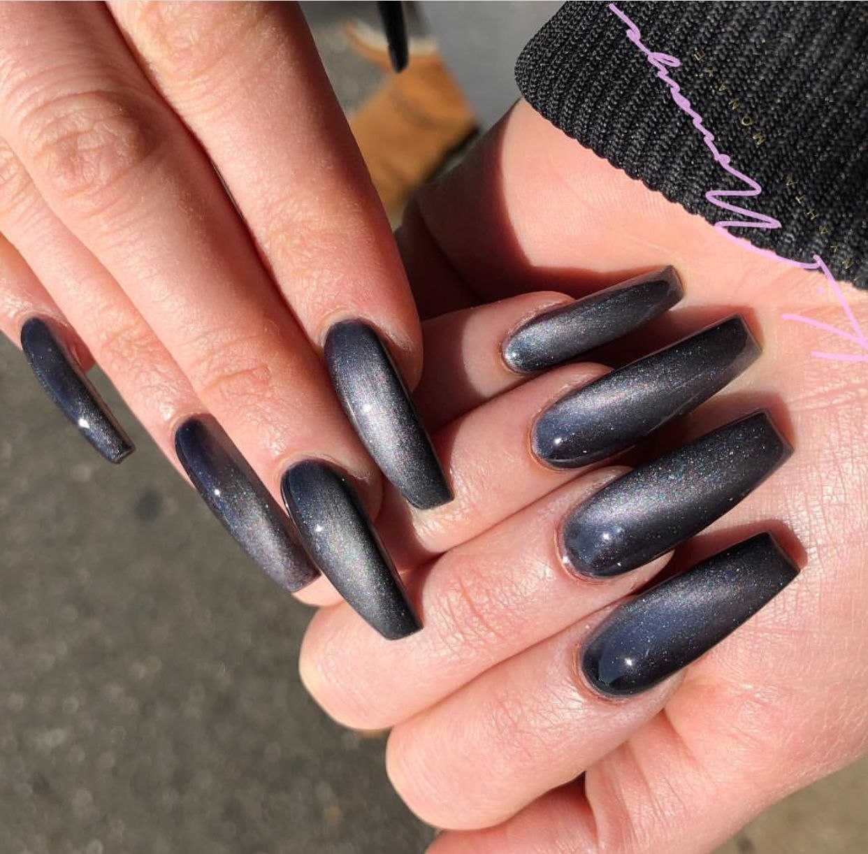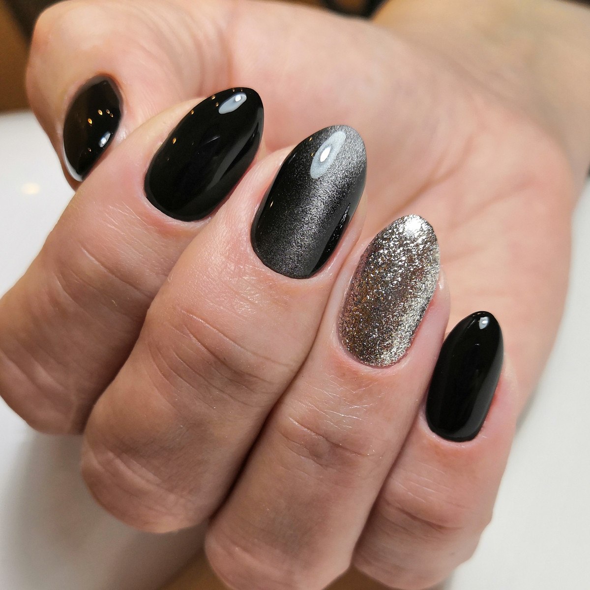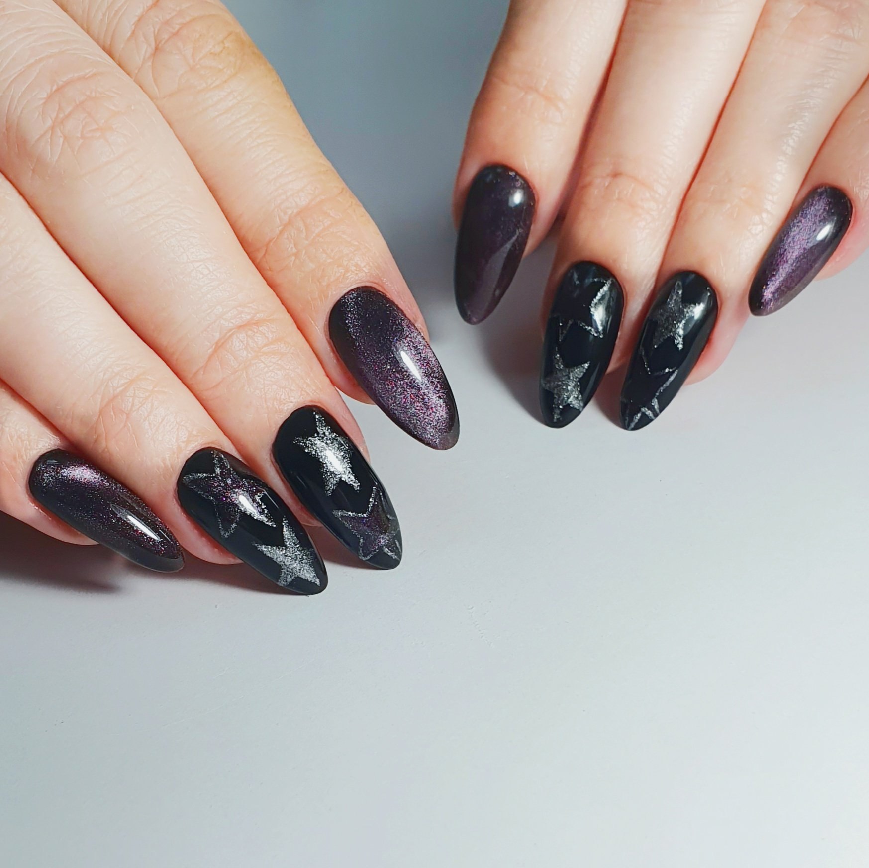Маникюр черный кошачий глаз