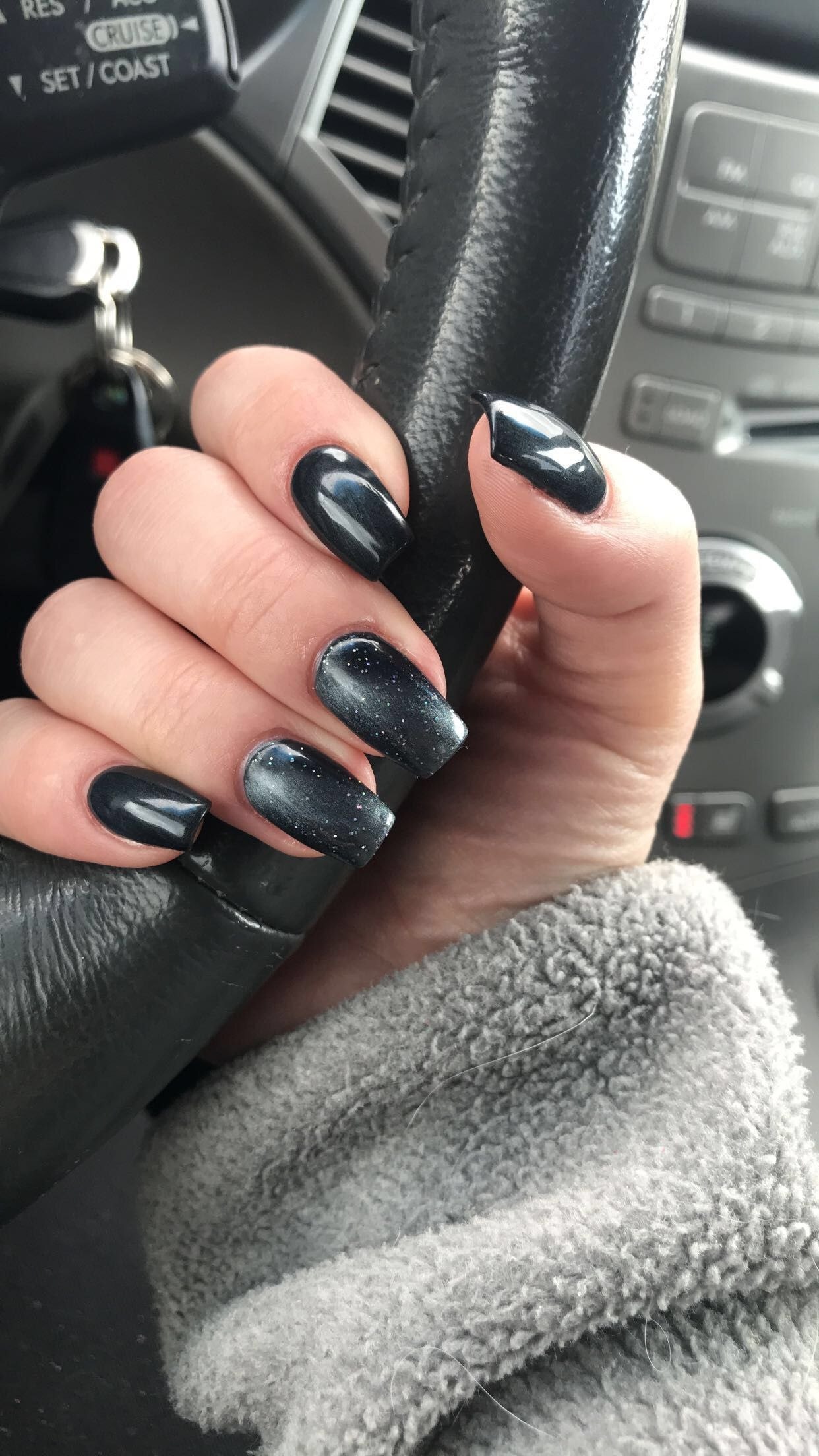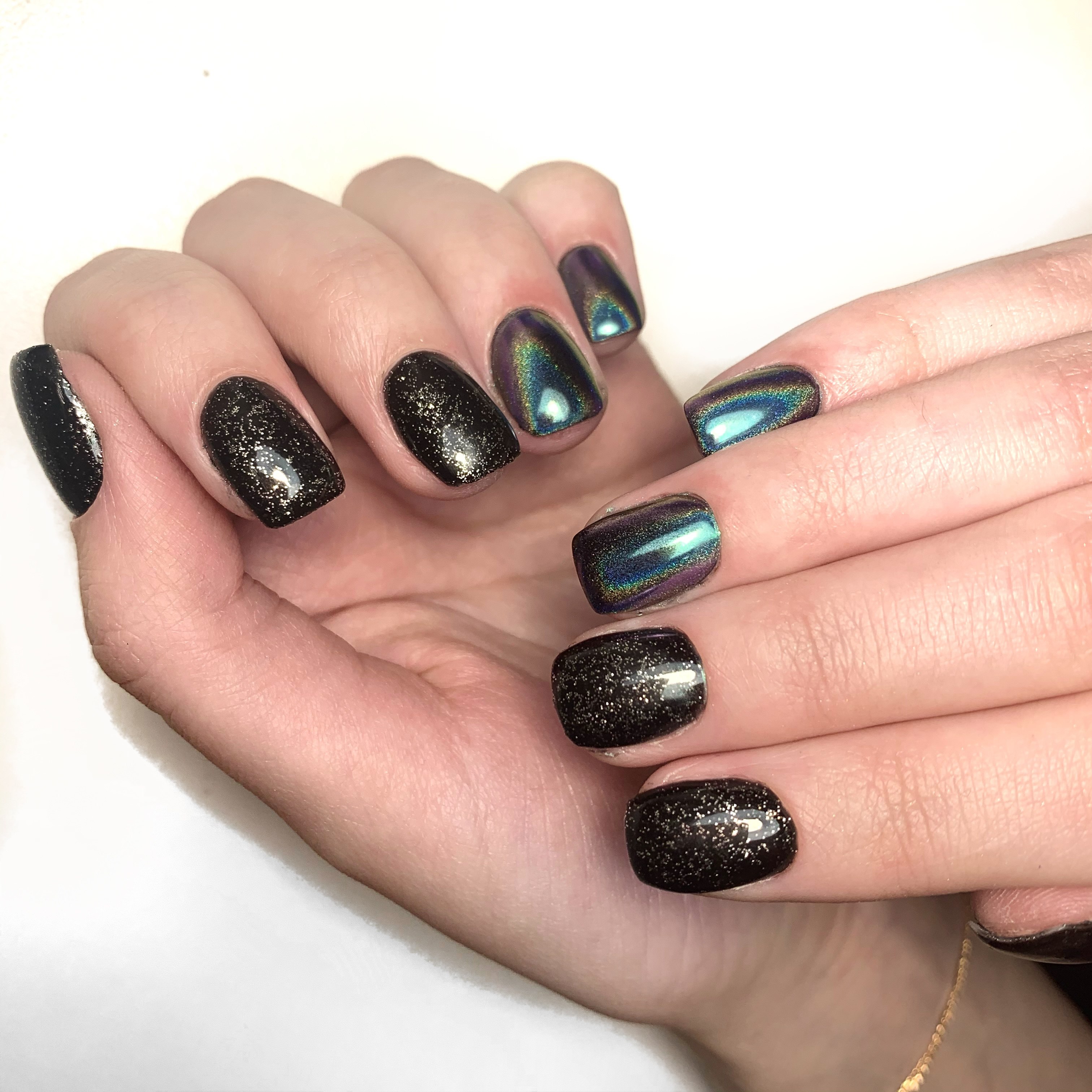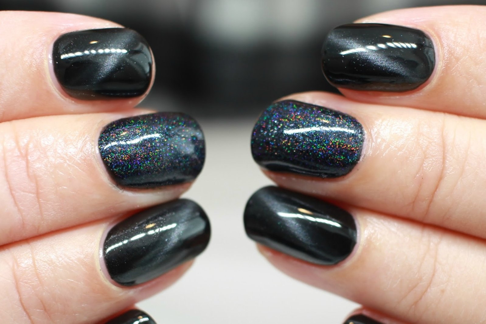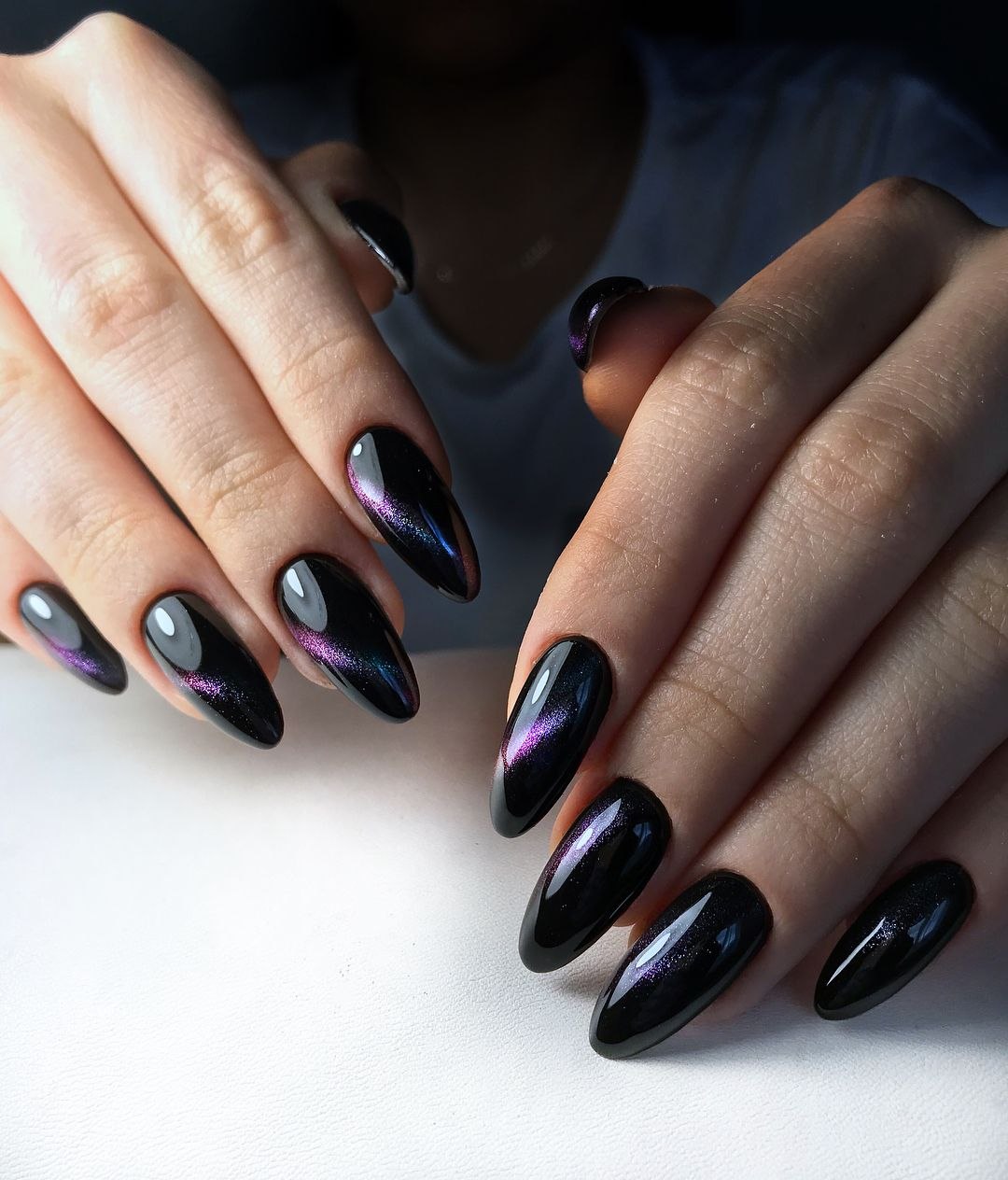 Маникюр черный кошачий глаз