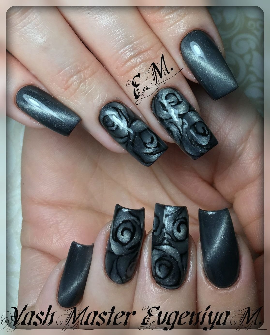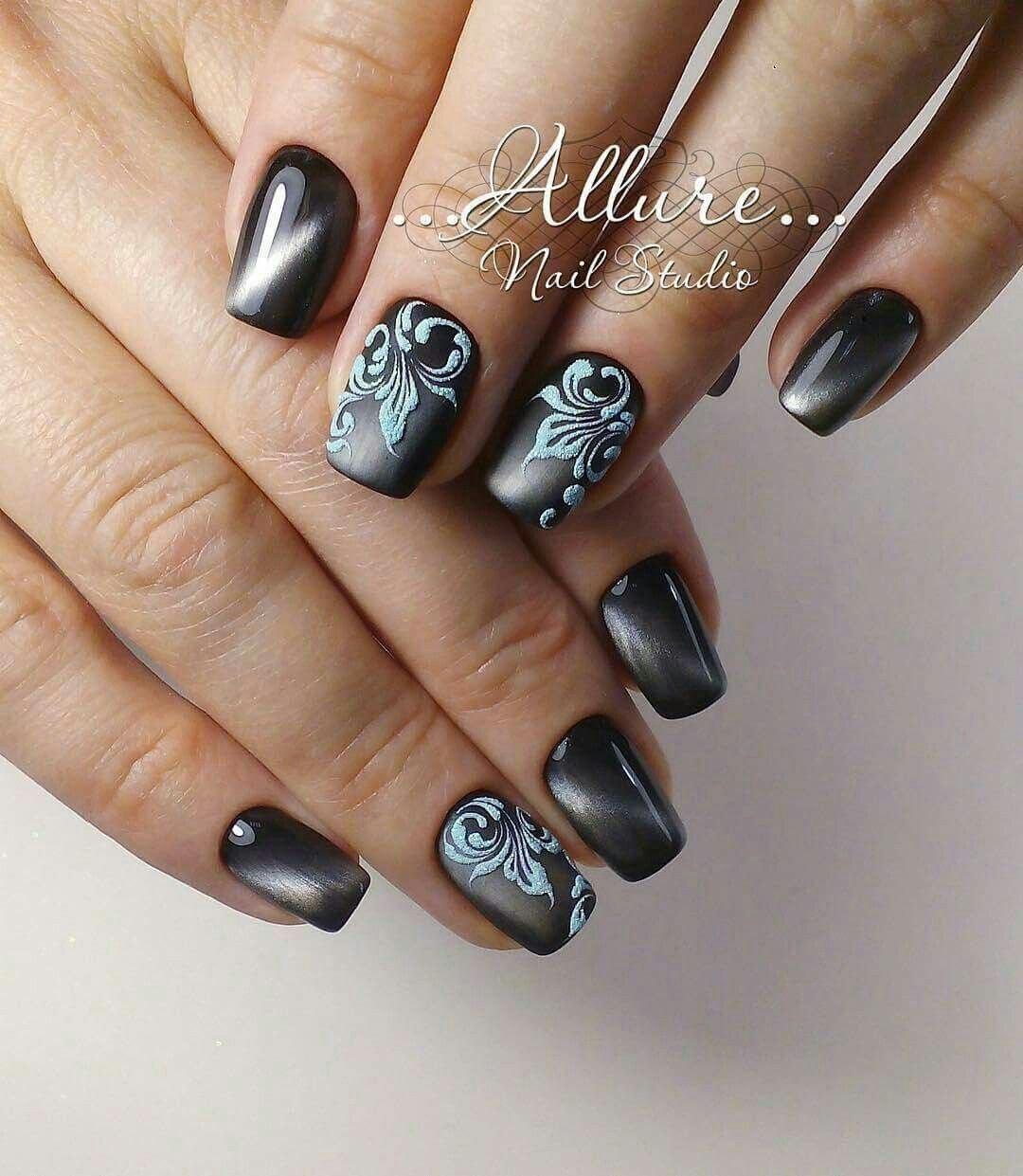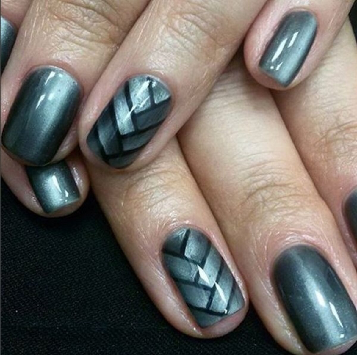 Кошачий глаз маникюр черный с серым (52 фото)