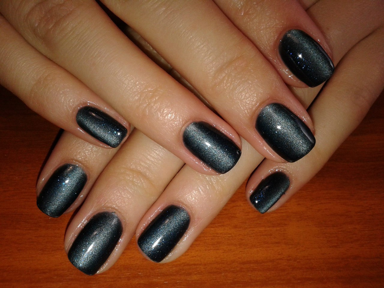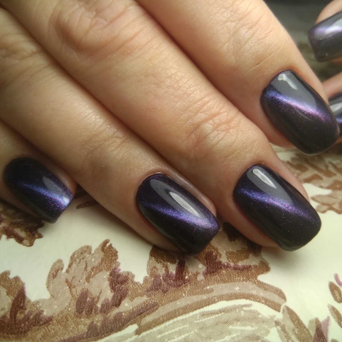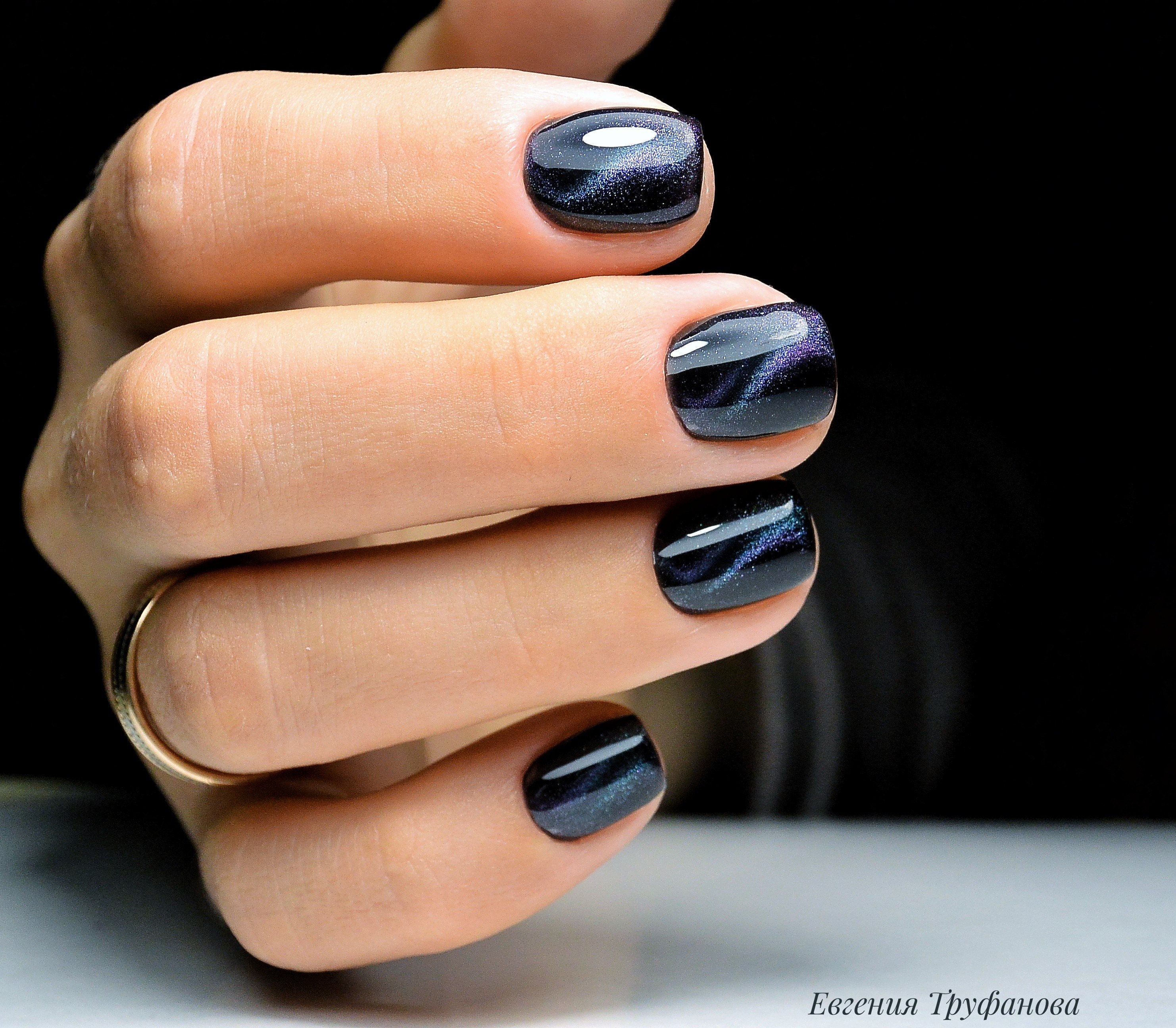 Маникюр кошачий глаз темный