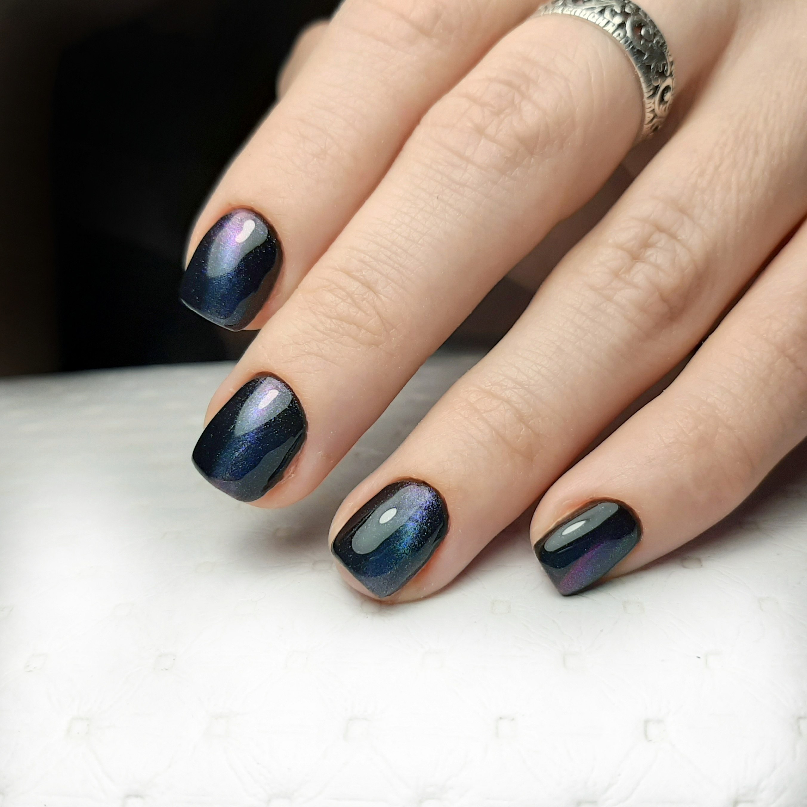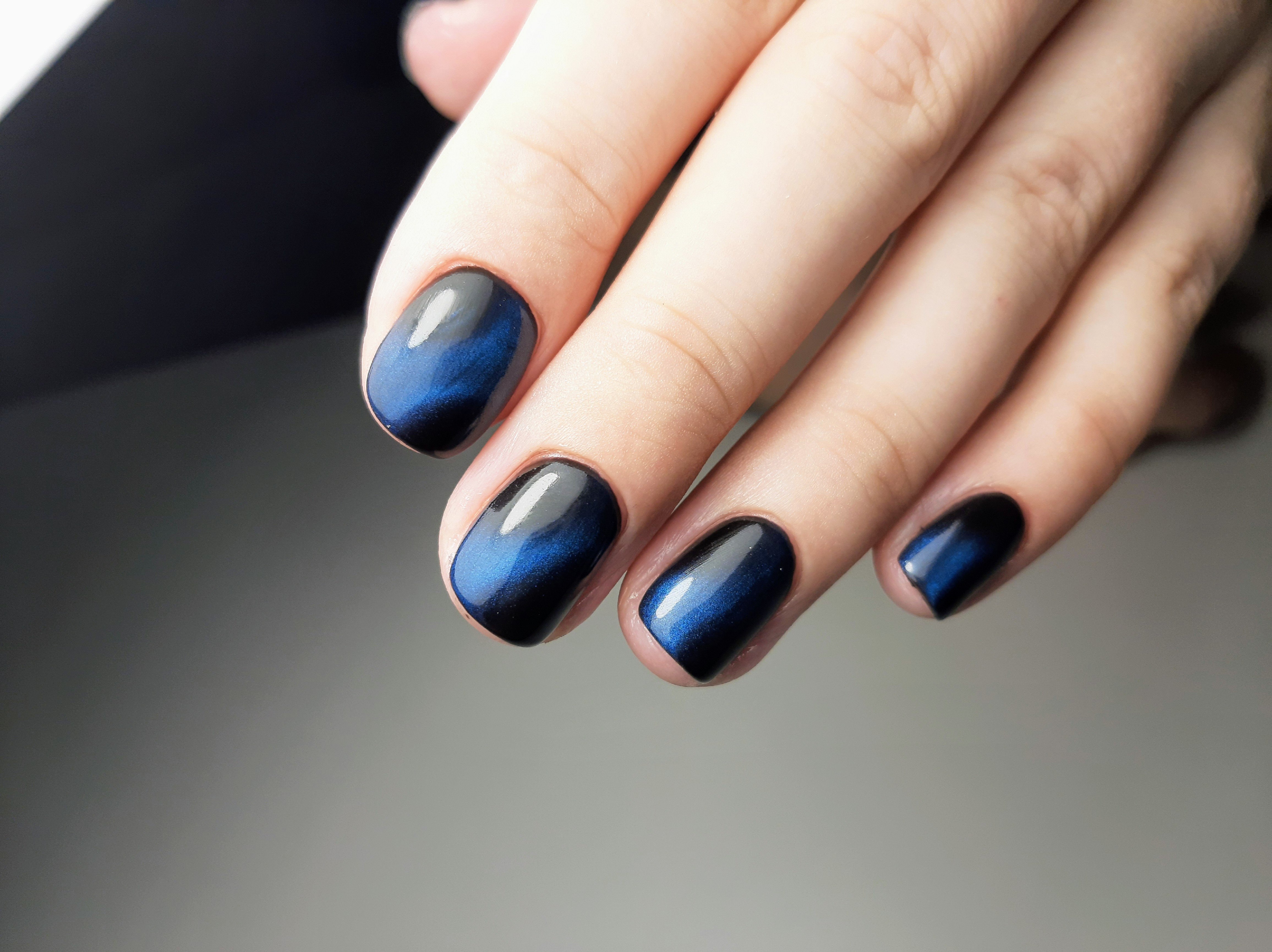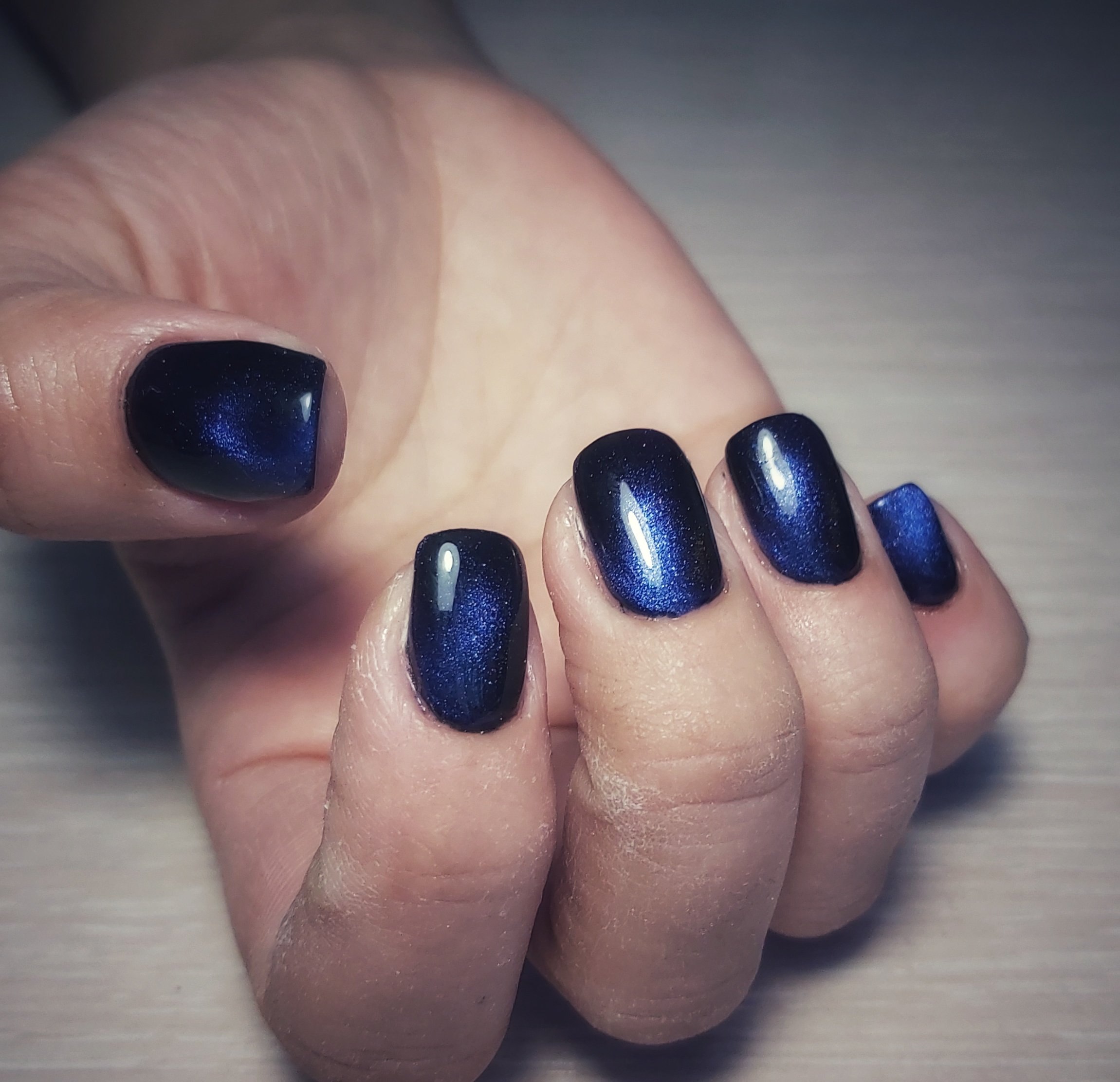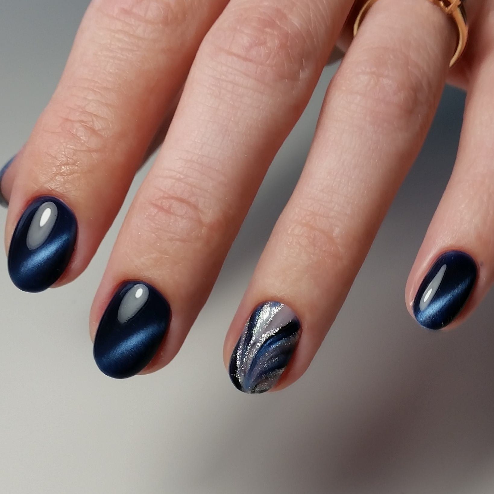 Темно-синий кошачий глаз маникюр