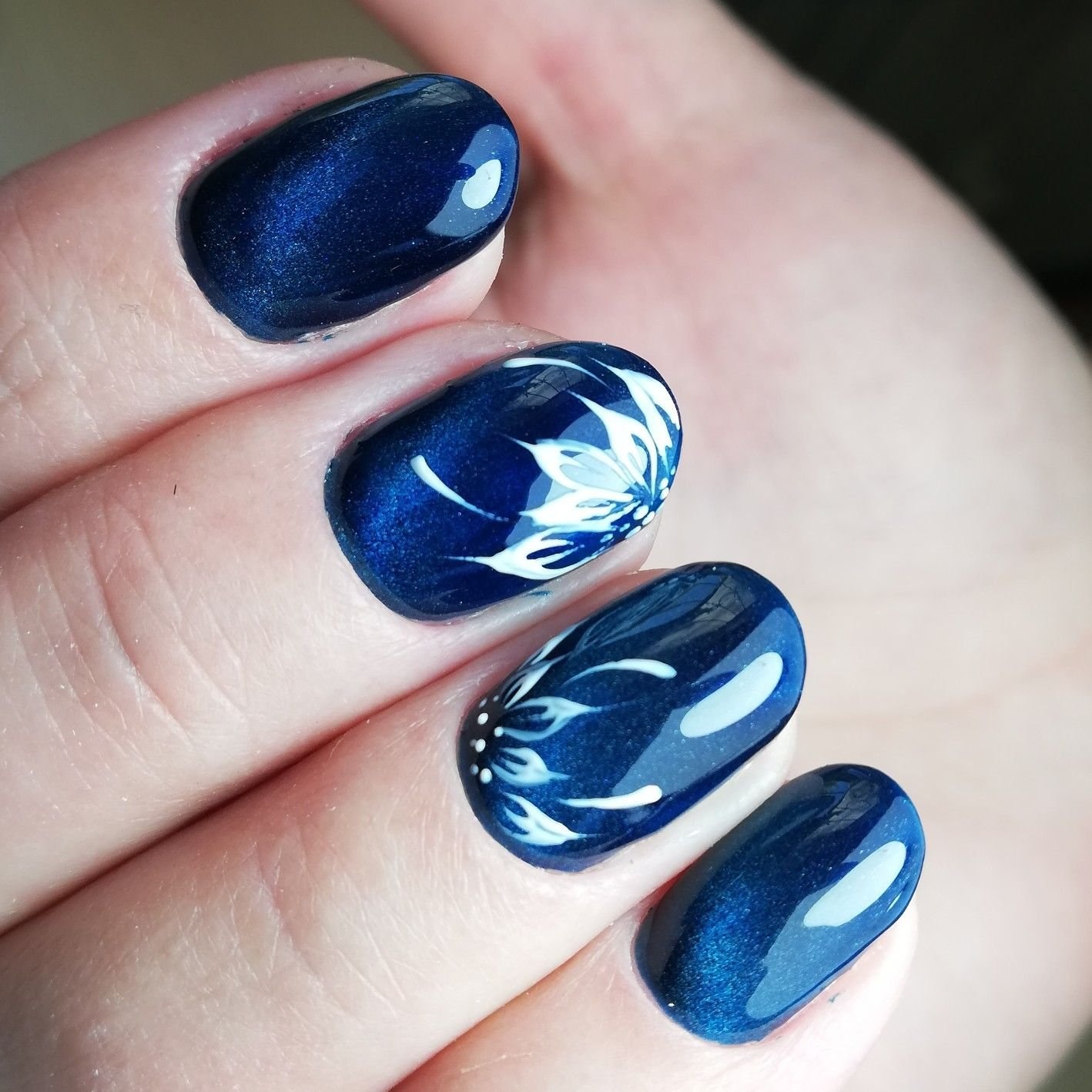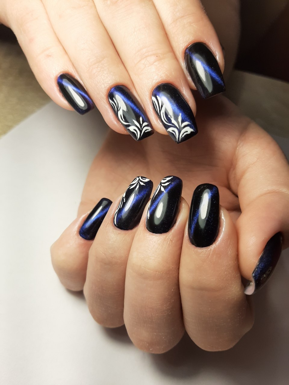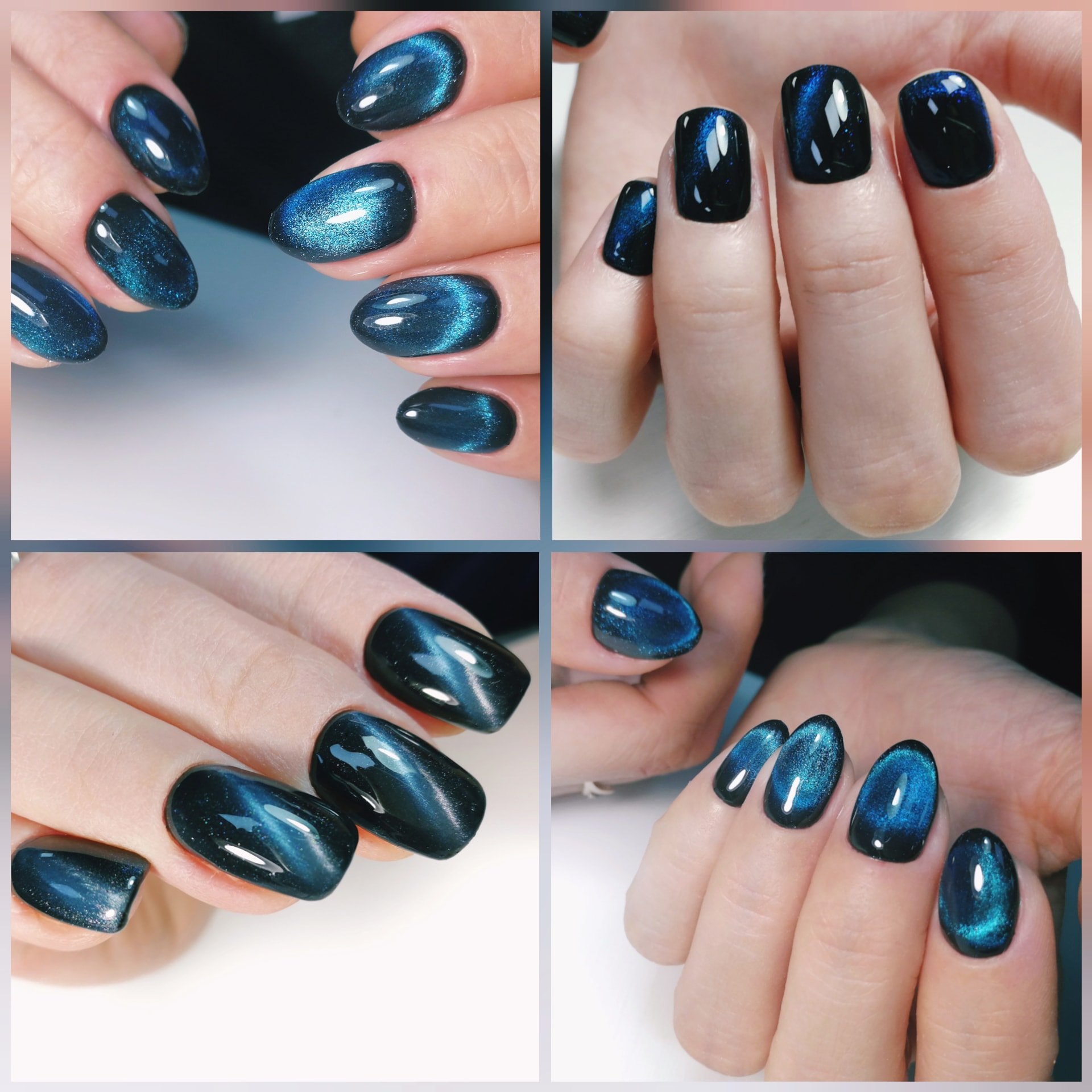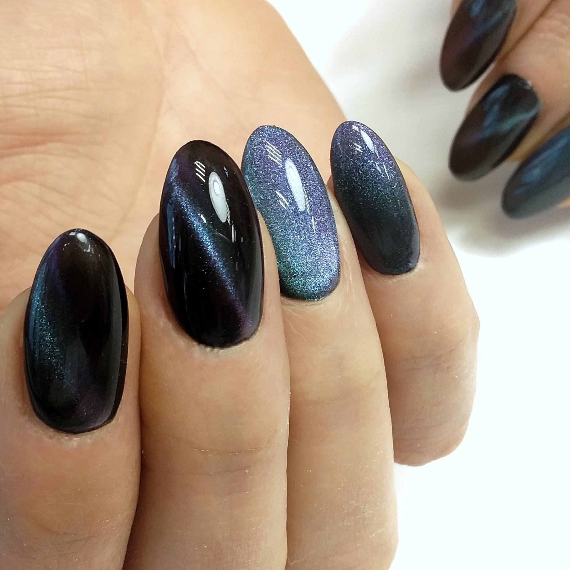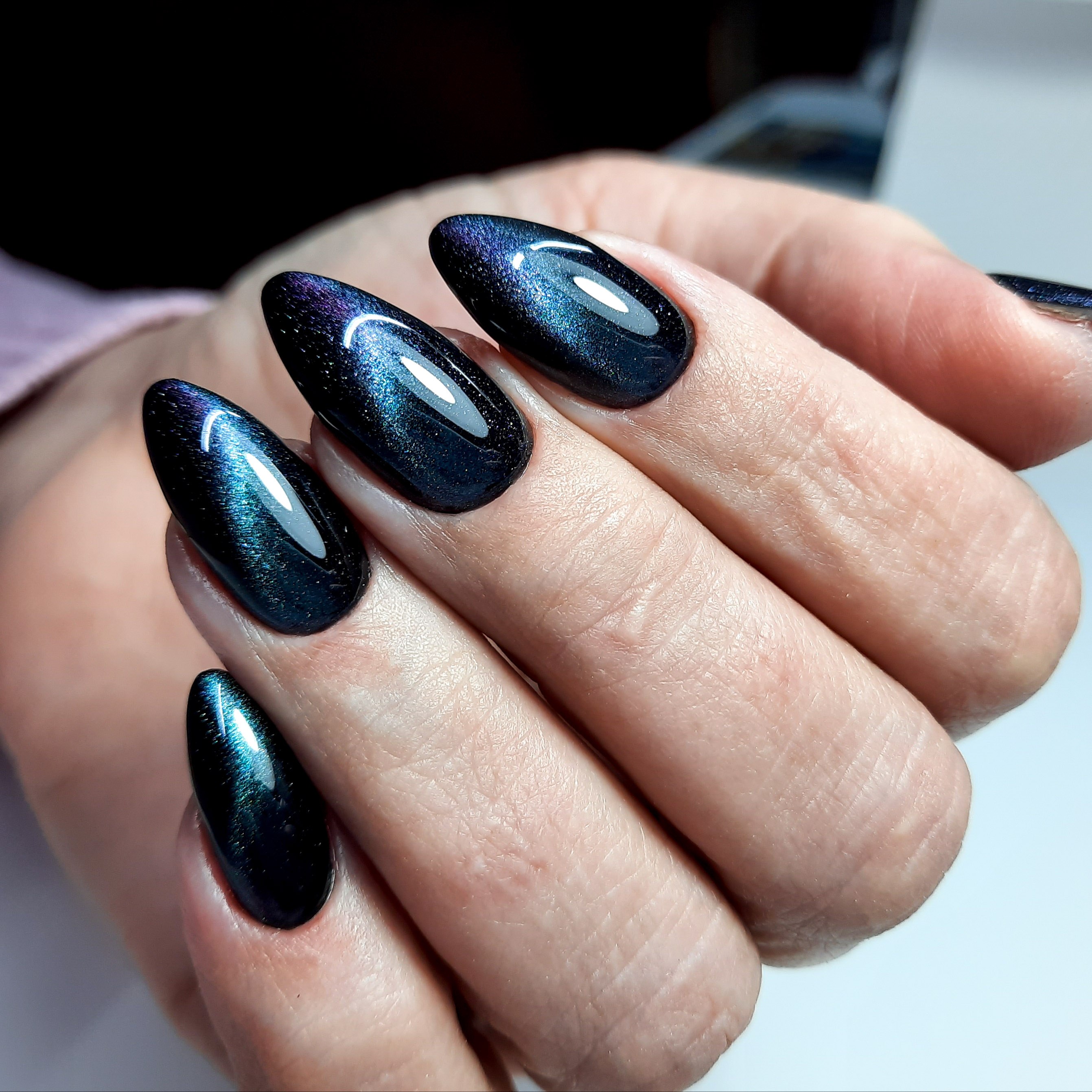 Темно-синий кошачий глаз маникюр