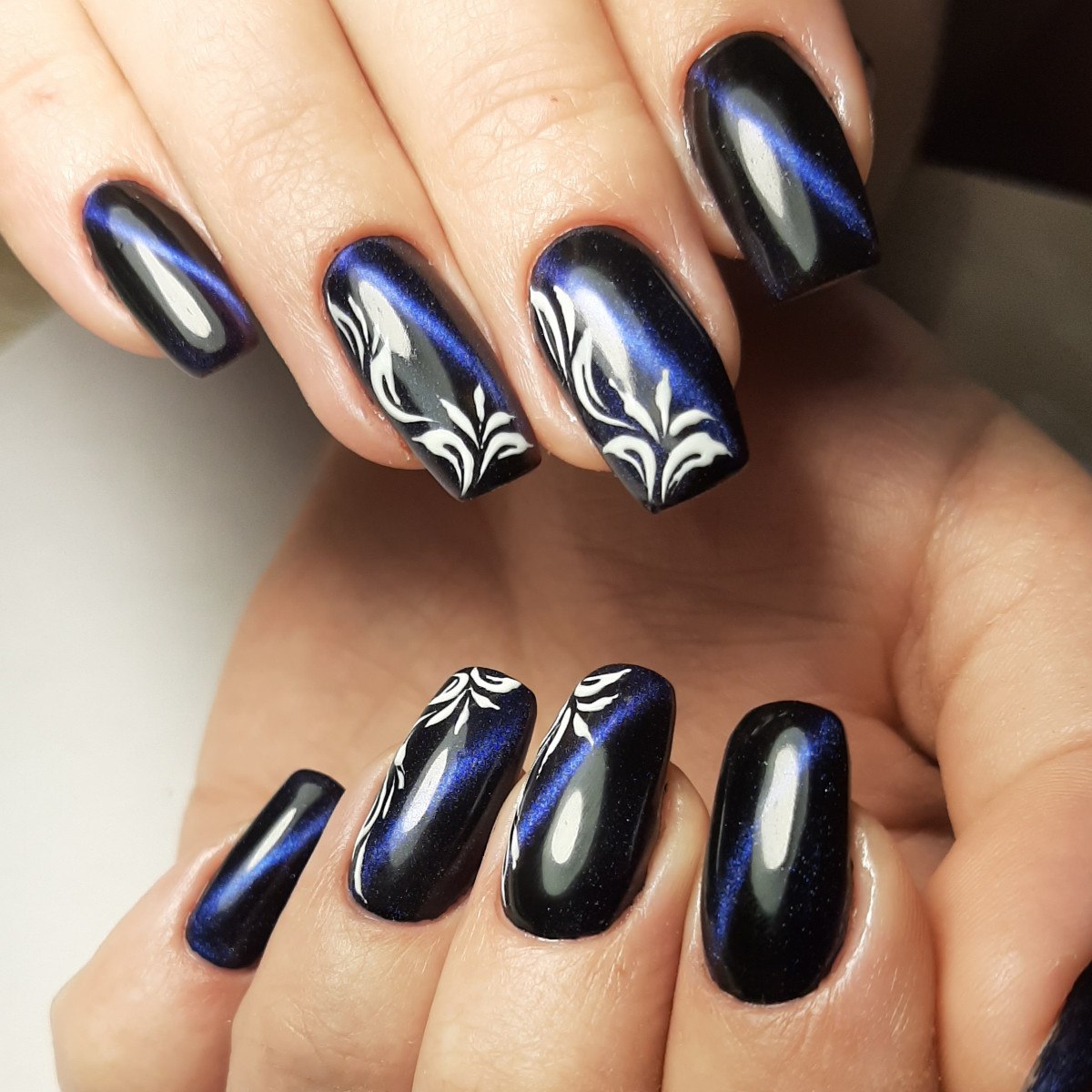 Маникюр кошачий глаз с дизайном