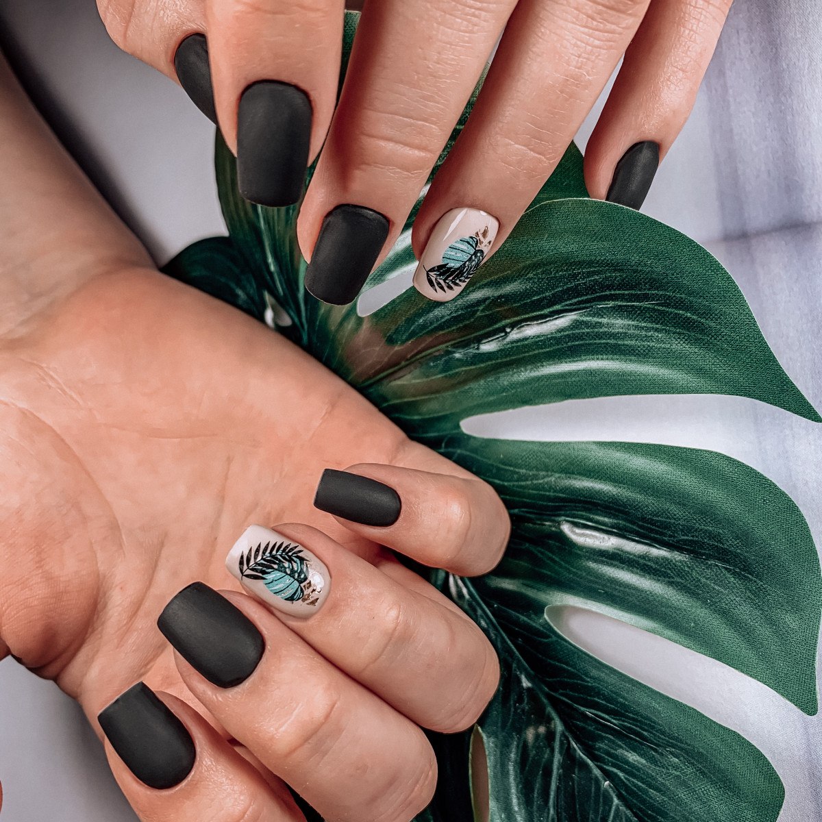 Матовый черный маникюр со слайдерами