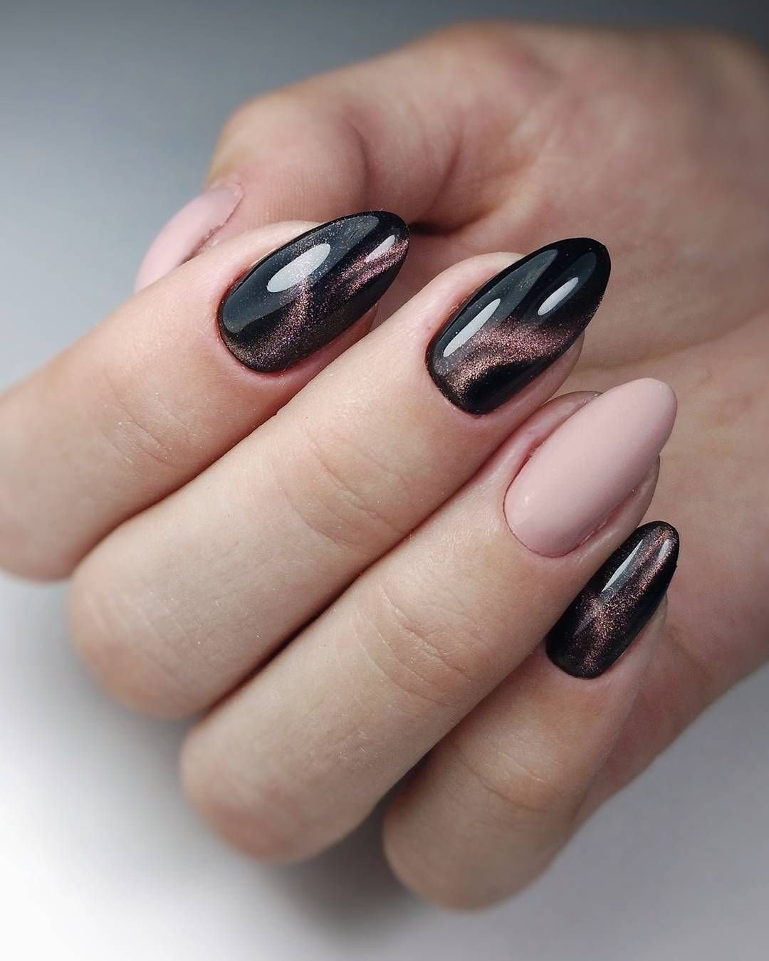 Маникюр 2021 миндаль кошачий глаз