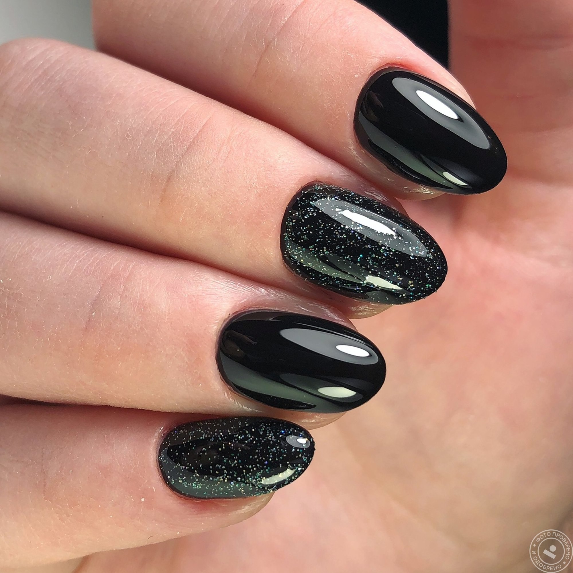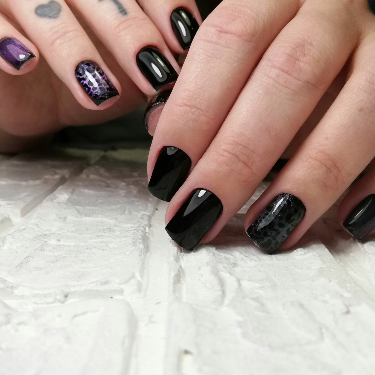 Маникюр с черным лаком комбинированный
