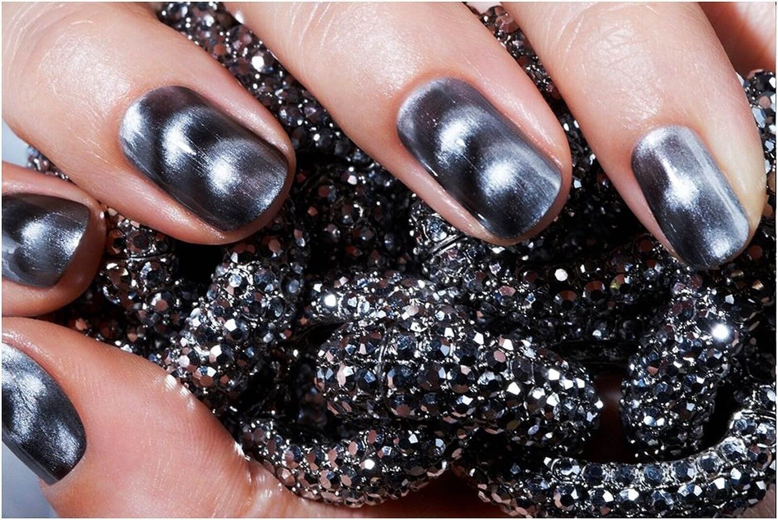 Маникюр кошачий глаз серебристый