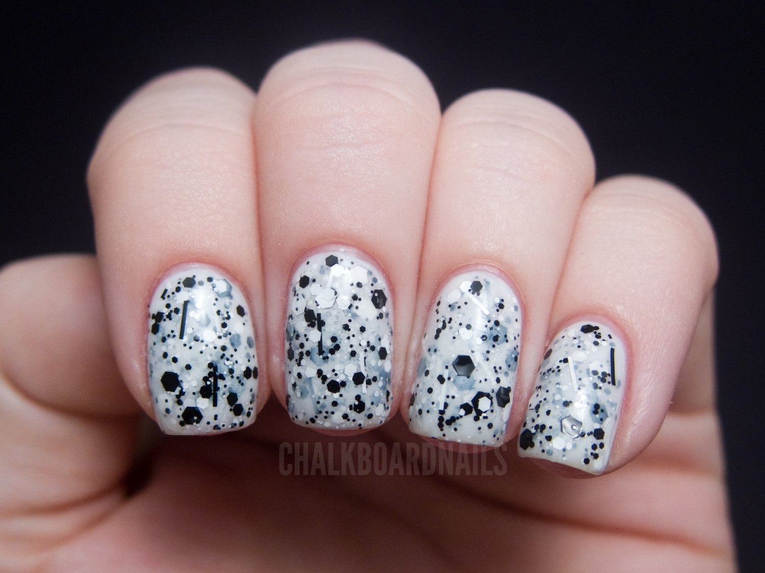 Маникюр белый с черной крошкой